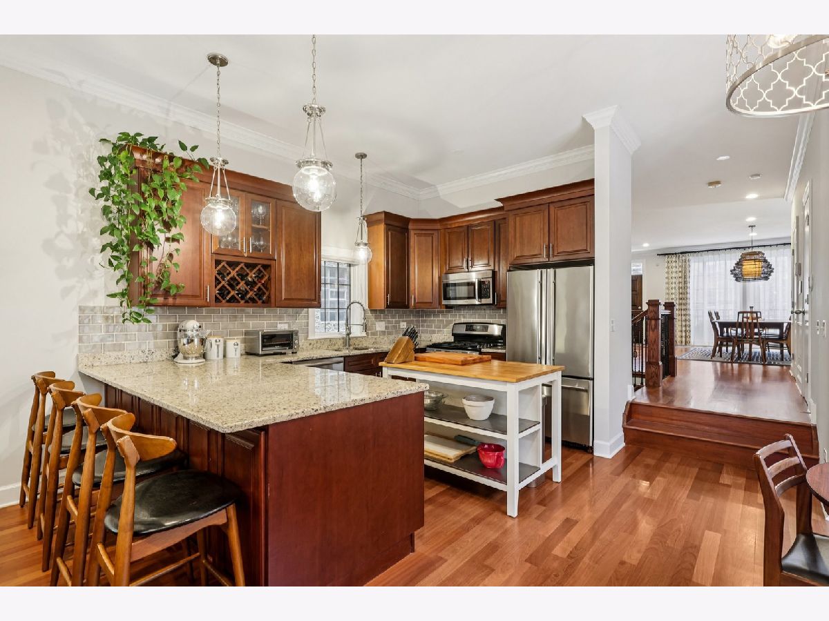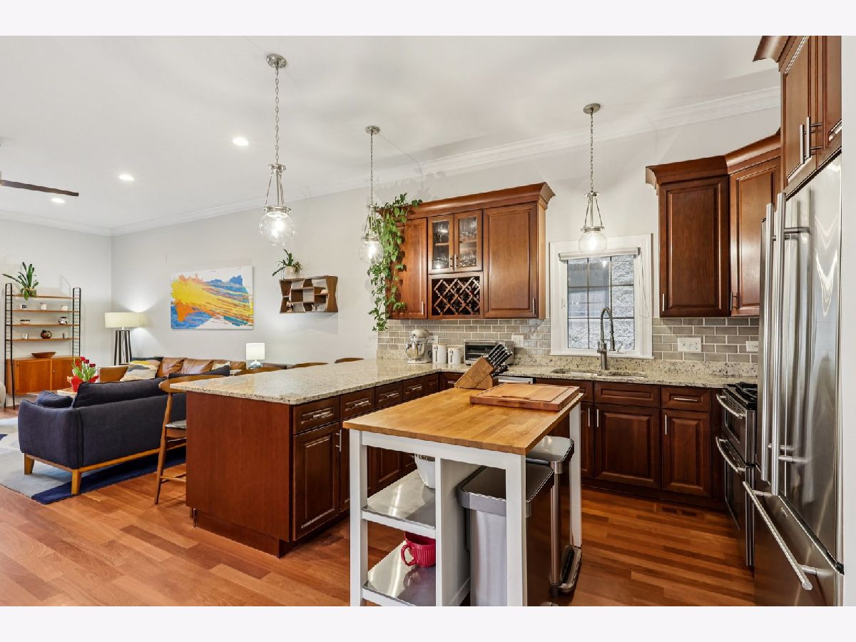 From its striking curb appeal to its impressive scale and refined craftsmanship, this exceptional residence is what today's discerning market has been waiting for. Upon entry, you are welcomed into a sophisticated, open-concept layout where gracious living and dining spaces flow into an expansive kitchen and family room-designed for both everyday comfort and entertaining. This light-filled main level extends seamlessly to a large two-level deck, creating an ideal indoor-outdoor experience for gatherings large or small. The lower level offers a secondary living space with soaring 15-foot ceilings, complete with an additional bedroom, full bathroom, utility area, and abundant storage-perfect for guests, a home office, or extended living. The second floor features three well-appointed bedrooms and two full bathrooms, highlighted by cathedral ceilings and the convenience of an upstairs laundry. Throughout the home, custom finishes and thoughtful details reflect superior workmanship and intentional design. Set in an A+ walk-able location, this home distinguishes itself with its exceptional construction quality, generous proportions, and timeless appeal. Recent updates include: tuck-pointing at the front of the property, limestone cap repair, and a newer garage deck.