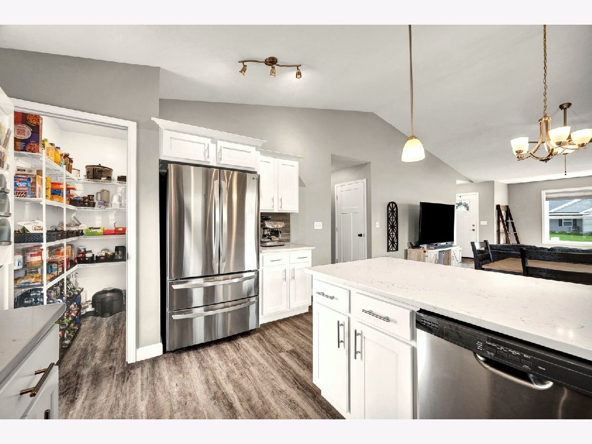 Fantastic Ranch with NO backyard neighbors! Open floor plan showcasing a spacious family room with cathedral ceilings, fresh neutral paint and bright white kitchen! Gorgeous kitchen features white cabinetry, quartz counters, tile backsplash, wood laminate flooring, stainless appliances & a giant walk-in pantry! Generously-sized bedrooms, including the primary suite with huge walk-in closet and private ensuite bath with tiled shower. Enormous backyard boasts 6 foot cedar, privacy fence with 2 gates & solar cap lighting. Expanded patio with decorative bistro pole lighting & custom sunshades that remain. Beautiful landscaping & hardscaping with shadowstone and edging allows for low maintenance living. Newer shutters and storm doors on front & back. Epoxy coating on garage floor. Full, unfinished basement is ready to be finished with a rough-in for future bath, egress window and plenty of storage space! Radon mitigated. All appliances remain, including washer & dryer. No backyard neighbors!!