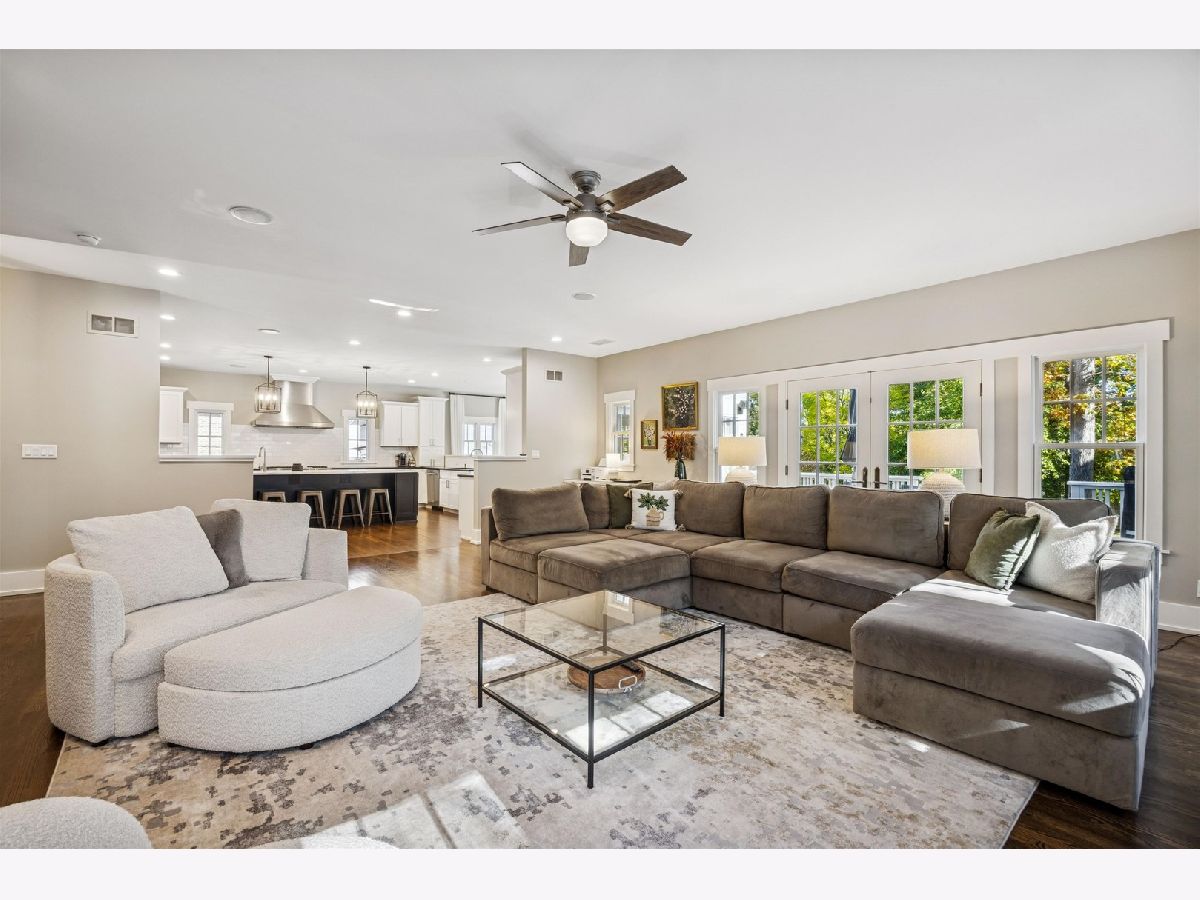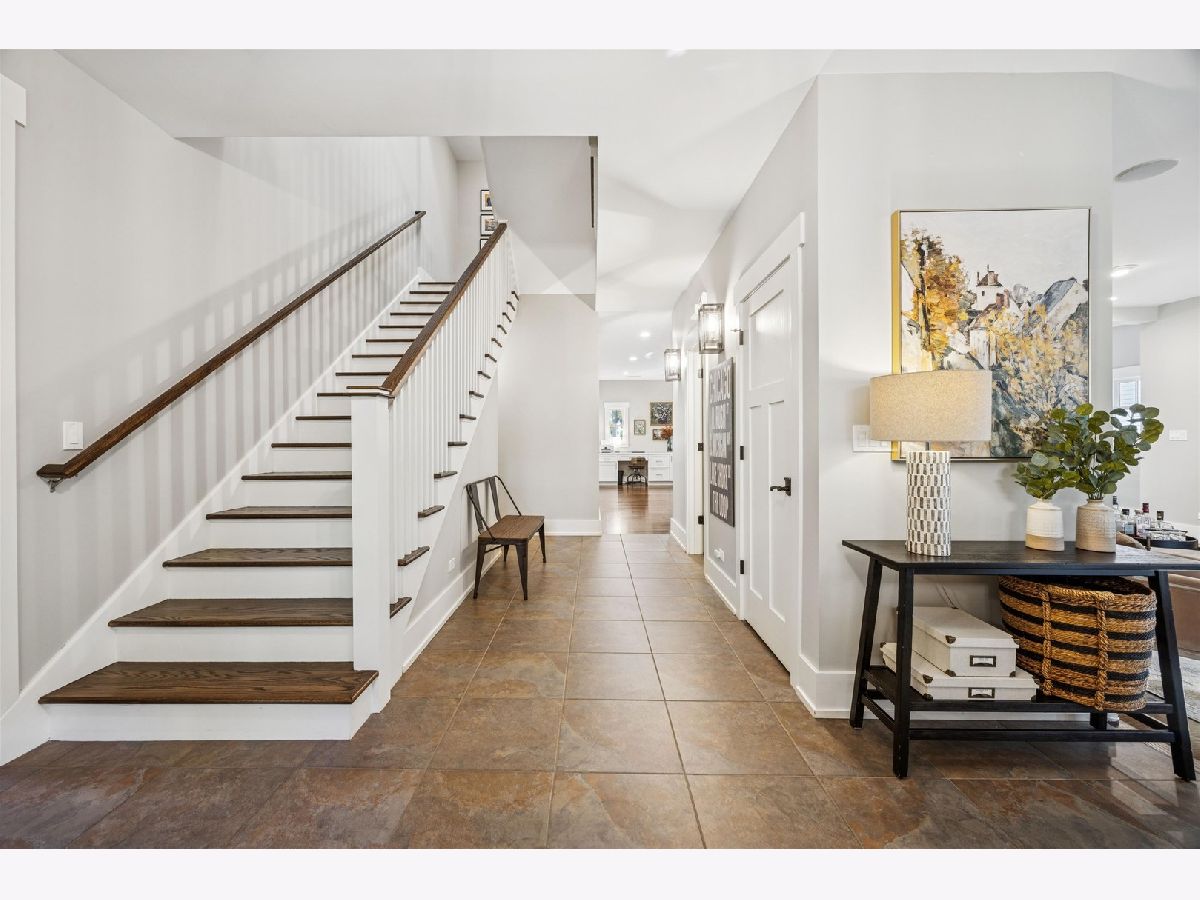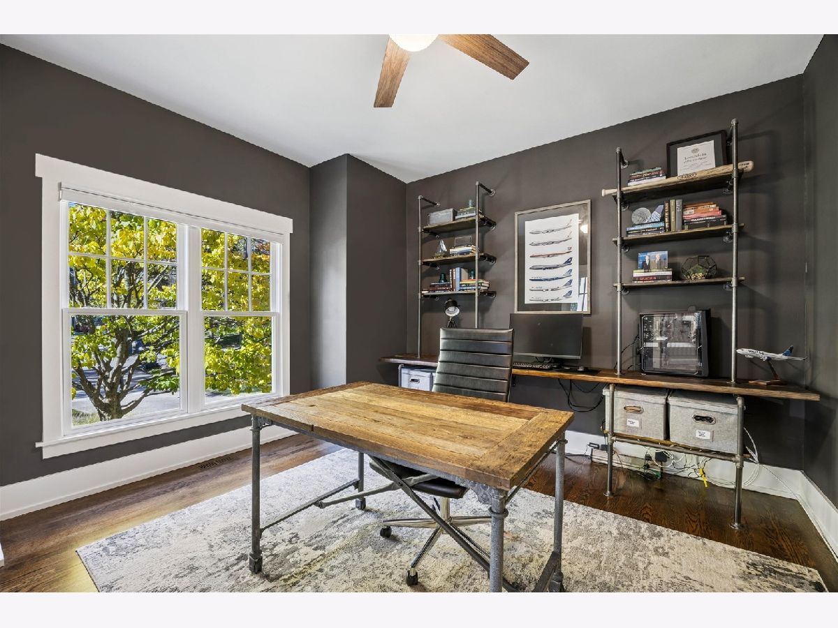 Sitting on nearly a third of an acre, this stunning Modern Craftsman home is sure to impress. The extra-wide 77-foot lot allows for multiple outdoor living spaces and expansive interiors that have been beautifully maintained and thoughtfully upgraded. A welcoming front porch leads into a bright foyer featuring gleaming hardwood floors, a refreshed designer color palette, and large architectural windows that fill the home with natural light. The front of the home includes a private office with stylish built-ins, a spacious formal living room with a double-sided fireplace, a formal dining room, and a renovated powder room. The open-concept kitchen has been fully updated with a large quartz island with seating for four, professional-grade Sub-Zero and Wolf appliances, and an inviting breakfast area with a built-in command center. The adjacent family room opens through wide French doors to a generous deck overlooking the beautifully landscaped backyard with mature trees-perfect for entertaining or quiet relaxation. Upstairs, the primary suite offers vaulted ceilings, a cozy fireplace, and a spa-like bath with split double vanities, soaking tub, separate shower, and new designer lighting. Three additional spacious bedrooms, two full baths, and a large laundry room complete the second floor. The third level is bathed in natural light from multiple skylights, offering a flexible space ideal for recreation, a second office, or a home gym, along with ample attic storage. The walkout basement provides additional living space with a recreation room, a full bath, and direct access to both the garage and backyard. A three-car attached garage with dedicated workshop area adds exceptional convenience and functionality. Walk-to-everything from this prime location: the train, town and Blue ribbon award winning The Lane Elementary School with easy access to I-294 and Ogden Avenue. Make this exceptional home your forever home!