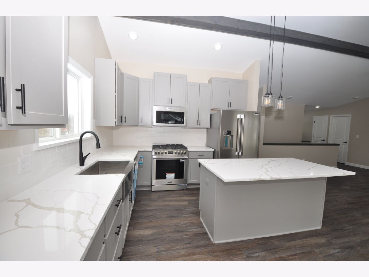 $5000 Seller's credit offered to buyer for closing costs. Custom built home ready to occupy. 3 Bedrooms, 2 full baths with open floor plan along with a walkout basement/extra bath stubbed in. Features include wide open floor plan with Stone gas log fireplace, kitchen with custom 42" shaker soft close cabinets, quartz countertops, large center island, pantry cabinet and stainless steel appliances. Sliders to 15 x 12-foot deck, easy to maintain wood planked laminate flooring throughout the first floor, master suite with full bath/double sinks, shower and walk in closet. first floor laundry room, spacious garage, asphalt driveway, walkout basement. Walking distance to downtown shops, restaurants, High school and train station.