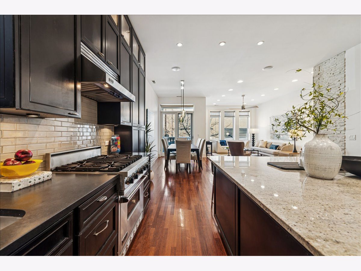Rarely available, boutique elevator building, located in the heart of East Lakeview! This spacious 1600 sq ft 3 bed, 2.5 bath home features soaring 12' ceilings, 8' doorways and an open-concept living space that is amplified for entertaining...AND it comes with 'roof rights' over the garage, allowing you to create a massive & private outdoor oasis! | The main living area flows into a generous chef's kitchen, including a HUGE island / breakfast bar, honed-granite countertops, Viking & Bosch appliances and 66" cabinets that offer a TON of storage | The home includes oak hardwood flooring, a rare wood-burning fireplace (w/ gas starter) and a balcony for grilling! | The primary suite includes a spa-like ensuite bath, with dual vanity, oversized soaking tub, and separate walk-in shower. Two additional bedrooms share a 'Jack & Jill' bath and feature custom built-in closet storage, including floor-to-ceiling systems in bedroom 2 and a Closet Works Murphy bed with additional cabinetry in bedroom 3 | The hall half bath adds convenience and privacy for your guests and additional features includes a newer HVAC A/C systems, in-unit laundry, a dedicated storage closet (1st floor), high-speed fiber internet (50 month) AND attached/included GARAGE parking | This pet-friendly building recently installed a new intercom & security system and is conveniently located just blocks from the sought-after Nettelhorst Elementary, is a 3-minute walk to the Belmont Red/Brown/Purple Line stop and is steps to all that Broadway and East Lakeview has to offer!