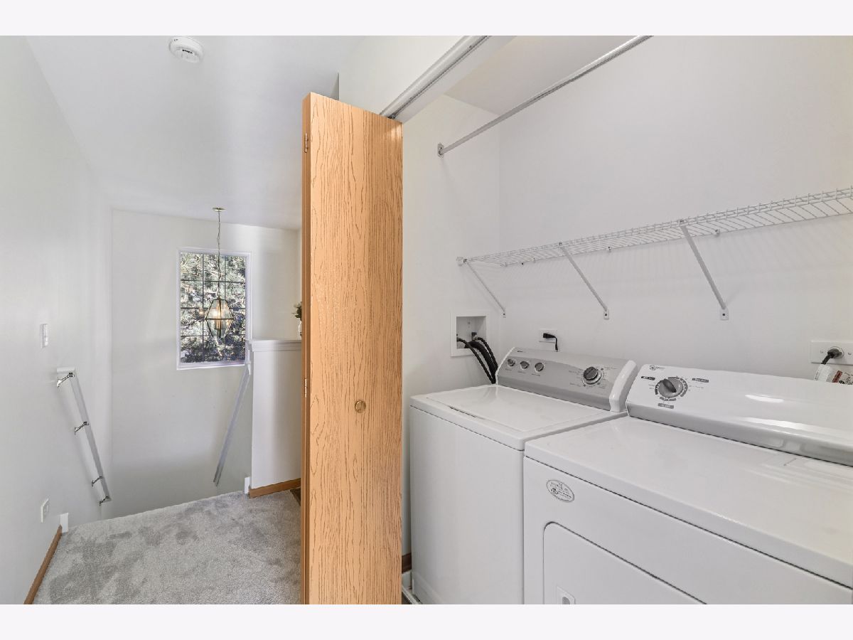 Located in the Pines of Lakemoor, this private-entry townhome offers a desirable setting with walking trails, ponds, and peaceful green spaces just steps away, plus the added convenience of Starbucks, grocery stores, and everyday shopping close by. An attached 2-car garage with bonus storage and direct interior access adds everyday comfort-especially during inclement weather. Inside, the sun-filled living room flows seamlessly into the kitchen featuring generous counter space and room for a future island, open to the dining area with sliding doors leading to a private balcony. A well-placed powder room completes the main level. Upstairs, two bedrooms each enjoy direct access to a full bath, including a spacious primary bedroom with a large walk-in closet. A convenient second-floor laundry is centrally located between the bedrooms. Major mechanical updates provide valuable peace of mind, with the furnace, air conditioning, and hot water heater all replaced in 2018. FHA approved and truly move-in ready with all appliances included-ideal for a quick close and easy living.