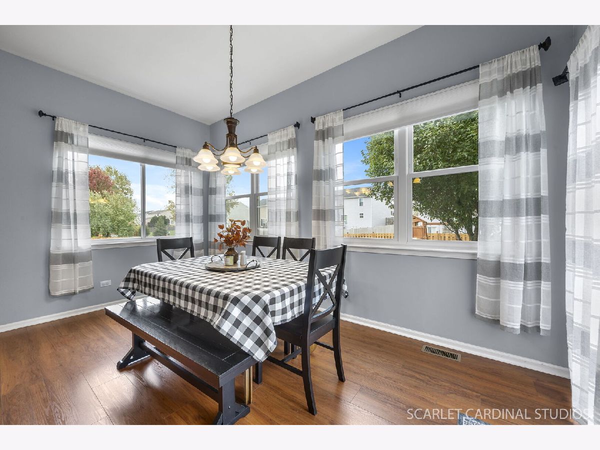 Beautifully maintained home set on a large, fenced-in lot. Enter through the covered front porch into a welcoming foyer with high ceilings and cherry hardwood laminate flooring that flows through to the kitchen. The formal living and dining rooms are perfect for relaxing or entertaining, featuring elegant wainscoting, curved entryways, and large windows that flood the space with natural light. The kitchen boasts brand-new appliances, a center island with seating, a pantry closet, and abundant cabinet and counter space for all your culinary needs. The adjacent breakfast room includes windows all around and sliding glass doors that open to the back patio, making indoor-outdoor activities a breeze. A spacious family room with a cozy fireplace, a powder room, and the laundry room complete the main level. Upstairs, the primary suite features vaulted ceilings, a walk-in closet, an attached sitting room, and an en suite bath. Two additional spacious bedrooms, a full bath, and a versatile loft complete the second floor. The basement features a private office perfect for remote work. The large backyard, complete with a charming gazebo, offers the perfect spot for relaxing or gatherings. Recent updates include new interior and exterior paint (2018), new carpeting (2022), a new roof (2023), new HVAC system and an irrigation system (2025). Located in Yorkville School District #115, this home attends Bristol Bay Elementary, Yorkville Middle School, and Yorkville High School. Conveniently tucked away, yet just minutes from Sugar Grove, Bristol, and Route 47, this home offers the perfect blend of comfort and convenience. This one won't last long!