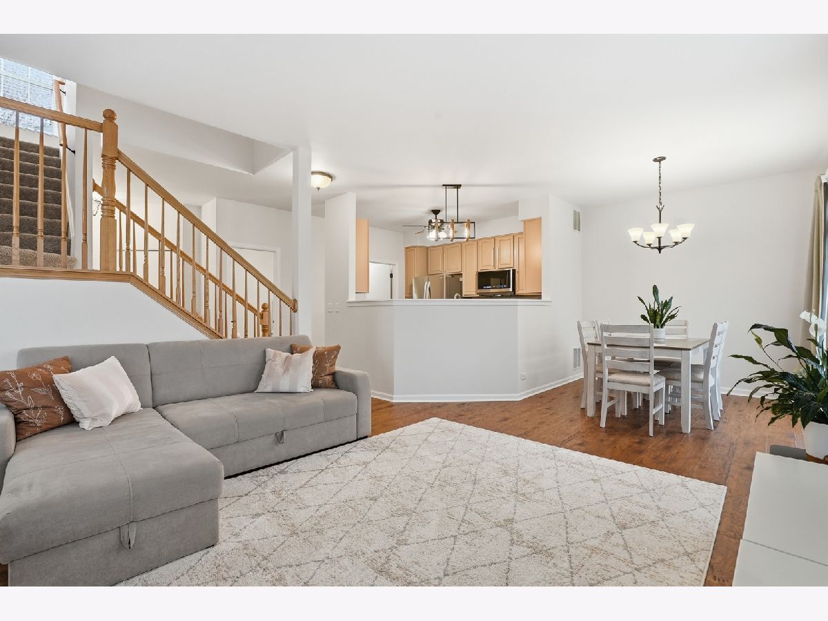 Step into this beautifully maintained, sun-filled 3-bedroom, 2.5-bath end-unit townhome offering two spacious levels of comfortable living. The bright, open-concept main floor seamlessly connects the living room, dining area, and kitchen, featuring durable LVT flooring throughout. The kitchen has been updated with a new quartz countertop and brand-new appliances, while the home also includes fresh paint and a new washer and dryer for added convenience. Upstairs a versatile loft space perfect for a home office, playroom, or additional living area. The spacious primary suite includes a private bath with dual vanities, a soaking tub, and a separate shower. The finished basement includes a dedicated gym area and provides additional space for recreation, storage, or flexible use. Move-in ready and thoughtfully updated, this welcoming home offers comfort, space, and functionality. Schedule your private showing today