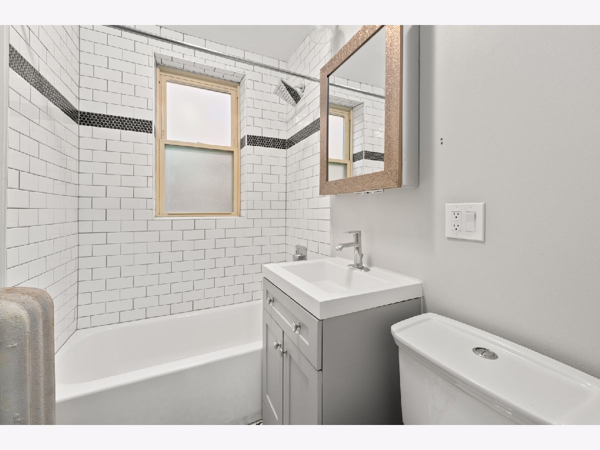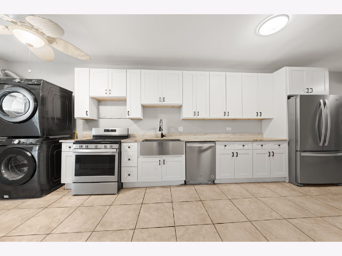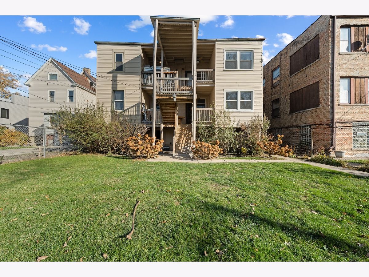 This well-maintained vintage 4-flat (6 full units, 2 non-conforming), built in 1918, has been fully renovated throughout all four units while preserving its classic character. Each apartment has newly refinished dark hardwood floors, updated white woodwork, fresh paint, and new lighting. The kitchens feature new cabinetry, granite countertops, a large farmhouse-style sink, and brand-new stainless steel appliances. Bathrooms have been completely renewed with updated flooring, tile surround, toilets, sinks, and faucets. Every unit includes tamper-resistant electrical updates, radiant heated floors in the primary bathroom, and a high-end front-loading stackable washer and dryer. Additional features include 8x8 storage spaces and an outdoor area suitable for grilling. The building's layout includes two units with 4 bedrooms and 1.5 baths, two units with 5 bedrooms and 2 baths, 1 unit with 1 bedroom and 1 bath, and 1 unit with 2 bedrooms and 1 bath. Rear porches overlook the landscaped yard, and a 4-car brick garage adds valuable utility. Building brings in over $160k/yr in rent and is a current 14 cap. Situated on an approximately 50' x 175' lot just north of Columbus Park, the property offers convenient access to I-290, the Blue Line, and the Austin bus connection to the Green Line. Schedule a showing to experience this property!