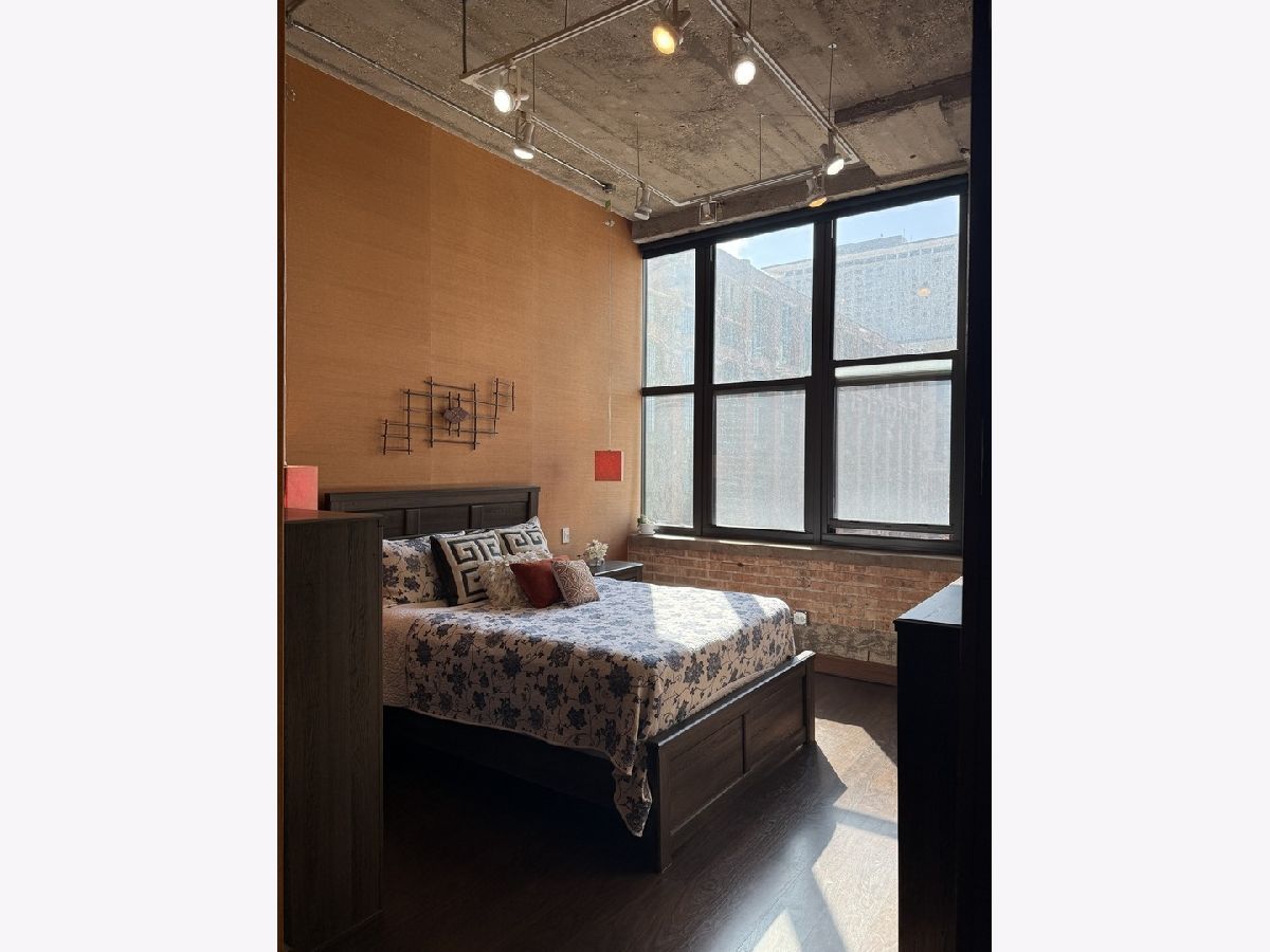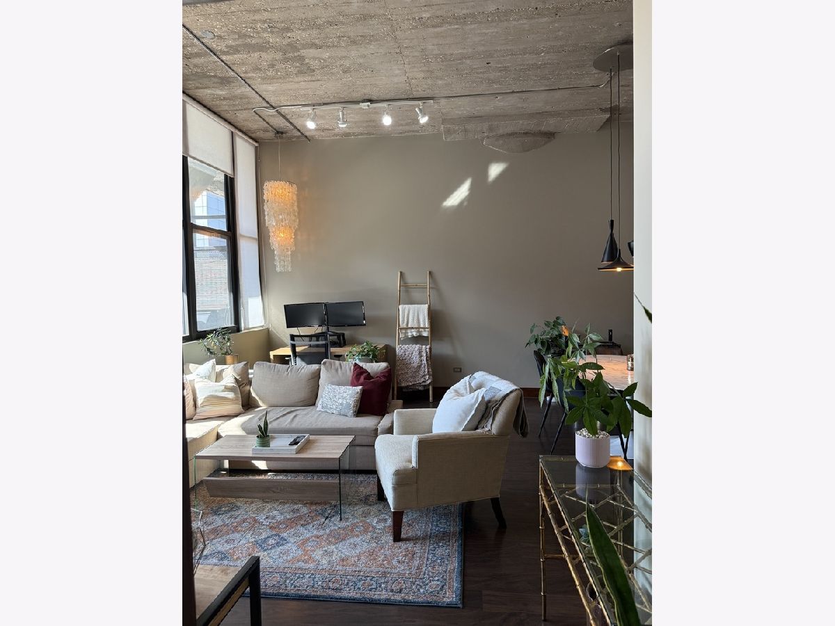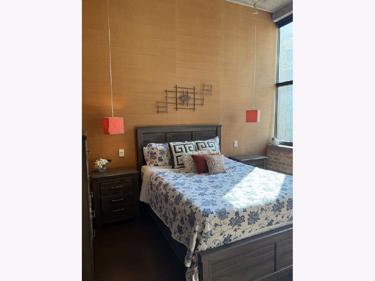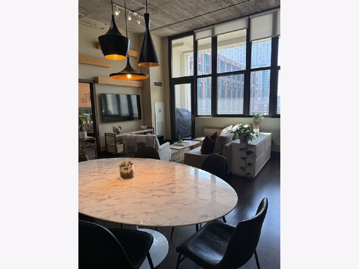 Step into this stunning light-filled 1-bedroom unit at Chess Lofts! South-facing with soaring 12-ft concrete ceilings, exposed brick, huge windows, and dark wide plank floors - this one is not to be missed. Once a 2-bedroom/2-bath, now converted to a 1100 square foot 1-bedroom/2-bath, you will be amazed by how expansive the hosting space is with ample storage throughout- no detail was missed when renovating this unit! Kitchen features custom cabinetry, pull out cabinet drawers, stainless steel appliances (Dishwasher and Microwave updated in 2025), and granite countertops. Entryway includes a completely enclosed custom closet with in-unit W/D. Large dining space with chandeliers throughout. Living space was previously split to include an office. Unique pull-out projector screen from one of the shelves in the living space. Fully-enclosed primary bedroom has blackout shades, beautiful hanging light fixtures, and an ample walk-in closet. Two large full bathrooms with storage. This home is perfect for entertaining with a 100sqft private terrace! The building offers a rooftop deck with incredible city and lake views, a gym, bike storage, package room, and onsite engineer. Parking space additional $30k and includes space for storage bins. HOA assessments include heat, air, cooking gas, water, common area maintenance, scavenger, common area gym, rooftop and package room. Building is PET FRIENDLY and is located next to a dog park, playground, lakefront path, museums, boat harbor, Grant Park, Solider Field, Wintrust Arena and McCormick Place! Ample street parking available, minutes to public transit and dining/entertainment. Investor friendly - no rental cap! Mint condition!