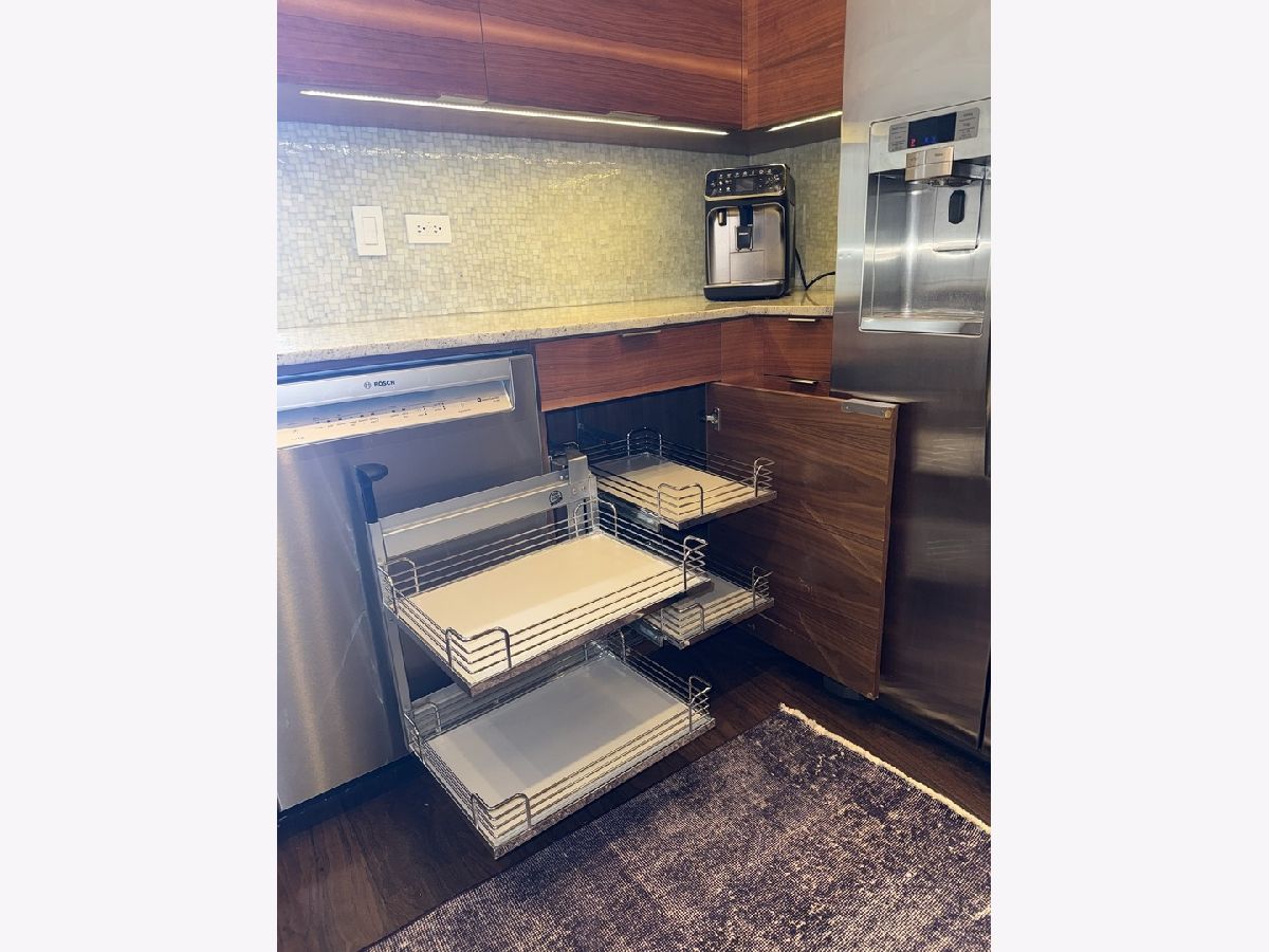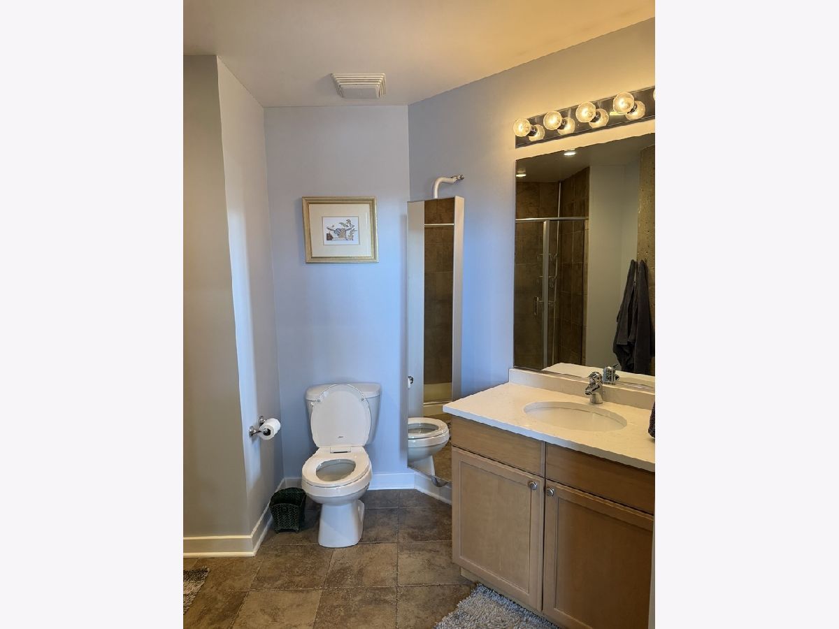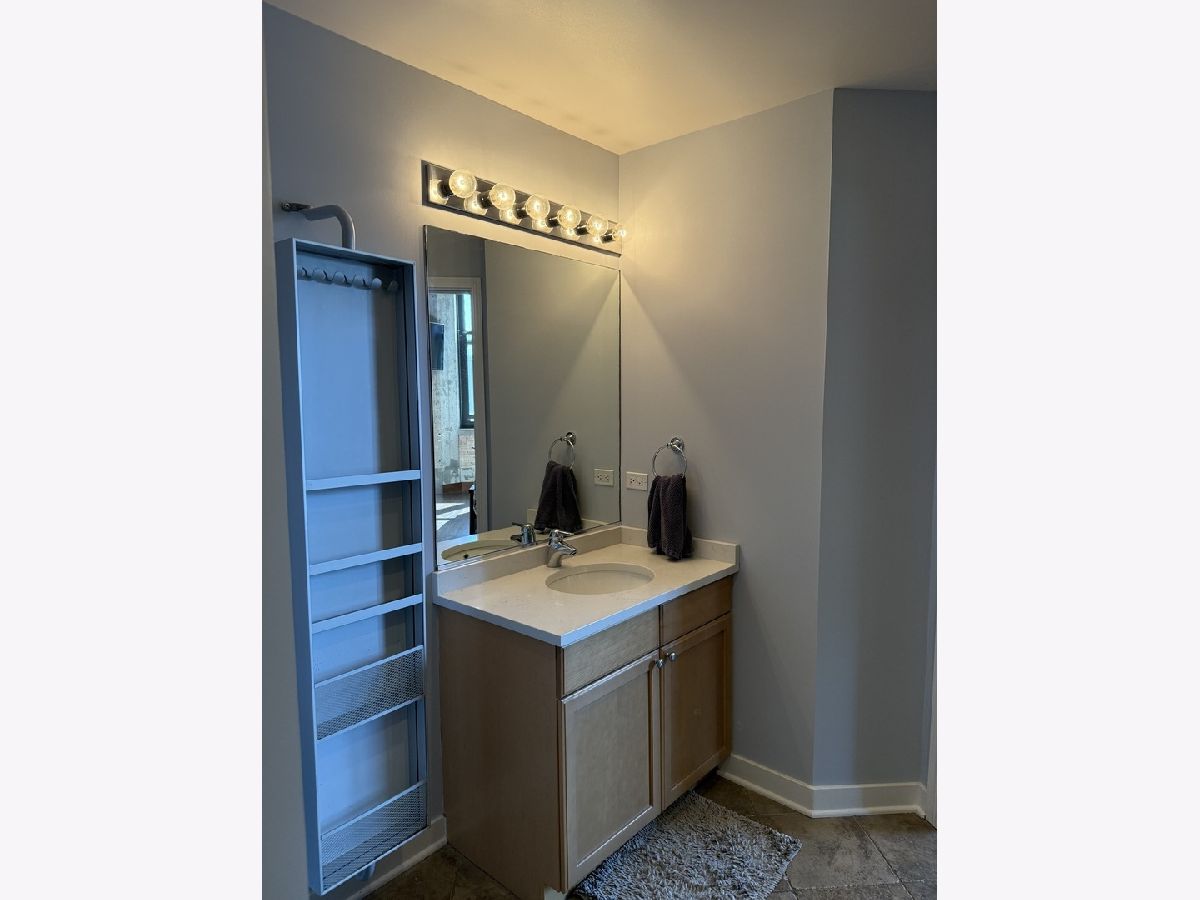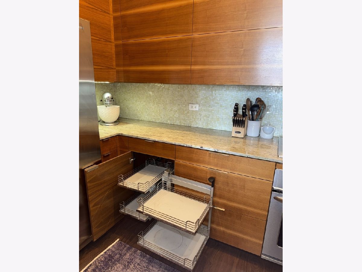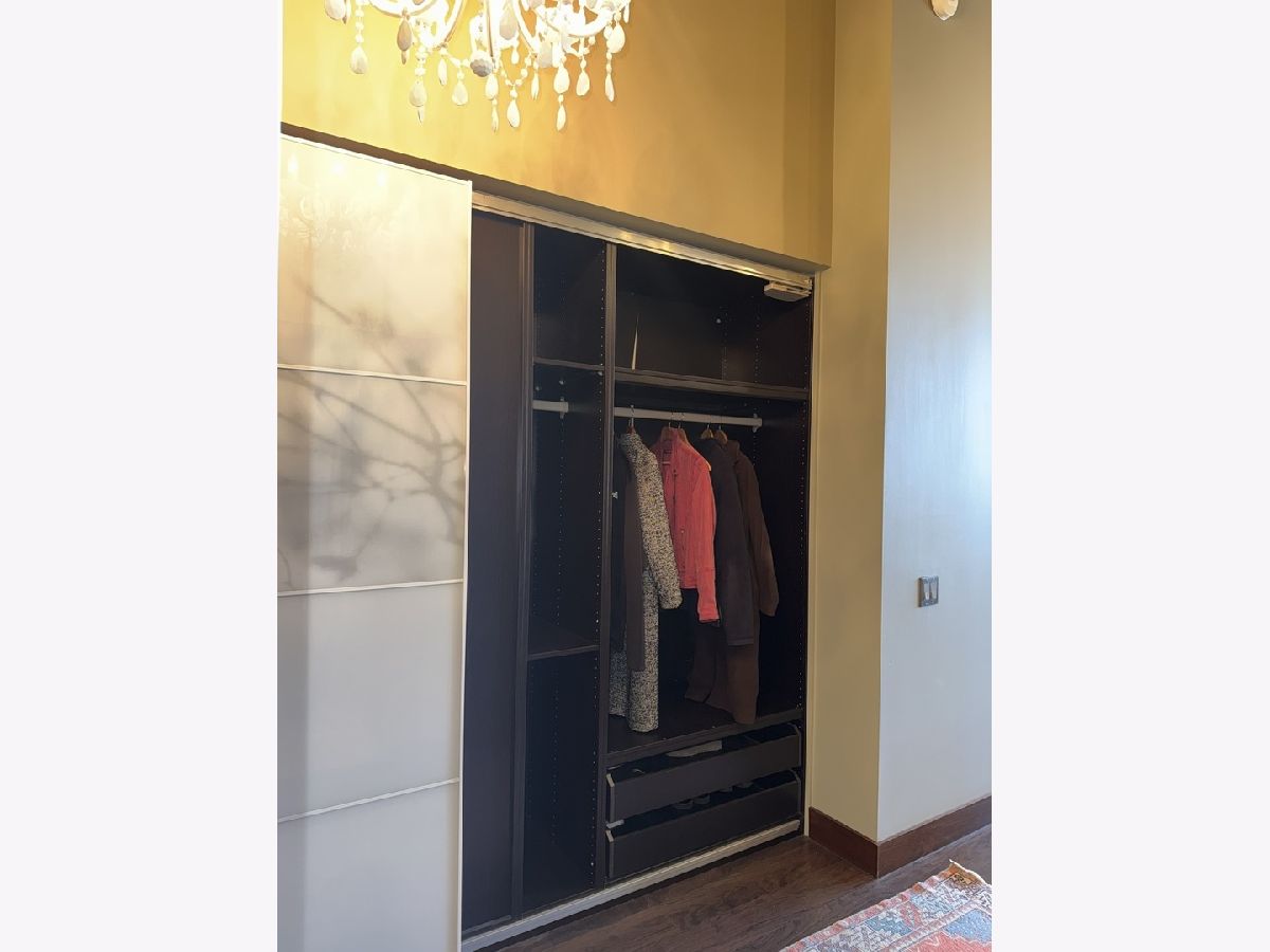 Step into this stunning light-filled 1-bedroom unit at Chess Lofts! South-facing with soaring 12-ft concrete ceilings, exposed brick, huge windows, and dark wide plank floors - this one is not to be missed. Once a 2-bedroom/2-bath, now converted to a 1100 square foot 1-bedroom/2-bath, you will be amazed by how expansive the hosting space is with ample storage throughout- no detail was missed when renovating this unit! Kitchen features custom cabinetry, pull out cabinet drawers, stainless steel appliances (Dishwasher and Microwave updated in 2025), and granite countertops. Entryway includes a completely enclosed custom closet with in-unit W/D. Large dining space with chandeliers throughout. Living space was previously split to include an office. Unique pull-out projector screen from one of the shelves in the living space. Fully-enclosed primary bedroom has blackout shades, beautiful hanging light fixtures, and an ample walk-in closet. Two large full bathrooms with storage. This home is perfect for entertaining with a 100sqft private terrace! The building offers a rooftop deck with incredible city and lake views, a gym, bike storage, package room, and onsite engineer. Parking space additional $30k and includes space for storage bins. HOA assessments include heat, air, cooking gas, water, common area maintenance, scavenger, common area gym, rooftop and package room. Building is PET FRIENDLY and is located next to a dog park, playground, lakefront path, museums, boat harbor, Grant Park, Solider Field, Wintrust Arena and McCormick Place! Ample street parking available, minutes to public transit and dining/entertainment. Investor friendly - no rental cap! Mint condition!