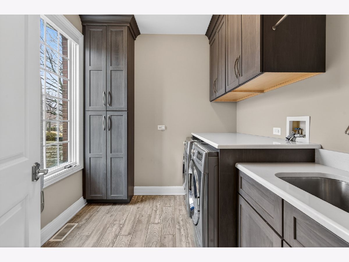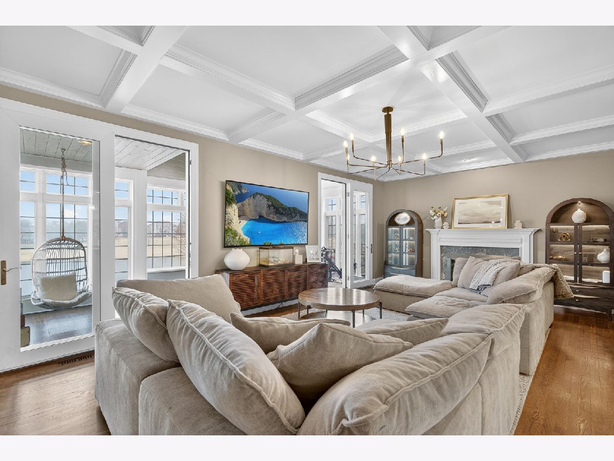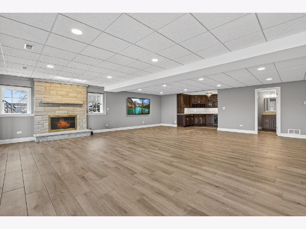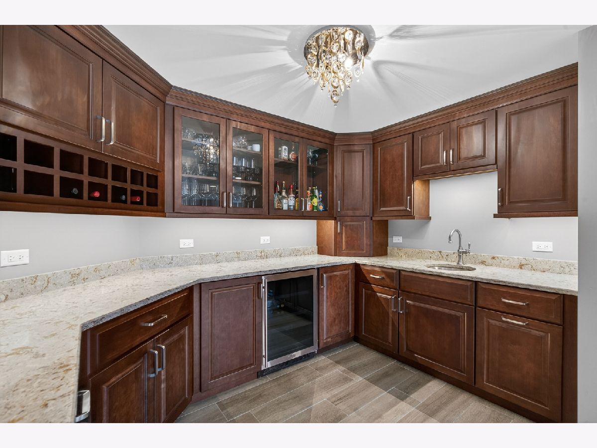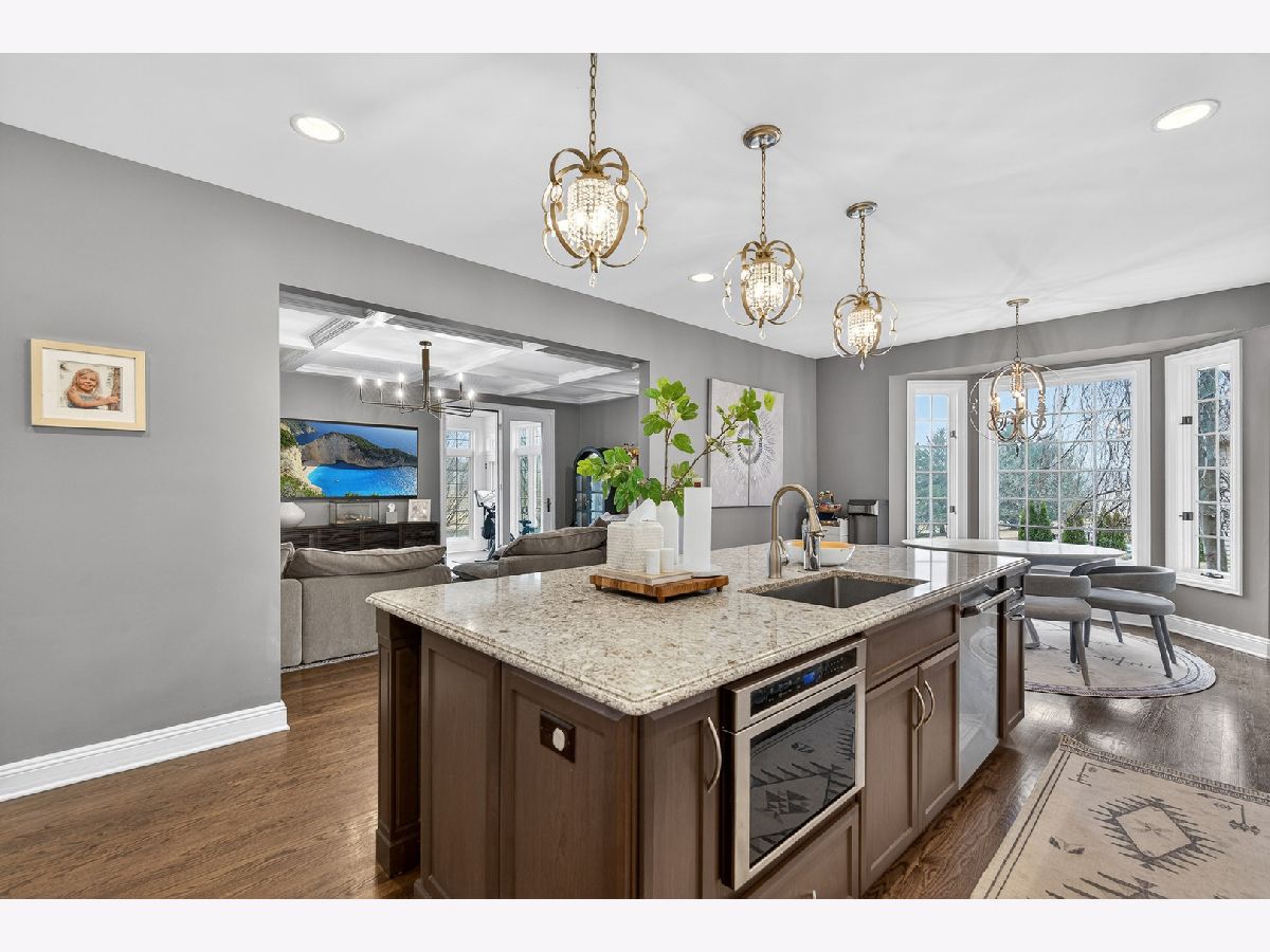 Welcome home to this beautiful estate in Boulder Ridge Country Club, perfectly set along the peaceful lake bordering the 17th and 18th holes and near the clubhouse. A grand foyer with a curved staircase welcomes you inside; hardwood floors and stunning light fixtures set the tone. The remodeled kitchen features custom cabinetry, quartz countertops, and premium Thermador appliances, opening to a warm and inviting family room with a coffered ceiling and beautiful fireplace. A sunroom wrapped in windows showcases breathtaking golf course and water views, creating the perfect spot to unwind. Upstairs, the spacious primary suite offers a private balcony and a spa-like bath with a stand-alone Kohler tub and custom shower. Additional bedrooms are beautifully updated and filled with natural light. The walkout basement is ideal for entertaining or relaxing, featuring a cozy fireplace, custom bar, guest suite, and access to the patio and pool. Outside, your own backyard retreat awaits - complete with a stunning 40x16 fiberglass pool overlooking the lake and golf course. It's the perfect setting for summer gatherings or peaceful evenings at home.