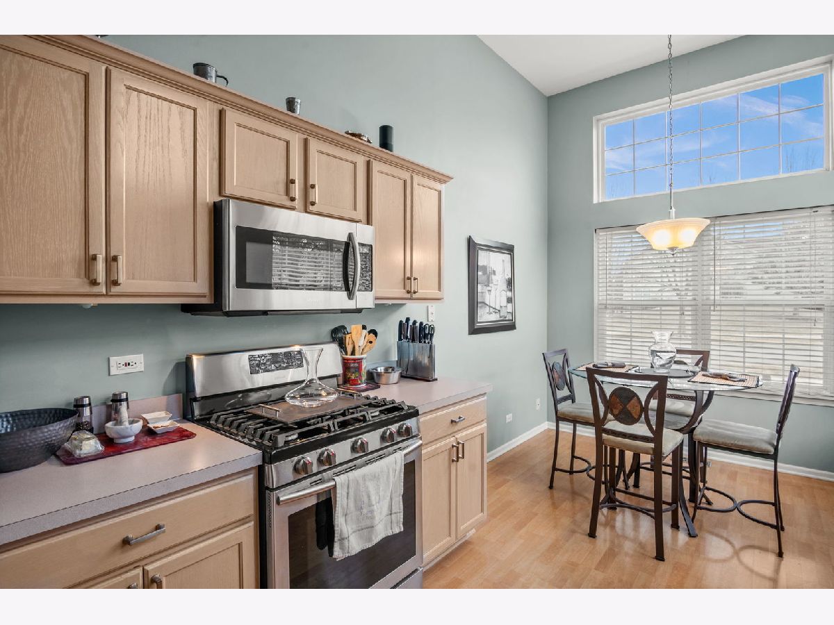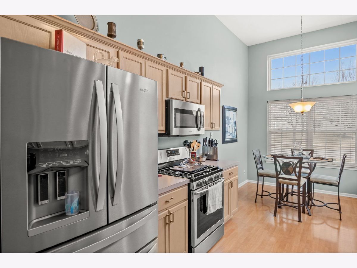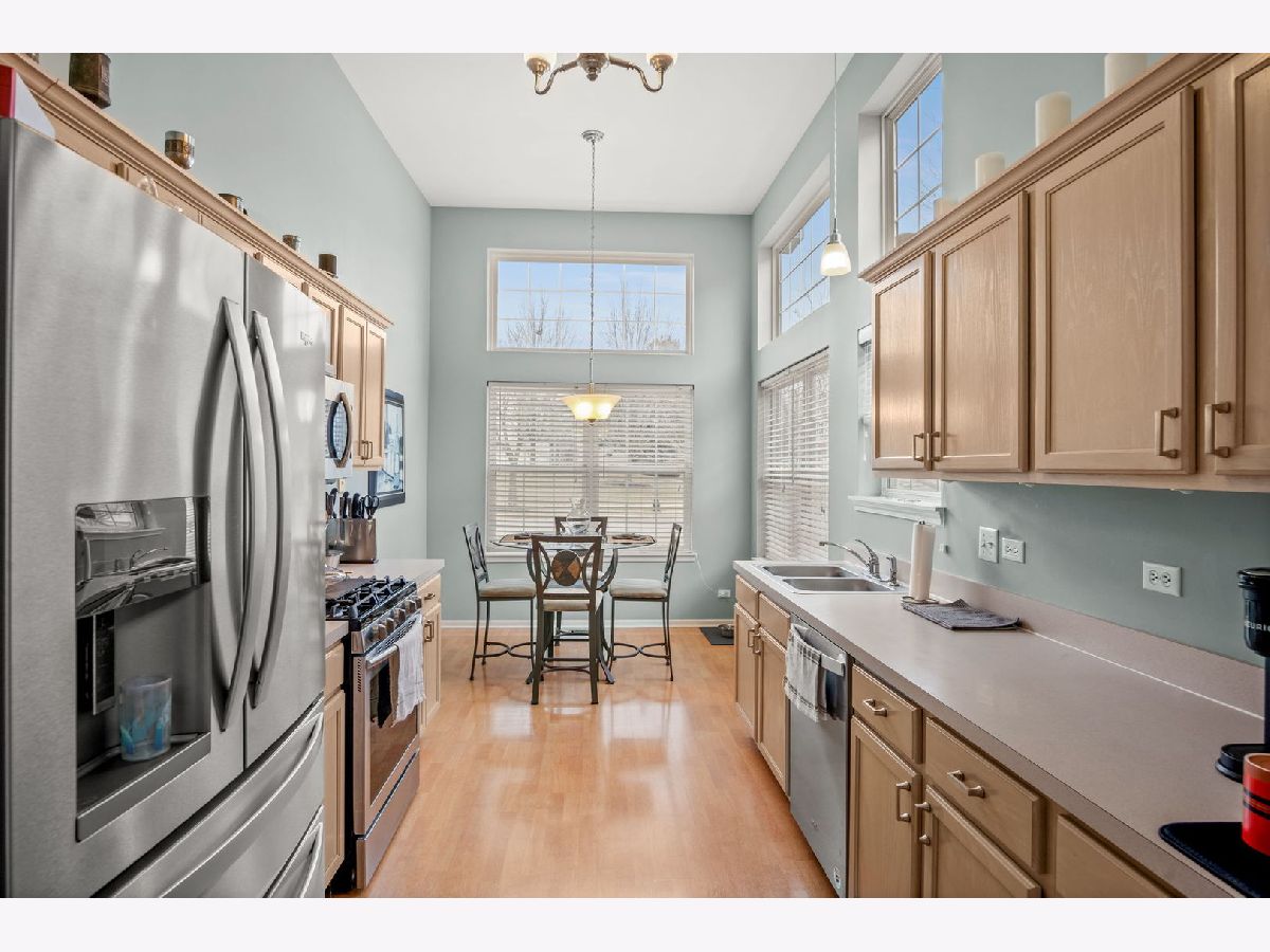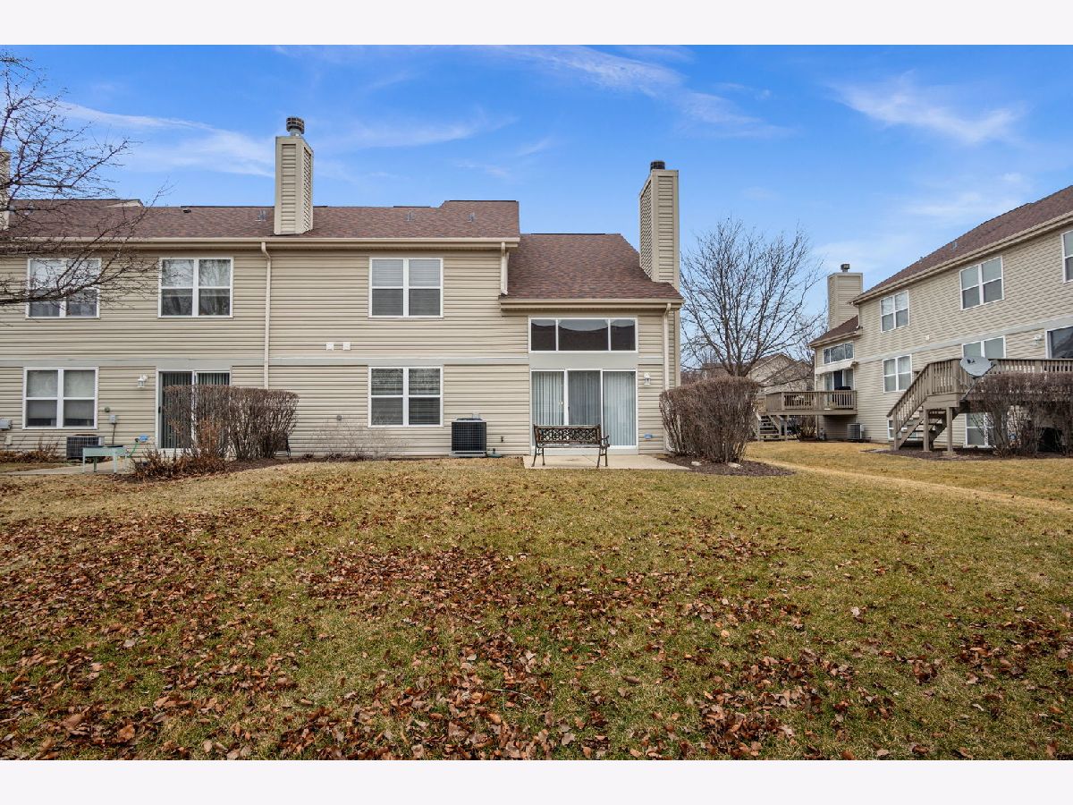 This beautifully maintained 2 bedroom, 2.5 bath vinyl and brick end unit townhome in Renaux Manor offers comfort, style, and an unbeatable St. Charles location. The home features a welcoming front porch, private backyard patio, and a 2 car attached garage. Inside, vaulted and volume ceilings, wood laminate flooring, and neutral decor create a bright, open feel throughout. The spacious living room is perfect for relaxing or entertaining with a cozy gas log fireplace and sliding door leading to the patio. The eat in kitchen features a volume ceiling, stainless steel appliances, closet pantry, and abundant cabinetry with crown molding. The first floor primary suite provides convenient main level living with a private bath complete with double bowl vanity, soaking tub, and separate shower, along with a first floor laundry room. A dramatic two story foyer leads upstairs to a versatile loft space, second bedroom, and full hall bath. Located just minutes from parks, shopping, dining, and vibrant downtown St. Charles, this low maintenance home is made even easier with an HOA that covers exterior maintenance, lawn care, and snow removal.