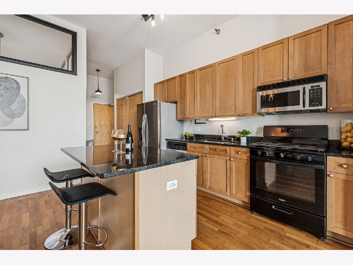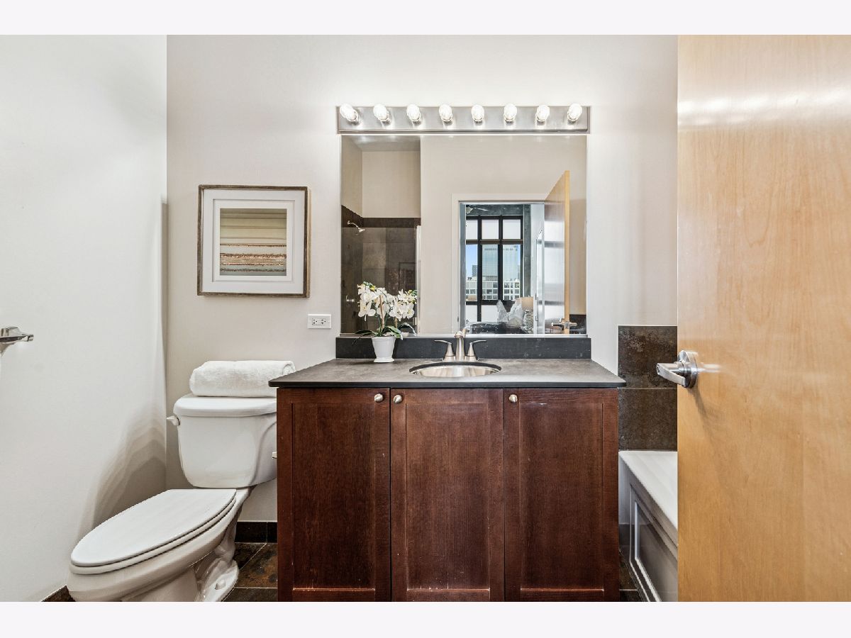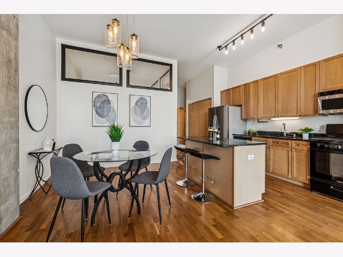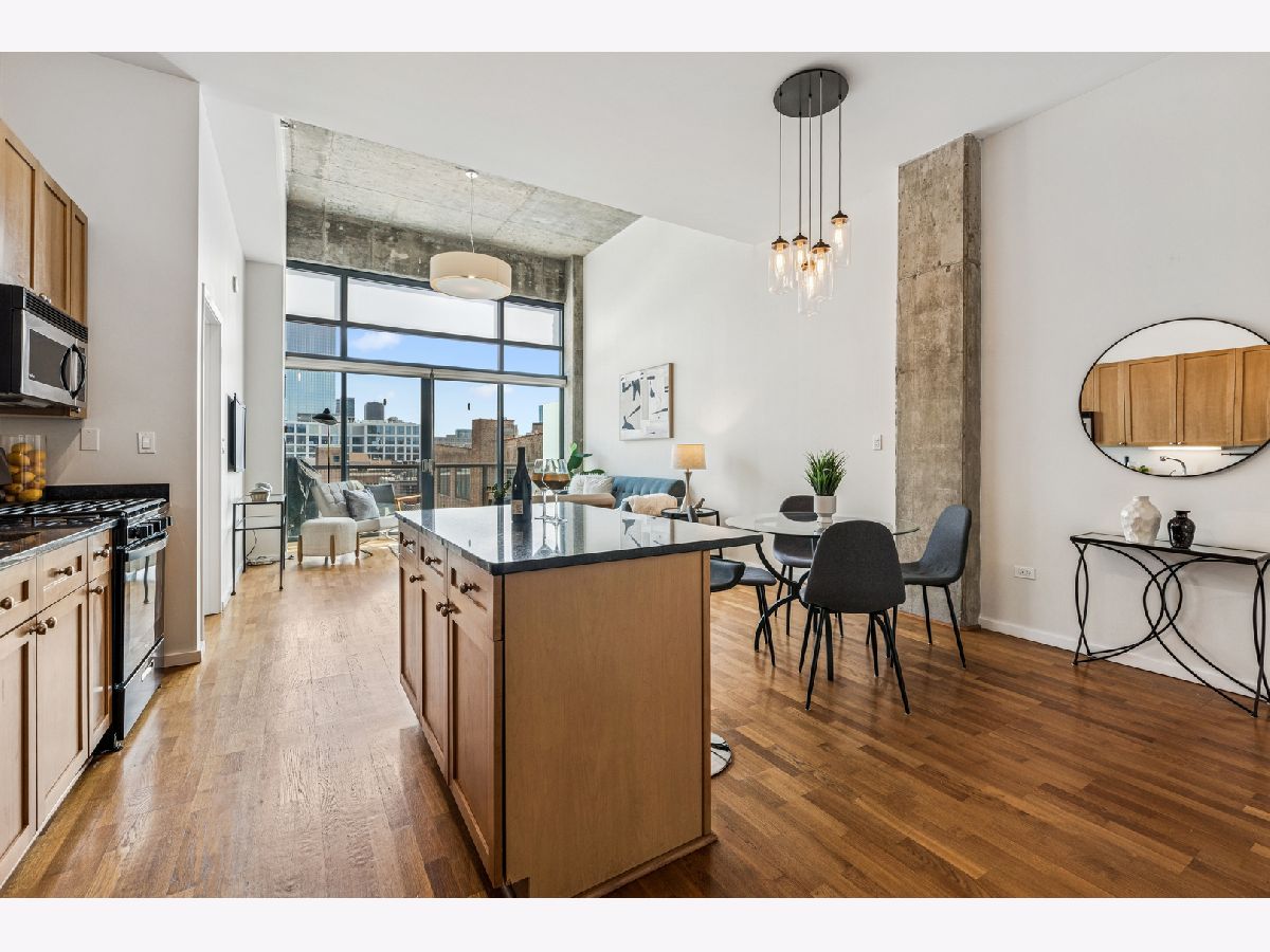 This is a must see 2 bedroom / 2 bath condo with amazing views in the West Loop. It's a rarely available penthouse concrete loft in sought after Lofthaus. Take in the breathtaking east facing views with floor-to-ceiling windows and soaring 18 ft ceilings. Step out onto the 15 foot long balcony through the double sliding doors from the huge living room. Super bright and open floor plan. Maple cabinets, granite counters and new SS appliances complete the kitchen. The granite center island w/breakfast bar is the heart of the condo making it easy to socialize with guest, because everyone winds up in the kitchen. There is also a wide separate dining area that can fit a true dining table. The primary bedroom has the same 18 ft. floor to ceiling windows, organized closets and a primary bathroom with separate slate shower and deep tub. The second bedroom is fully enclosed with large transom windows to bring in the light, plus a contemporary sliding barn door and hardwood floors. Included in the second bedroom is a custom murphy bed / desk combination to maximize space. Extra large second bathroom with marble tile is conveniently across the hall from the second bedroom. Stackable washer/dryer & custom window coverings complete the home. Storage cage #41 included. Heated parking is an additional $25,000. Investor friendly building with no rental cap. Location is the best feature of all. Walk to the Loop, Trains, Metra, Randolph, Target, Dog Park, Restaurants, Bars, & Shops!