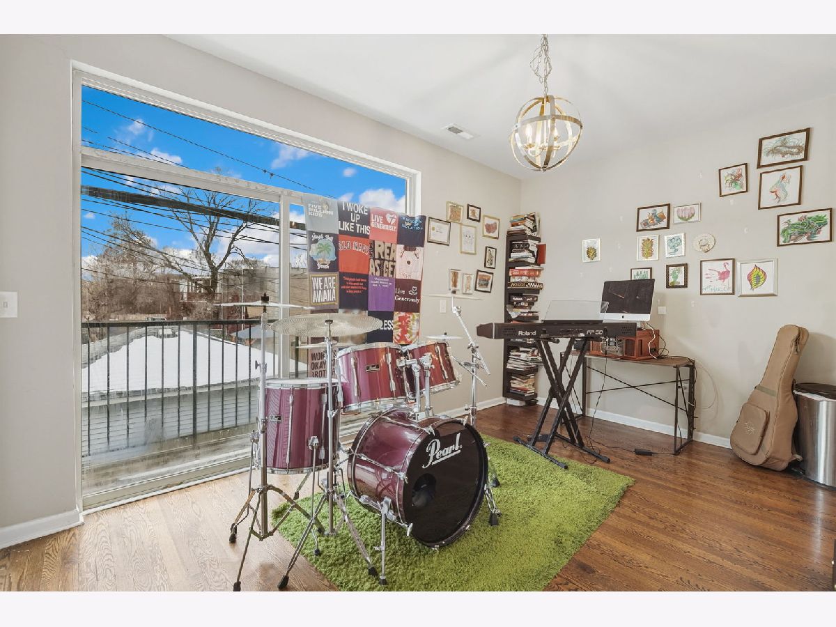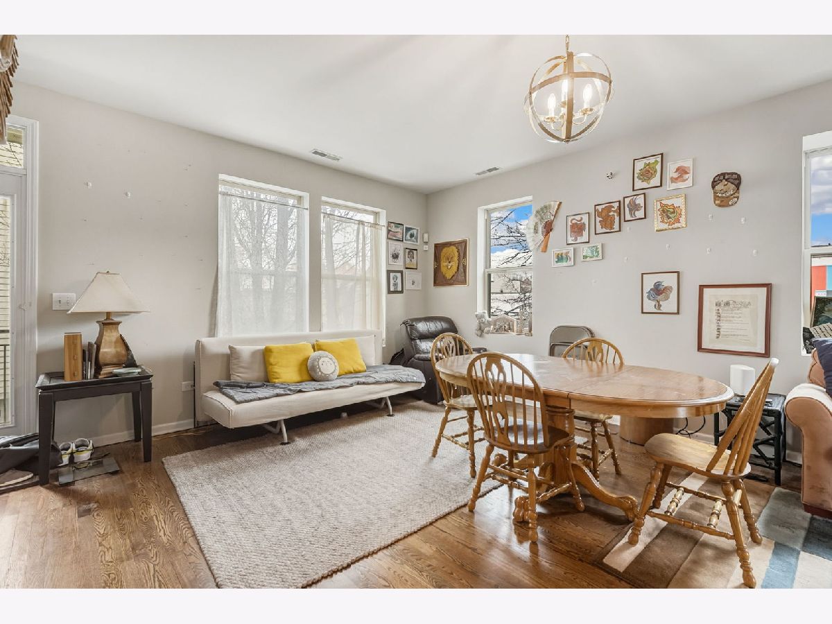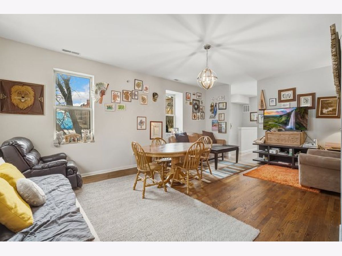 Bright and modern 2-story condo in Homan Square, just steps from Douglas Park. This contemporary duplex townhome lives like a single-family home, offering two full levels of living space. The first floor features recently refinished hardwood floors throughout, creating an ideal setting for entertaining. Enjoy an open living and dining area that flows into a spacious eat-in kitchen with granite countertops and stainless steel appliances.The second level offers two generously sized, carpeted bedrooms, including a primary suite with an en-suite bath featuring dual vanities, granite countertops, and a separate walk-in shower. A second full bathroom completes this level. Head upstairs to rooftop access-perfect for additional entertaining space. Additional highlights include in-unit laundry and a one-car garage included in the price. Whether you're looking for a strong investment property or a move-in-ready home, this is a win-win opportunity. Cash only, sold AS IS.