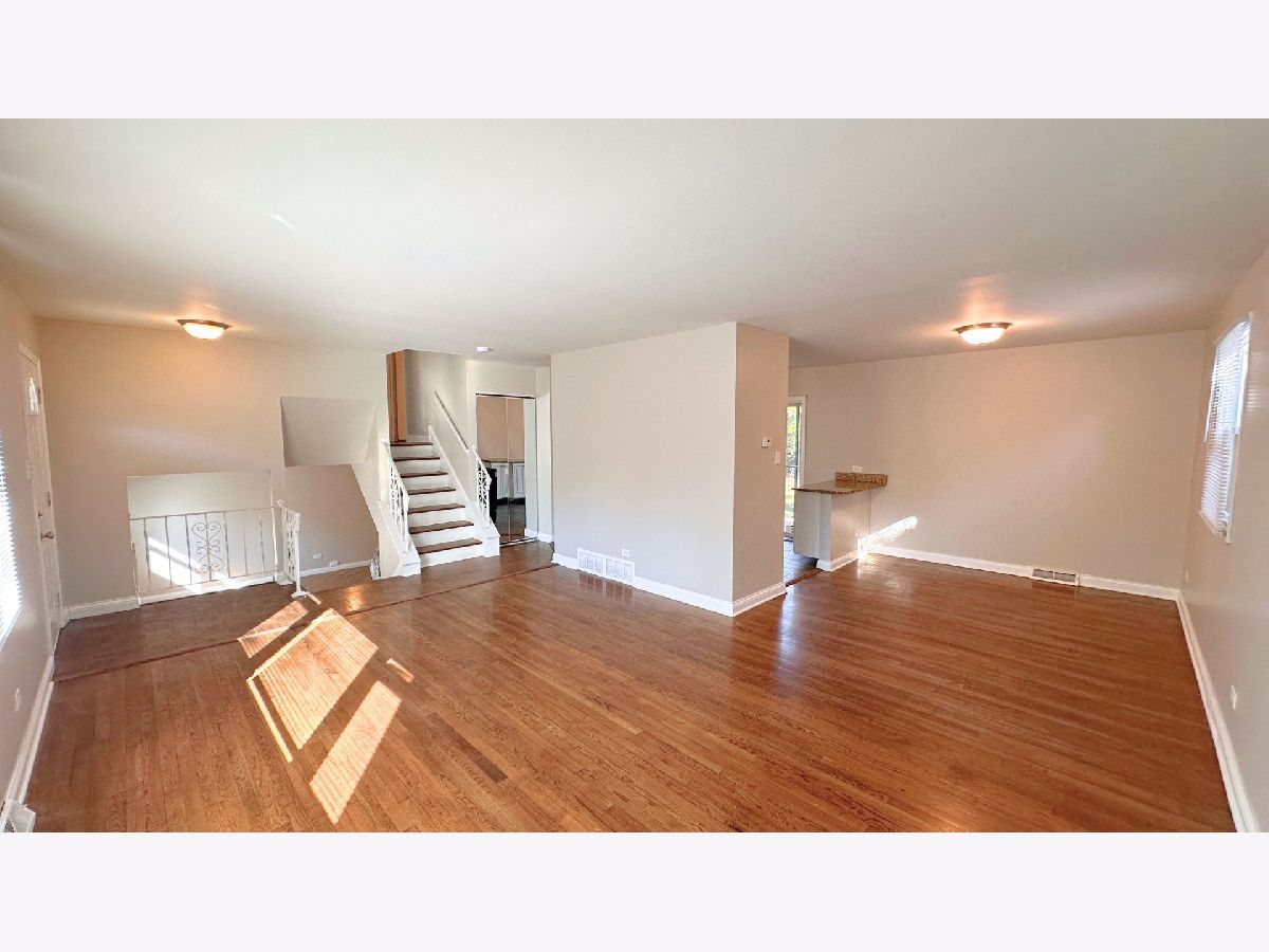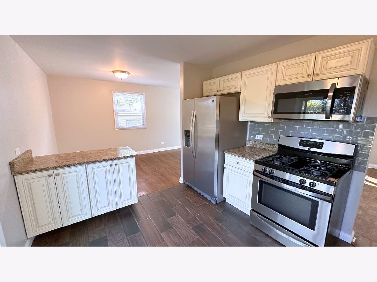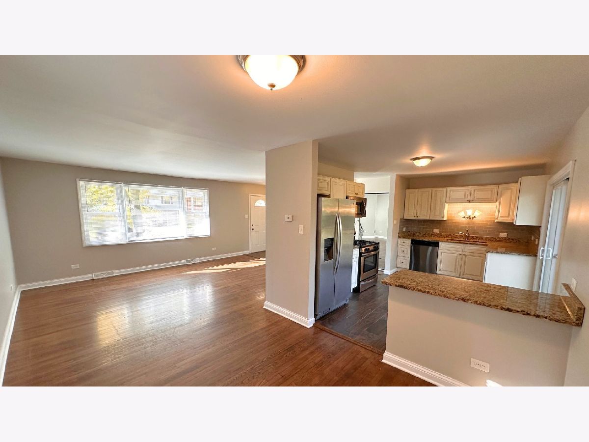 Welcome to 3214 Birchwood Drive, a beautifully updated 3-bedroom, 2-bath split-level home offering 1,223 square feet of bright, comfortable living space in a quiet residential neighborhood. Step into a spacious main living area with rich dark wood floors and oversized windows that flood the space with natural light and overlook the front yard. The kitchen is a true highlight, featuring granite countertops, custom cabinetry with detailed finishes, stainless steel appliances including a gas stovetop, oven range, and dishwasher, and a stunning glass tile backsplash. Enjoy casual meals in the dedicated dining nook just off the kitchen, with sliding glass doors that lead to a private, fenced-in backyard surrounded by trees and perimeter greenery. It's perfect for privacy, relaxation, and outdoor gatherings. Upstairs, hardwood floors run throughout all three bedrooms. Each room is uniquely laid out and includes large windows, ample closet space, crown molding, and excellent natural light. The shared full bathroom on this level features elegant custom tile work and a granite-topped vanity. The lower level offers a second large living area with fresh carpet, portrait windows, and direct access to the front yard. A second full bathroom is finished with tile flooring and a granite vanity, along with convenient walk-out access to the attached one-car garage. The exterior features classic yellow brick and vinyl siding, a private driveway, and a fully fenced yard in a peaceful, established neighborhood. Located in Hazel Crest, this suburban village offers access to green spaces, top employers like Advocate South Suburban Hospital, and easy commuting via nearby interstates and Metra service to downtown Chicago. Known for its community ties and affordability, Hazel Crest is a popular choice for first time home buyers. Move-in ready and full of charm, this is one you won't want to miss.