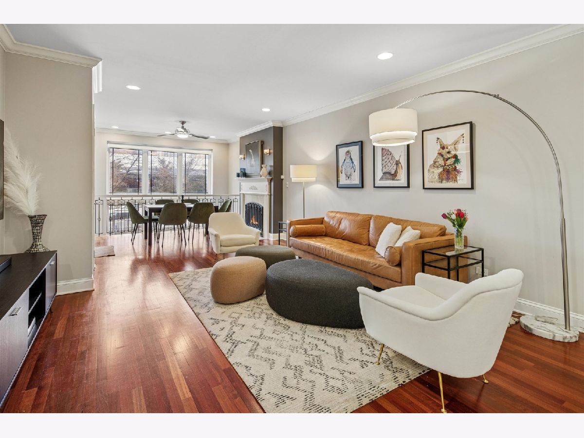 Meticulously maintained and beautifully updated, this sun-filled 3BD/3BA duplex-down sits on a quiet one-way street in sought-after Lakeview. The main level offers a spacious living/dining area with fireplace and an open granite kitchen featuring 42" cabinets, island, stainless steel appliances, and ample storage. The primary suite includes a walk-in closet, private balcony, and marble bath with Jacuzzi tub and separate shower. The lower level has 10' ceilings, a large family room with fireplace and wet bar, third bedroom, full bath, and private sunken patio. Attached garage parking, extra storage, and smart home upgrades complete this exceptional home-just steps from the El, shopping, and dining.