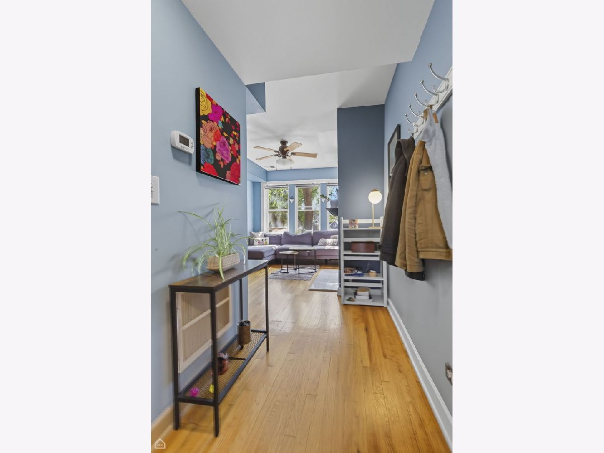 Charming 2 bedroom, 1 bath condo in highly desirable Irving Park! Located on an idyllic tree-lined street, this condo features a cozy living room with wood-burning fireplace, hardwood floors throughout and ample storage. The primary bedroom is a great size with direct access to the spacious bathroom. Second bedroom welcomes you with French doors and beautiful natural light. The sunny and open back deck is ideal for grilling and summer entertaining. Convenient in-unit laundry. There is an additional bike area and private storage space in the building. Very convenient location, nearby to tons of restaurants, coffee shops, grocery stores. Walkable to Brown line and Horner Park, and access to multiple buses. Easy street parking.
