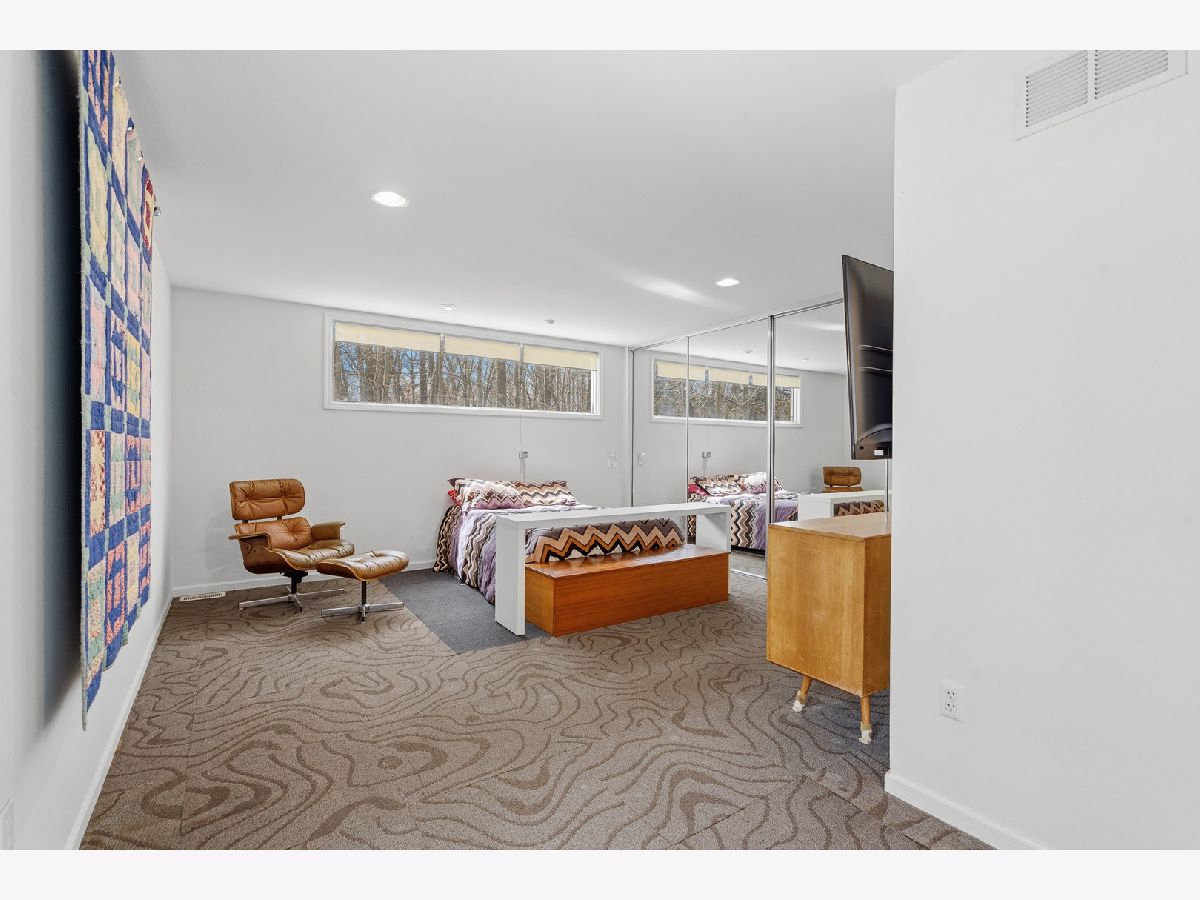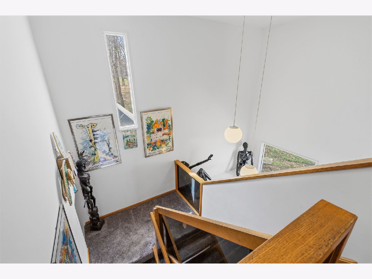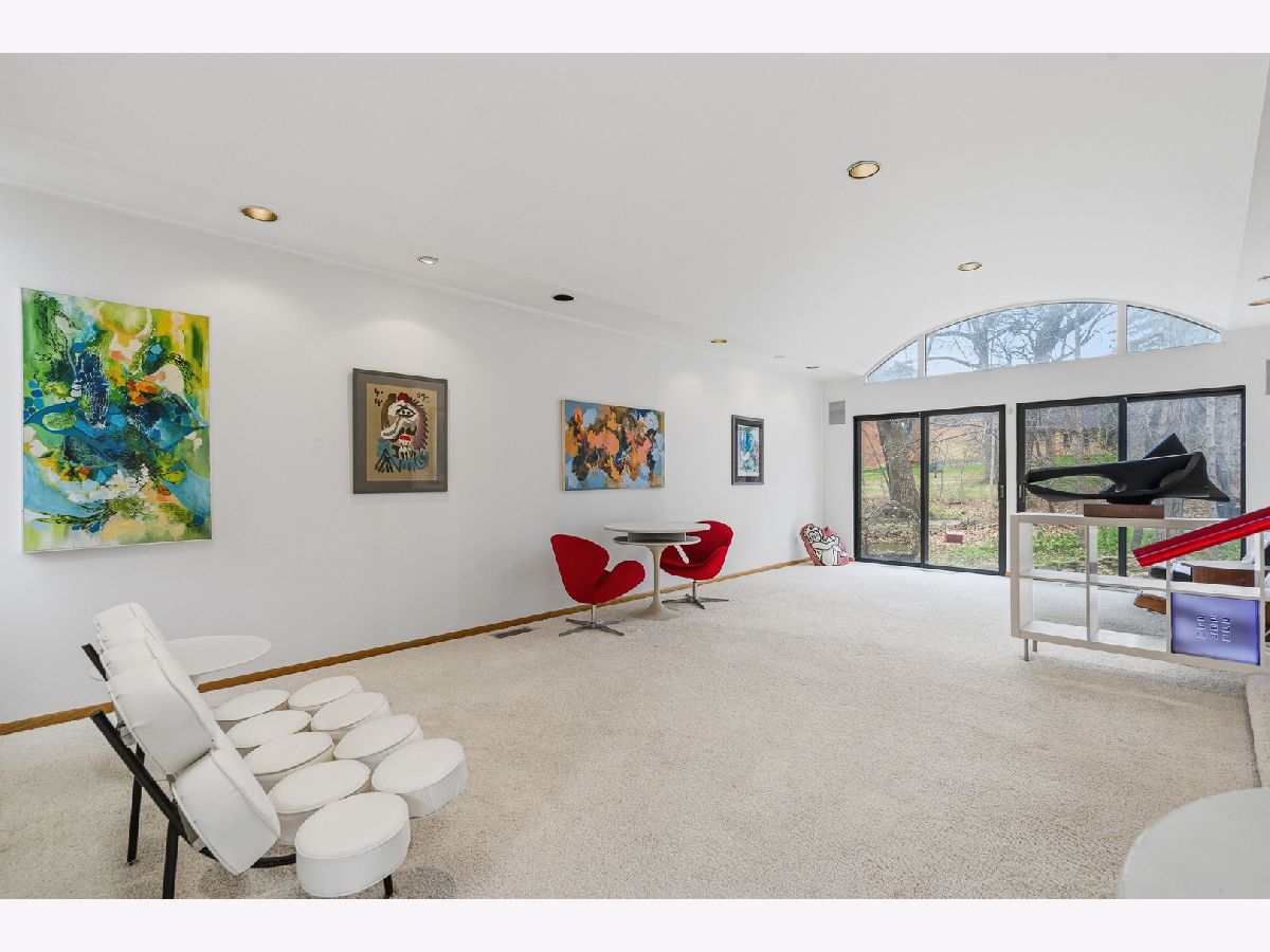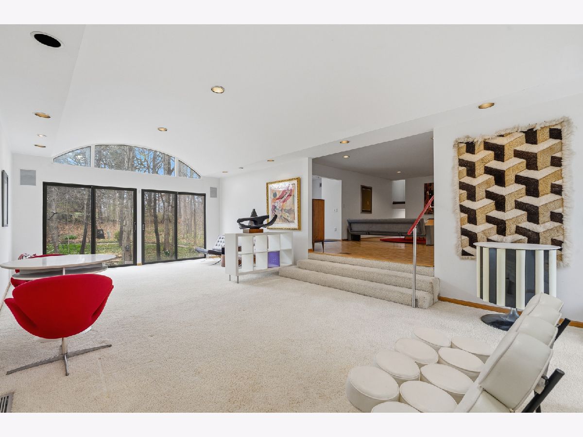 MULTIPLE OFFERS RECEIVED. HIGHEST & BEST REQUESTED BY 4PM, SATURDAY APRIL 11. Introducing a truly one-of-a-kind architectural masterpiece designed by renowned architect Ross De Young as his personal residence, gracefully tucked away at the end of a quiet private road on a breathtaking wooded homesite, offering picturesque views of nature from nearly every room through expansive sliding glass doors and elegant Juliet balconies that invite the outdoors in. The grand dining room is both refined and inviting with exquisite parquet flooring, balcony access, and a beautiful dining set that remains, while the spacious kitchen is thoughtfully designed with an abundance of cabinetry ideal for everyday living and entertaining. A dramatic family room showcases a striking barrel-vaulted ceiling and sliding glass doors overlooking the lush, extensively landscaped yard, and the sun-filled living room continues the theme of warmth and sophistication with gleaming parquet floors and natural light. The luxurious master suite features a wall of closets and a spa-inspired private bath complete with double granite vanity, bidet, separate shower, and soaking tub, while the additional bedrooms are uniquely appointed: the second bedroom offers a private bath and sliding glass doors to an outdoor roof deck, the third includes a Juliet balcony and impressive built-in desk, and the fourth boasts generous closet space and its own Juliet balcony. Additional highlights include three furnaces, three air conditioners, 1 a/c and 1 furnace (2023), an English basement with laundry and utility sink, an extra-deep garage with workshop space, and a heated and cooled storage area off the garage, all surrounded by mature trees and tranquil scenery, making this remarkable residence a rare opportunity to own a distinctive architectural retreat in an unparalleled natural setting.