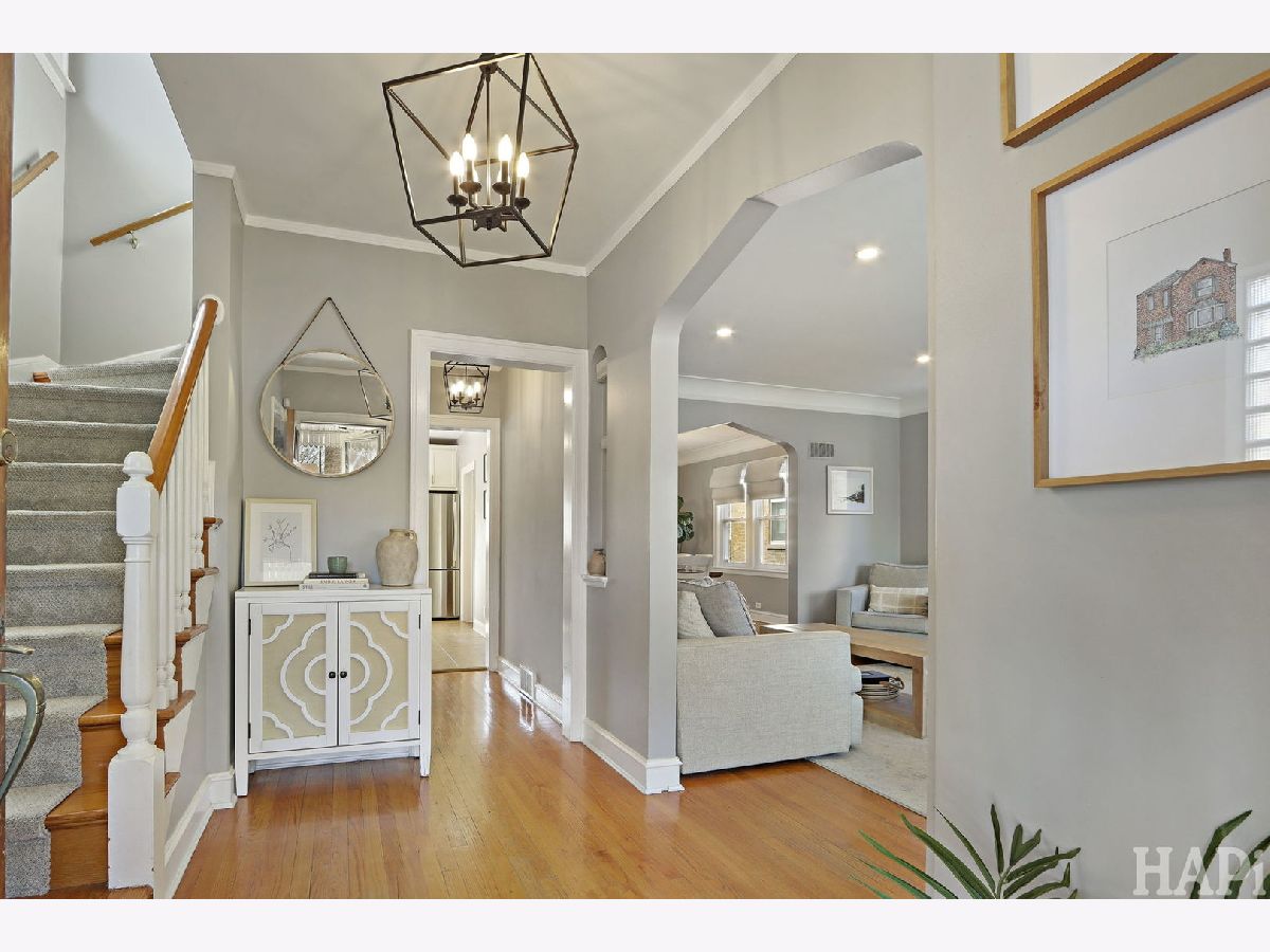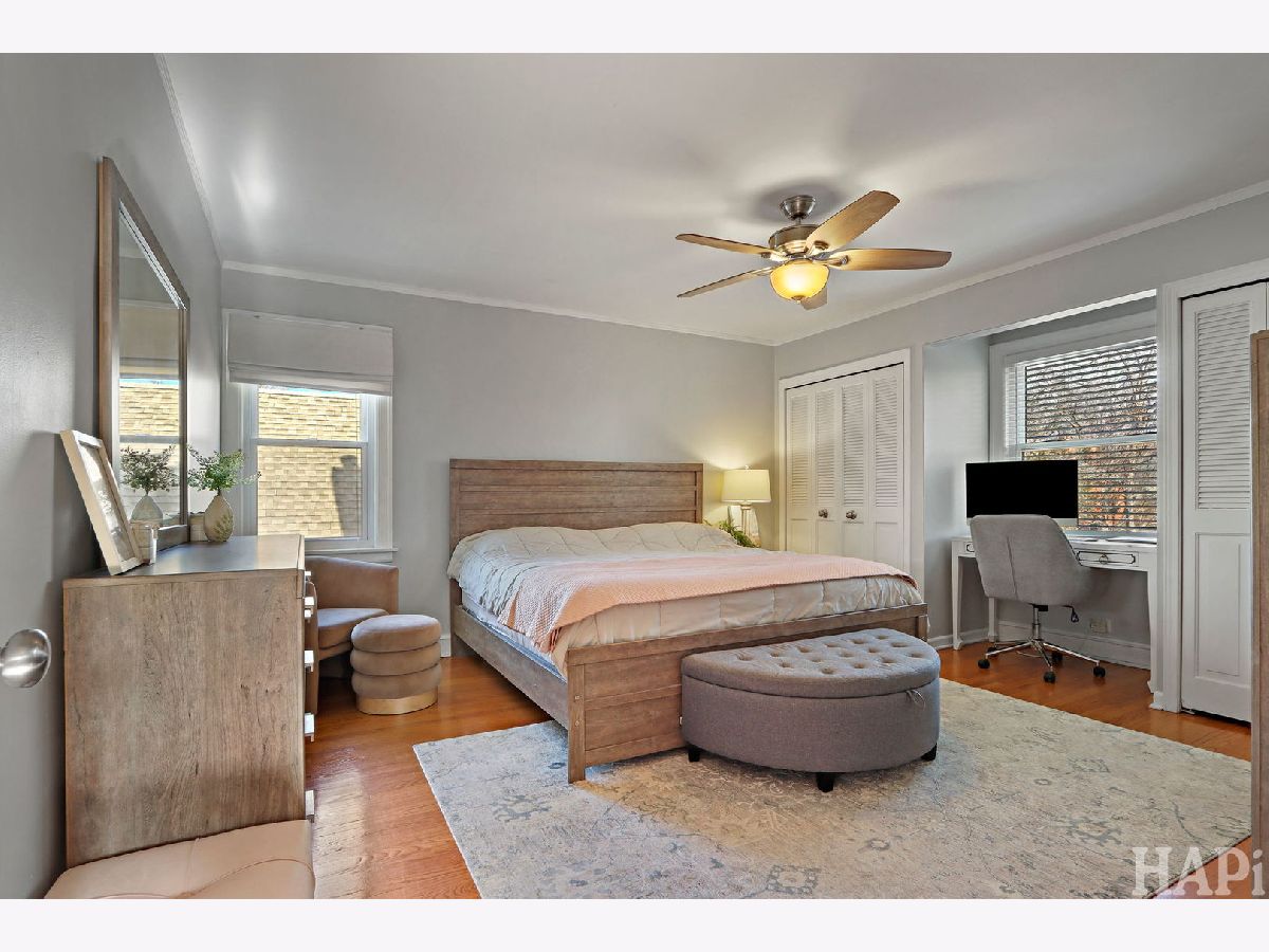 This remarkable two-story brick home is meticulously maintained and located on tree-lined street in the desirable Schorsch Village, just minutes away from expansive 18-acre Shabbona Park. Set on a nearly 35-foot lot, this spacious and thoughtfully designed residence features hardwood flooring, neutral-colored walls, two fireplaces, updated light fixtures throughout, and elegant wide archways that define spaces within an open floor plan, offering flexibility and comfortable areas for daily living or easy entertaining. The large living room and formal dining room are complemented by cove moldings and fireplace with custom wood and marble surround. The kitchen is well-equipped with ample cabinetry, granite countertops, and stainless steel appliances. It also has space for a table and large windows that let in natural light while providing a view of the fantastic back yard, complete with a new privacy fence and a large patio, making it an ideal setting for dining or entertaining. Conveniently situated at the rear of the home, the den provides and access to a new porch leading to the backyard, while stylish powder room is situated by the side entrance. The welcoming entry foyer features a coat closet and a wooden staircase leading to the upper level, which provides three spacious bedrooms, one of which includes a walk-in closet and others wall-to-wall closets, all featuring ceiling fans with light fixtures. The updated bathroom showcases ceramic tile and additional cabinetry for storage, along with a large linen closet. The finished lower level offers extra living and recreational space, highlighted by another fireplace and a versatile room currently used as a bedroom, or could easily serve as an office, a laundry room with a new washer and dryer, and multiple walk-in closets. Furthermore, a crawl space beneath the den provides additional storage options. The garage, only a few years old, includes a party door that enhances indoor-outdoor entertaining. Other updates in the last several years include: HVAC, vinyl windows, attic insulation, vinyl privacy fence, concrete patio, sidewalk and landscaping in the back yard, and a flood control system. The roof and siding on the back room are approximately 15 years old. This is a fantastic place to call home, conveniently located near grocery stores, a shopping mall, various restaurants, coffee shops, public transportation and this fabulous park with an indoor swimming pool, fitness center, basketball and football/soccer fields, pickleball and tennis courts, a playground, walking trails, and variety of programs for preschoolers and toddlers. Great home, designed to last for generations. Move-in condition. A must see!