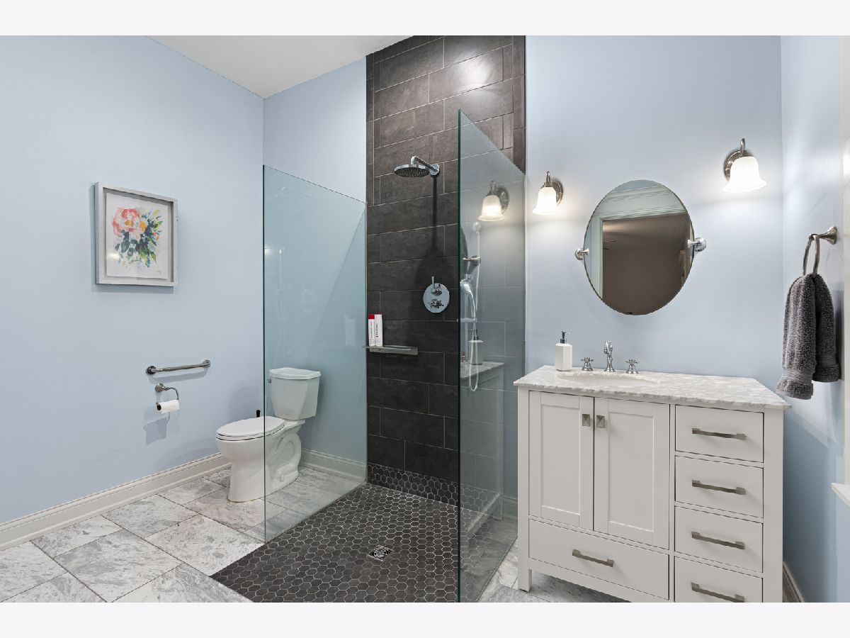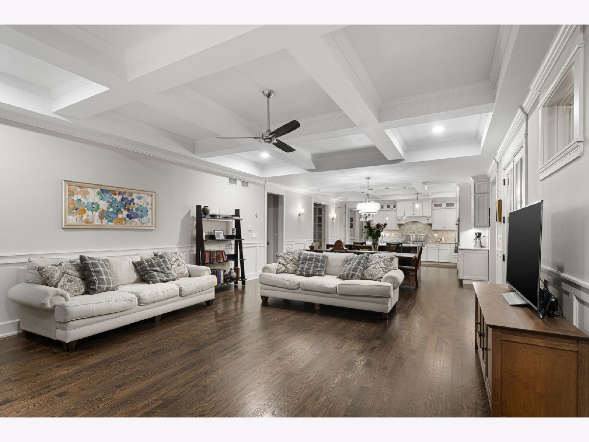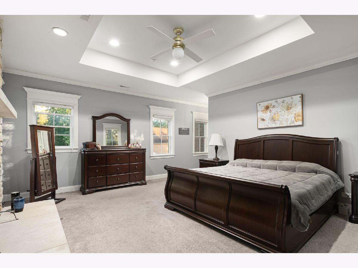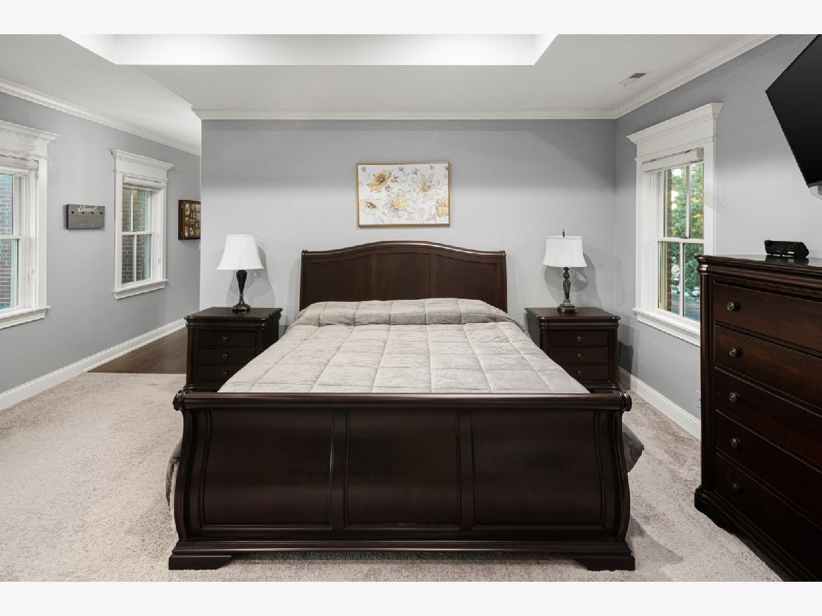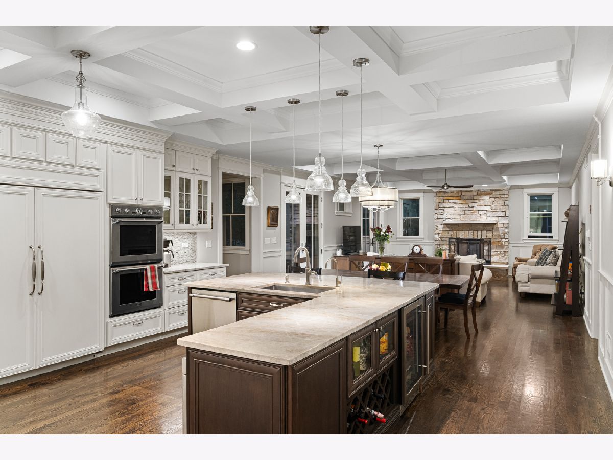 Nestled in the prestigious Scarsdale Estates Subdivision of Arlington Heights, this stunning 5-bedroom, 4.5-bathroom Colonial home, custom design/build in 2019, offers 4,500 square feet of luxury living above ground and another 2000+ square feet in the lower-level. The open floor plan showcases beautiful Oak hardwood floors, recessed ceilings ranging from 9 to 10 feet, an inviting family room with a limestone fireplace and coffered ceilings. The chef's kitchen features solid wood custom cabinetry, rare stone countertops, high-end Sub-Zero and Thermador appliances, double ovens, and flows seamlessly into the formal dining room, which provides access to the front porch. Perfectly positioned dining room surrounded by windows and coffered ceilings. The first floor includes a main floor suite with ensuite private bath, office, and large laundry room with a laundry chute connecting to the second floor. The spacious mudroom leads to a heated 3.5-car garage. The primary suite boasts limestone fireplace, spa-like master bath with large soaking tub and large walk-in closet. Also on the second floor you have three more guest bedrooms and two more guest bathrooms. Additional highlights include a whole-home backup generator, 400-amp electric service, an easy-access stairway from the garage to the partially finished basement, large driveway for multiple cars with 2 parking spaces and room to maneuver/turn around. Located within the highly-rated Prospect High School district, this home combines modern elegance with functional amenities, including a drainage system around the perimeter, Ethernet CAT 6 throughout, and an oversized garage ideal for larger vehicles or trailers. Steps from shopping & restaurants! Home sits on 1/2 acre of land.