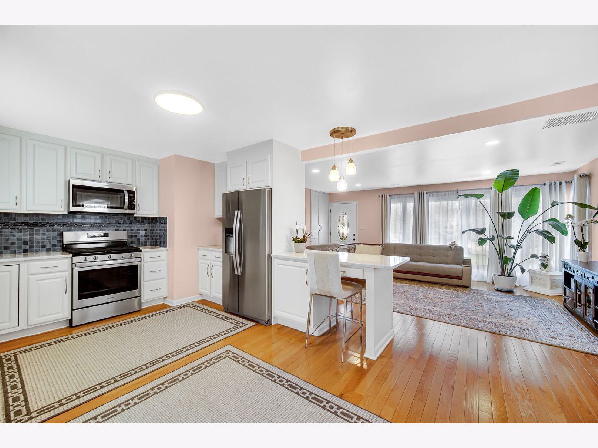 Welcome to this beautifully maintained home in Mundelein where comfort and thoughtful updates come together. The home was updated in 2018, and you can immediately see how well it has been cared for. As you walk in, you'll notice the beautiful hardwood flooring (2018) that runs throughout the main living areas, giving the home a warm and inviting feel. The fresh, neutral paint (2018) makes the space bright and comfortable, with large windows bringing in plenty of natural light. The kitchen was updated in 2018 and features white cabinets, stainless steel appliances, and a stylish backsplash. There's plenty of cabinet space and a functional layout that makes cooking and everyday living easy. The kitchen opens nicely to the living area, creating a comfortable space to gather with family and friends. The bedrooms are spacious and filled with natural light, also featuring hardwood floors and good closet space. Everything about this home feels clean, well-kept, and move-in ready. Outside, you'll find a large backyard that's perfect for relaxing, entertaining, or enjoying summer evenings. There's also a detached garage and long driveway for convenient parking. This home is conveniently located close to parks, schools, shopping, and everyday amenities, while still offering a quiet neighborhood feel.