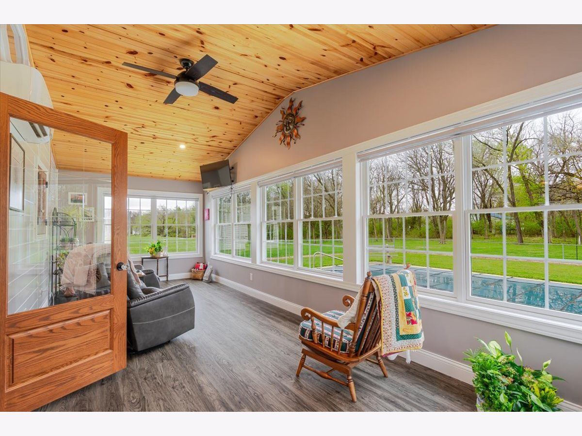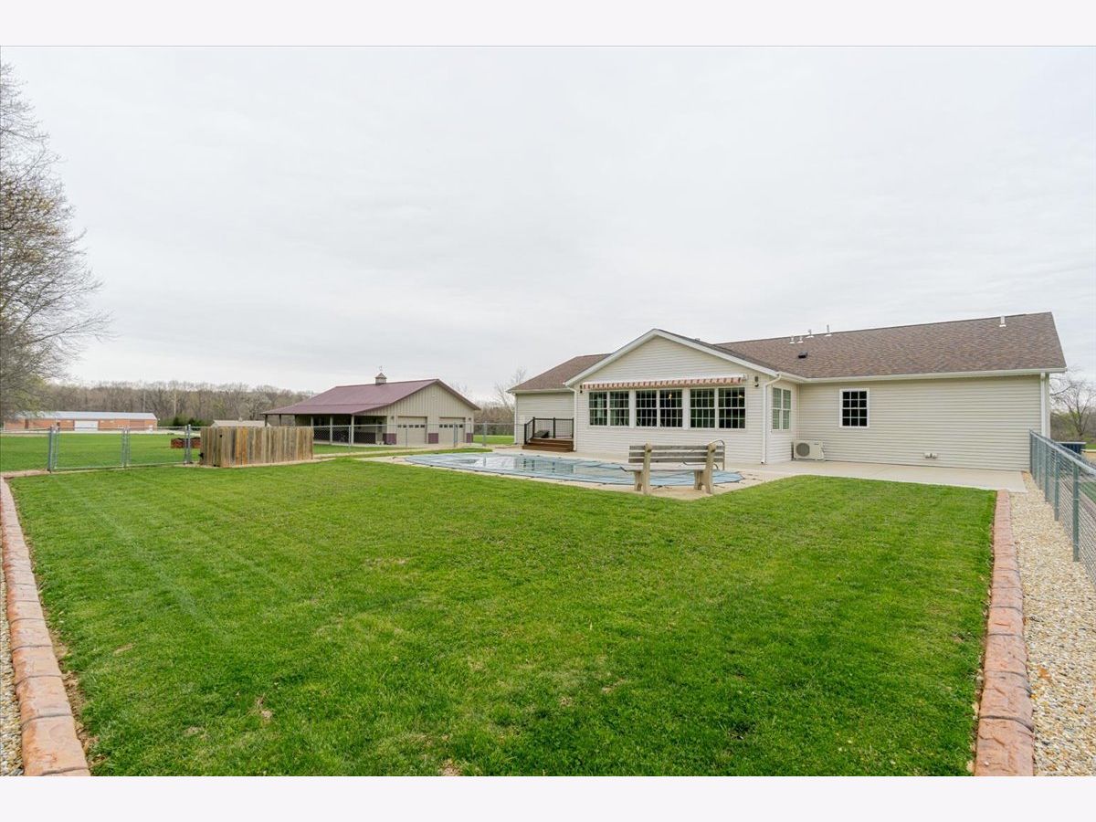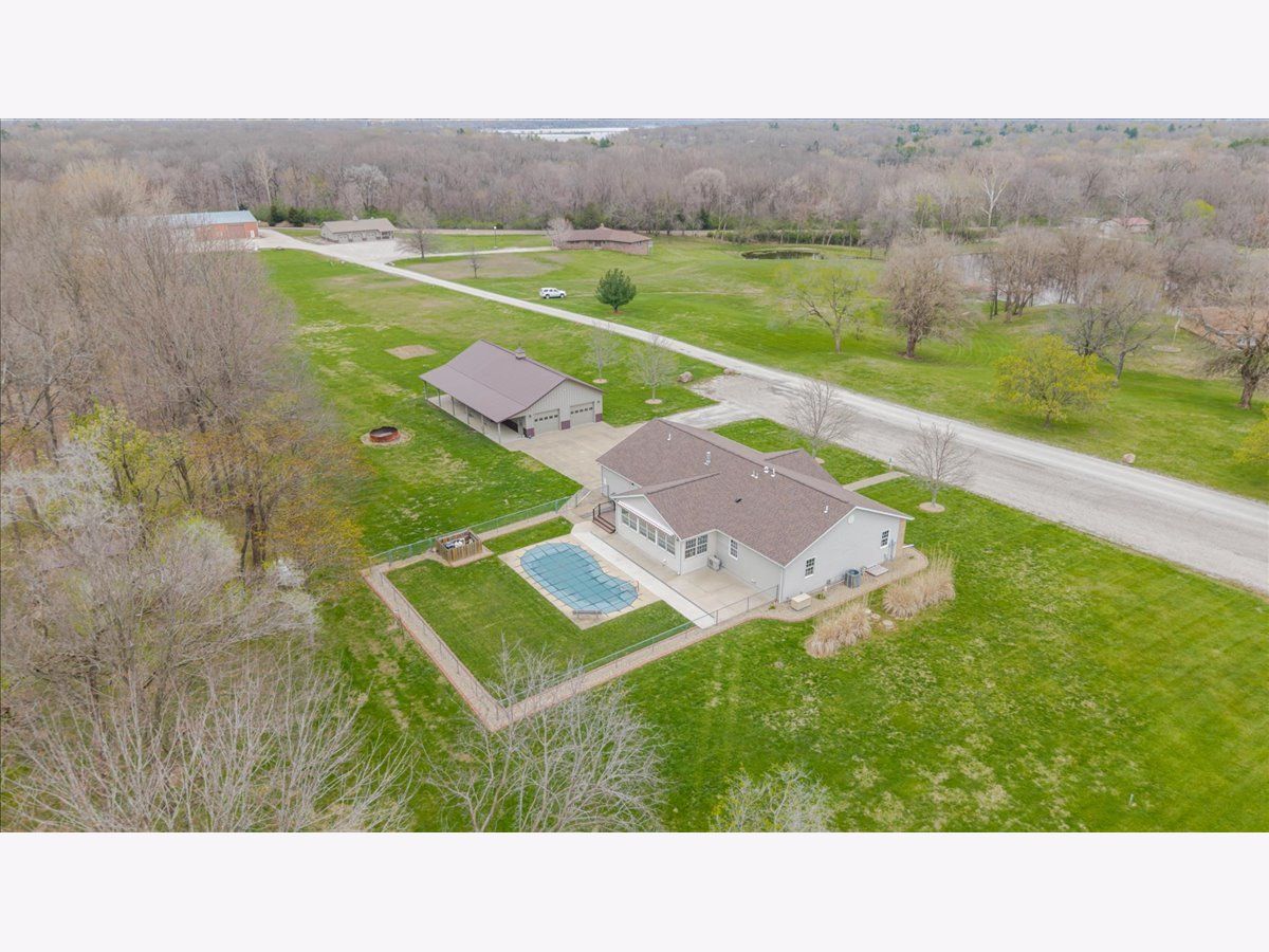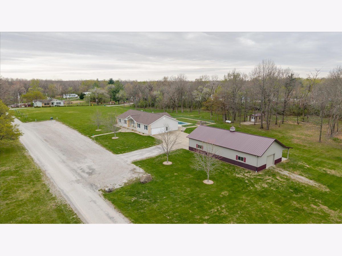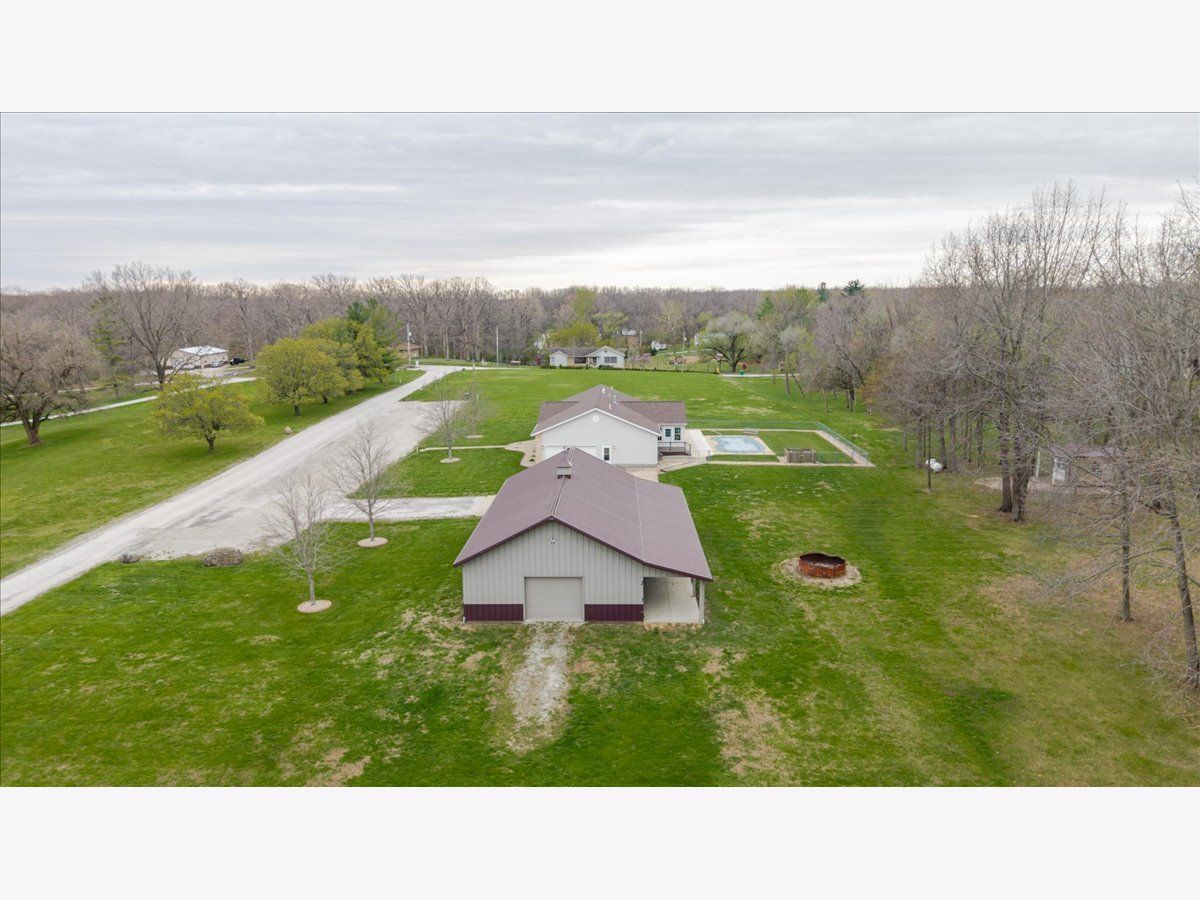 Enjoy the best of country living paired with everyday convenience! Nestled on 6.91 partially wooded acres, this retreat offers nearly 3,500 finished square feet of space inside and plenty of room to roam outdoors. The open-concept layout includes a well-appointed kitchen with a large raised island, pull-out prep station, gorgeous granite countertops, and custom cherry cabinetry. A striking three-sided fireplace adds warmth and charm to the main living area, while a second fireplace awaits in the expansive lower level. Off the kitchen, custom doors lead to a newly added, climate-controlled sunroom overlooking the inground pool, with an electric awning for extra comfort. The main floor hosts three bedrooms, including a generous primary suite with double vanities, a soaking tub, separate shower, and a custom walk-in closet. The lower level is designed for flexibility, featuring a second kitchen, a full bath, and an additional bedroom-perfect for guests or extended stays. A whole-house generator, heated basement floors, and a playhouse/cabin add even more comfort and charm. Outside, a 60' x 30' (approx.) building offers three doors, concrete flooring, and a covered patio along the entire west side. The roof was replaced in 2022, HVAC updated in 2023, and newly planted trees enhance the front landscape. This property truly is a one-of-a-kind retreat!