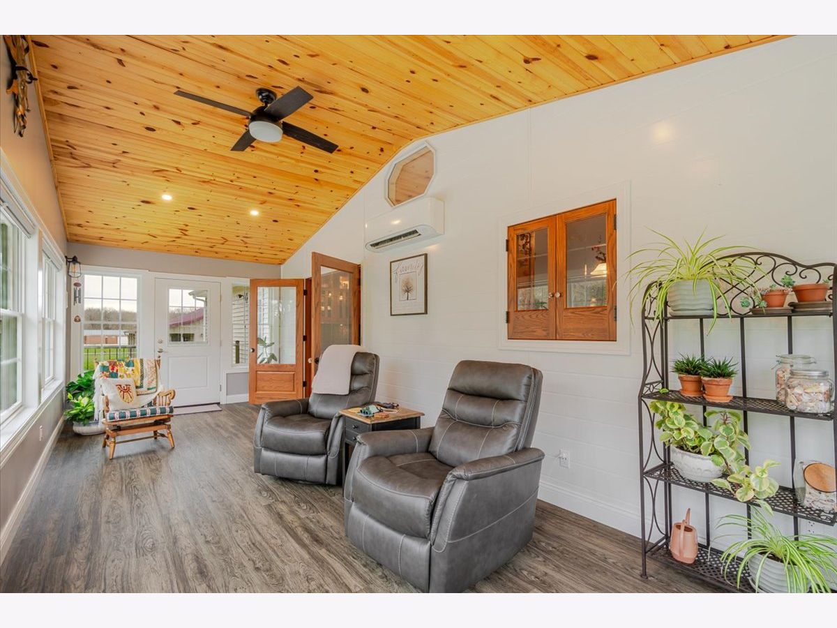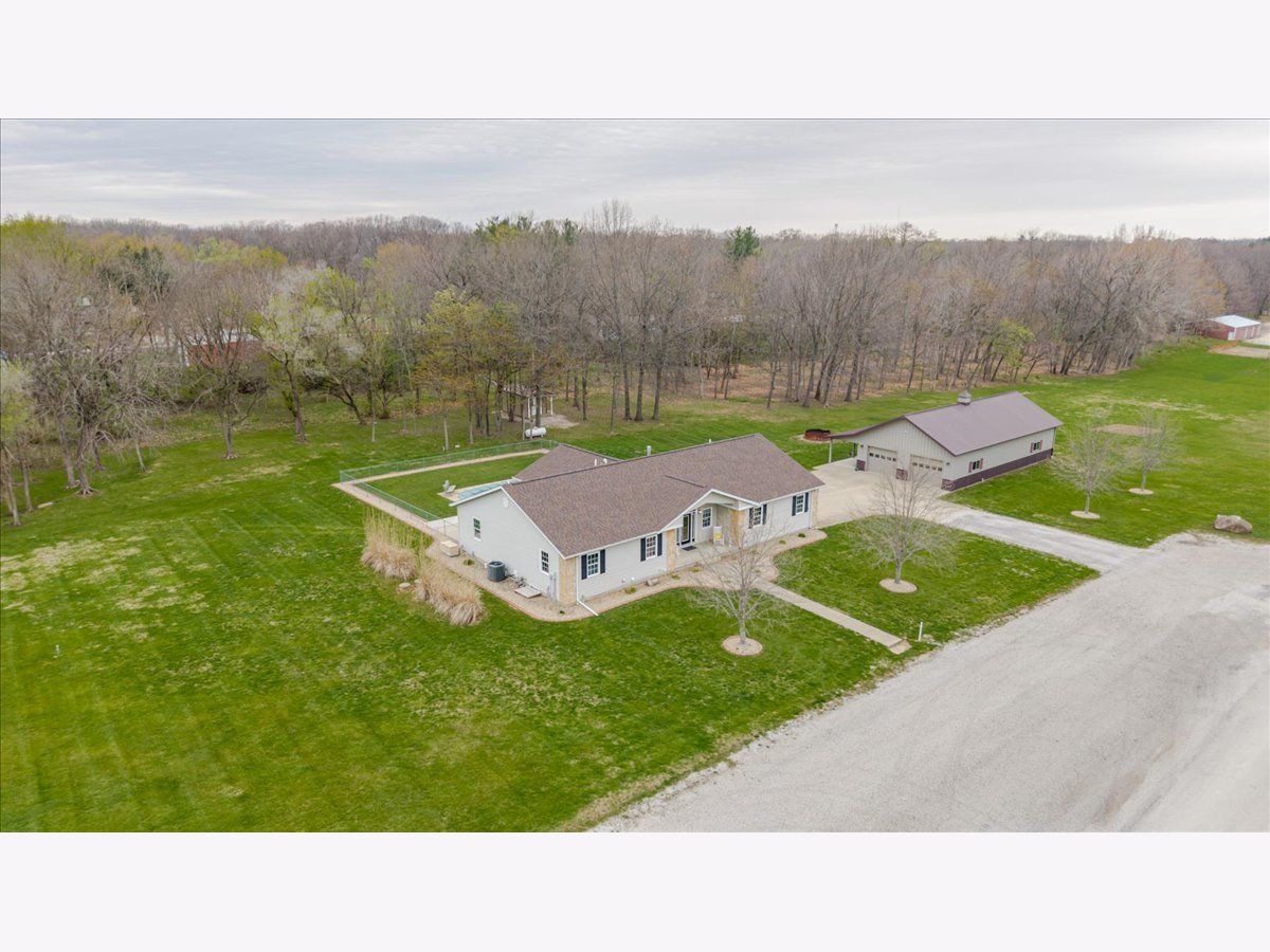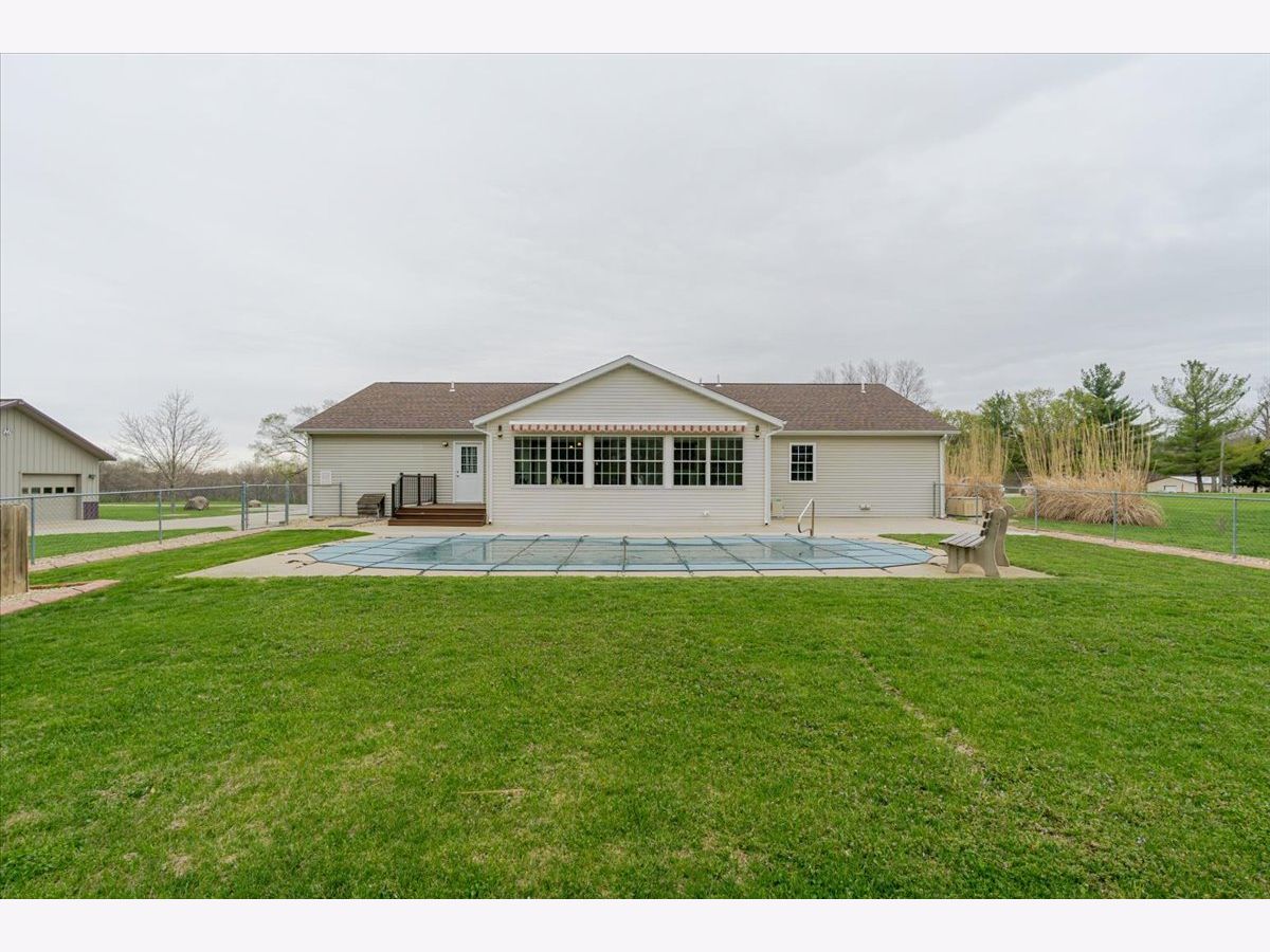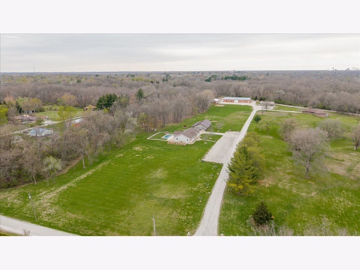 Enjoy the best of country living paired with everyday convenience! Nestled on 6.91 partially wooded acres, this retreat offers nearly 3,500 finished square feet of space inside and plenty of room to roam outdoors. The open-concept layout includes a well-appointed kitchen with a large raised island, pull-out prep station, gorgeous granite countertops, and custom cherry cabinetry. A striking three-sided fireplace adds warmth and charm to the main living area, while a second fireplace awaits in the expansive lower level. Off the kitchen, custom doors lead to a newly added, climate-controlled sunroom overlooking the inground pool, with an electric awning for extra comfort. The main floor hosts three bedrooms, including a generous primary suite with double vanities, a soaking tub, separate shower, and a custom walk-in closet. The lower level is designed for flexibility, featuring a second kitchen, a full bath, and an additional bedroom-perfect for guests or extended stays. A whole-house generator, heated basement floors, and a playhouse/cabin add even more comfort and charm. Outside, a 60' x 30' (approx.) building offers three doors, concrete flooring, and a covered patio along the entire west side. The roof was replaced in 2022, HVAC updated in 2023, and newly planted trees enhance the front landscape. This property truly is a one-of-a-kind retreat!