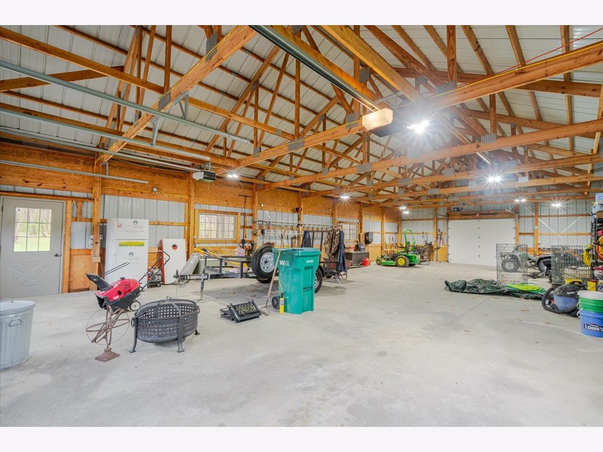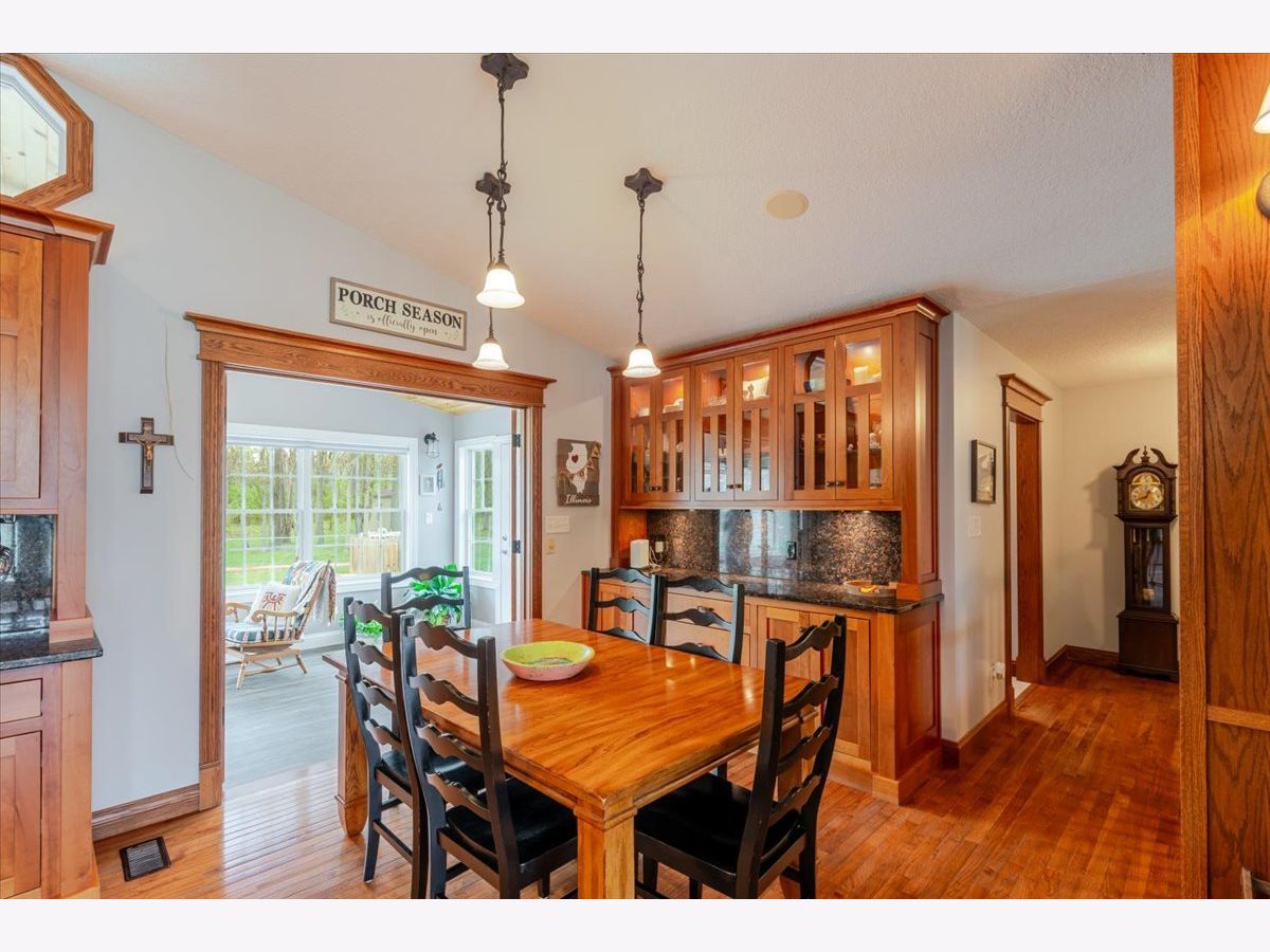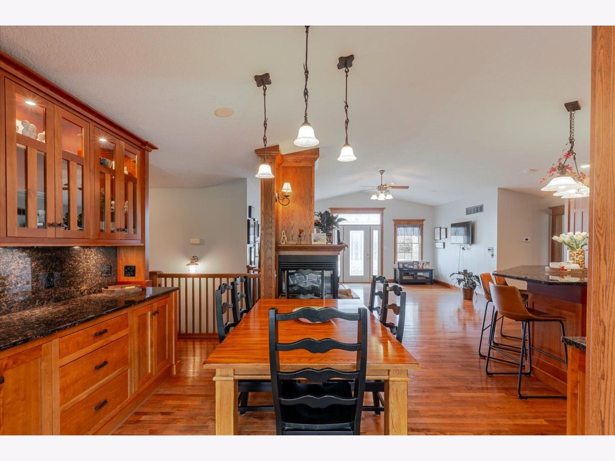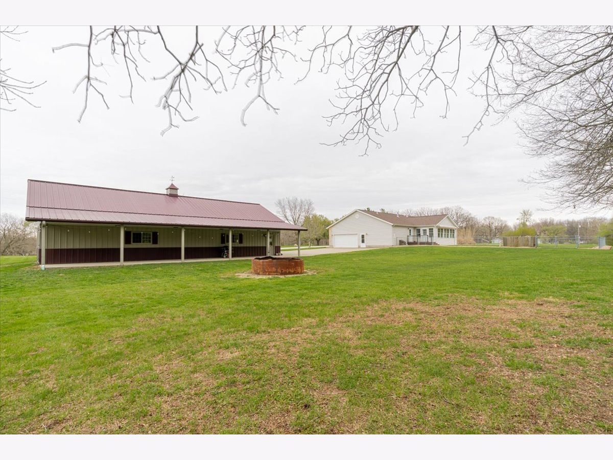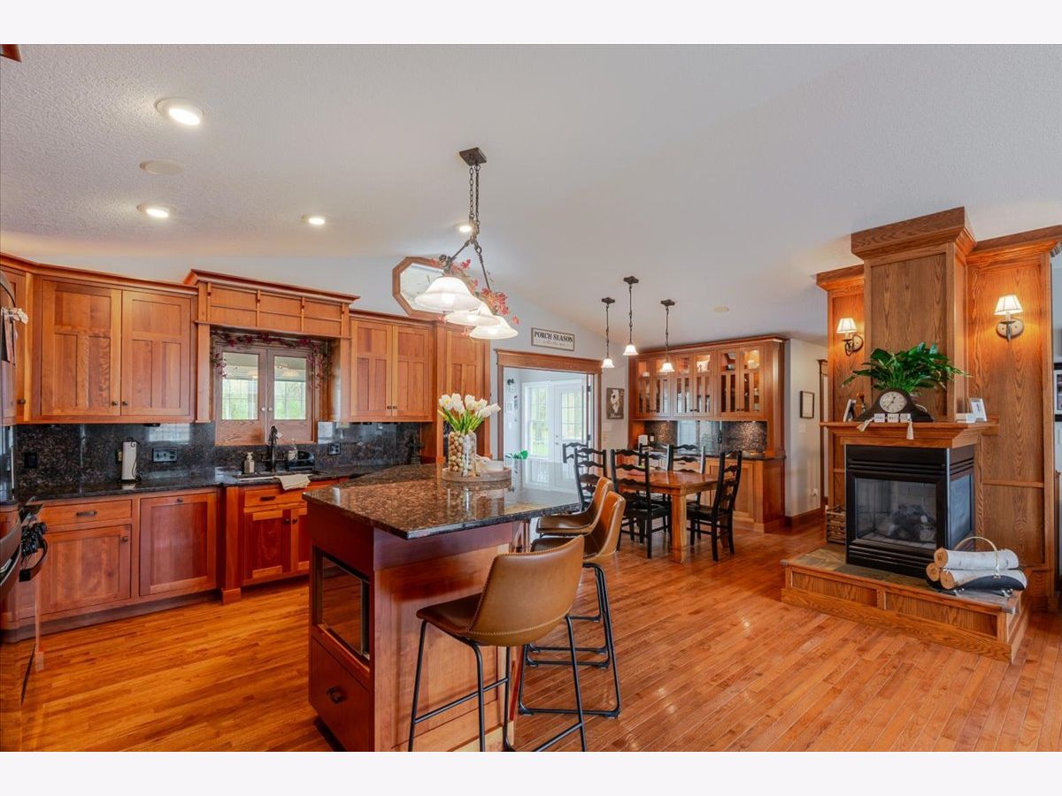 Enjoy the best of country living paired with everyday convenience! Nestled on 6.91 partially wooded acres, this retreat offers nearly 3,500 finished square feet of space inside and plenty of room to roam outdoors. The open-concept layout includes a well-appointed kitchen with a large raised island, pull-out prep station, gorgeous granite countertops, and custom cherry cabinetry. A striking three-sided fireplace adds warmth and charm to the main living area, while a second fireplace awaits in the expansive lower level. Off the kitchen, custom doors lead to a newly added, climate-controlled sunroom overlooking the inground pool, with an electric awning for extra comfort. The main floor hosts three bedrooms, including a generous primary suite with double vanities, a soaking tub, separate shower, and a custom walk-in closet. The lower level is designed for flexibility, featuring a second kitchen, a full bath, and an additional bedroom-perfect for guests or extended stays. A whole-house generator, heated basement floors, and a playhouse/cabin add even more comfort and charm. Outside, a 60' x 30' (approx.) building offers three doors, concrete flooring, and a covered patio along the entire west side. The roof was replaced in 2022, HVAC updated in 2023, and newly planted trees enhance the front landscape. This property truly is a one-of-a-kind retreat!