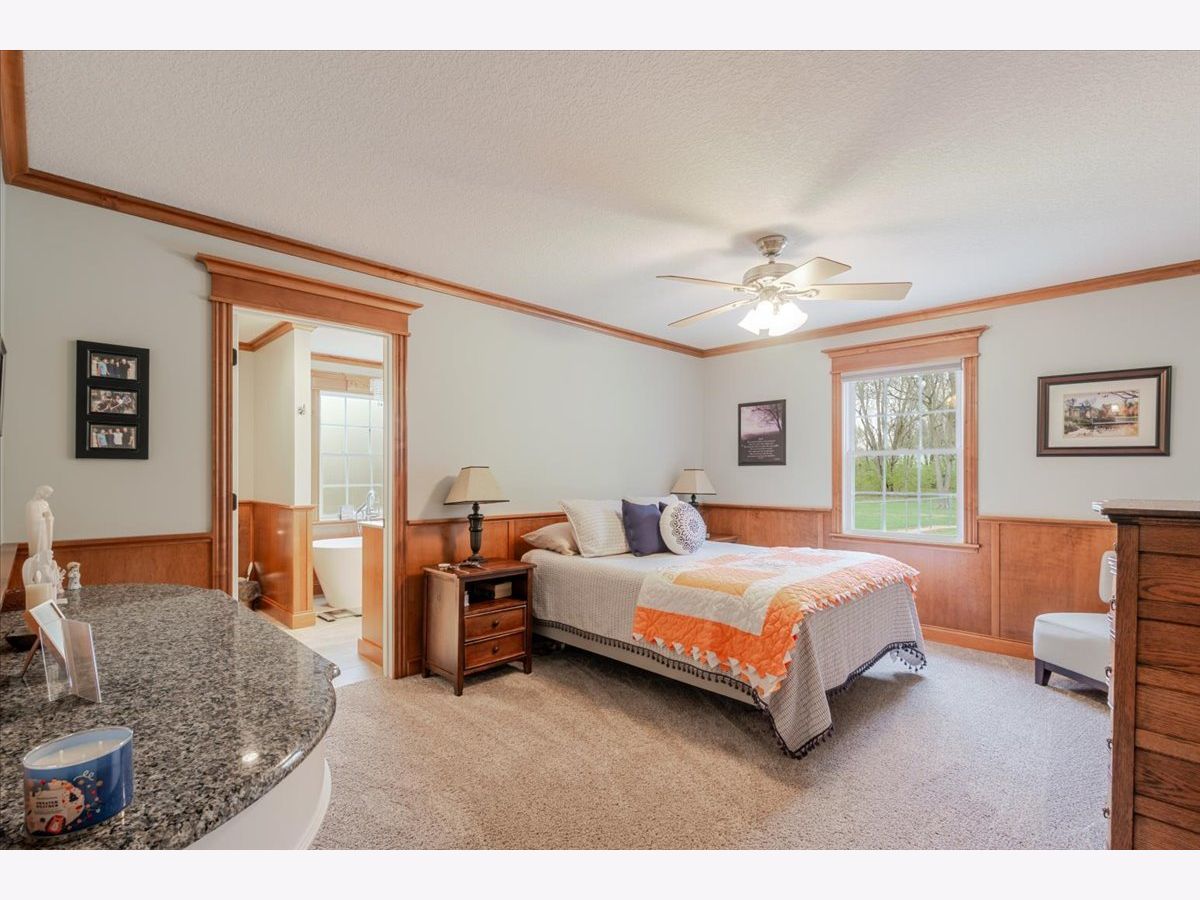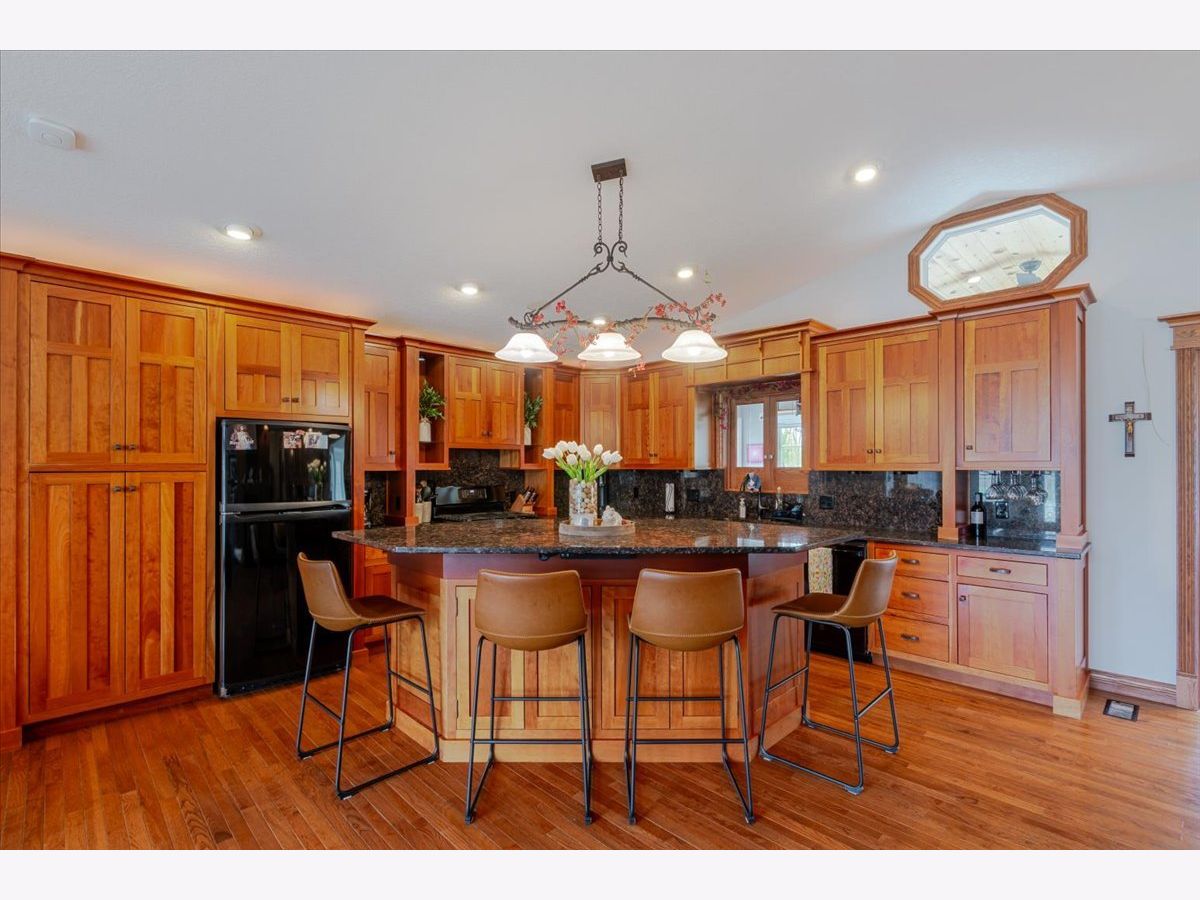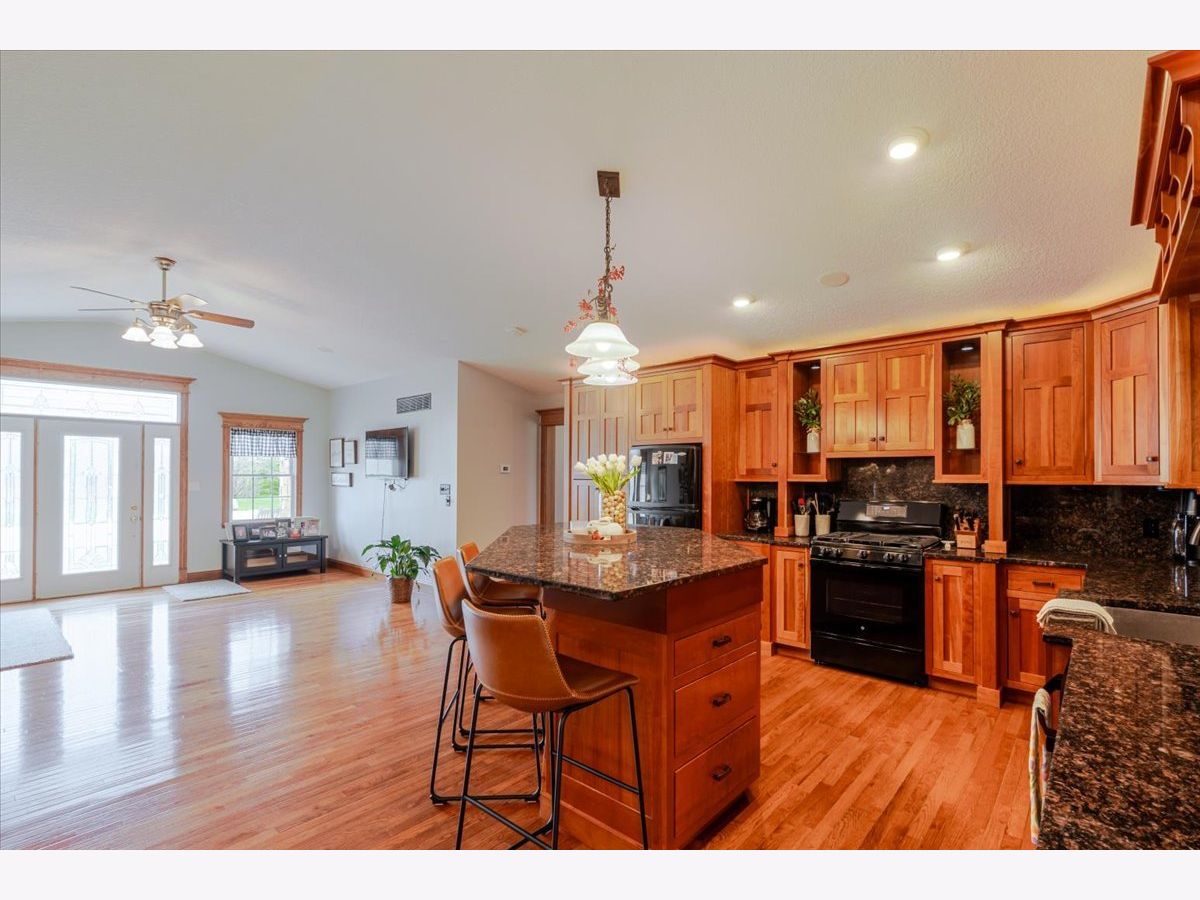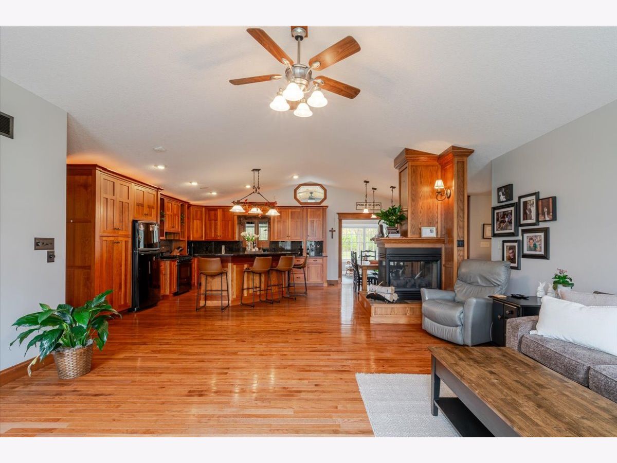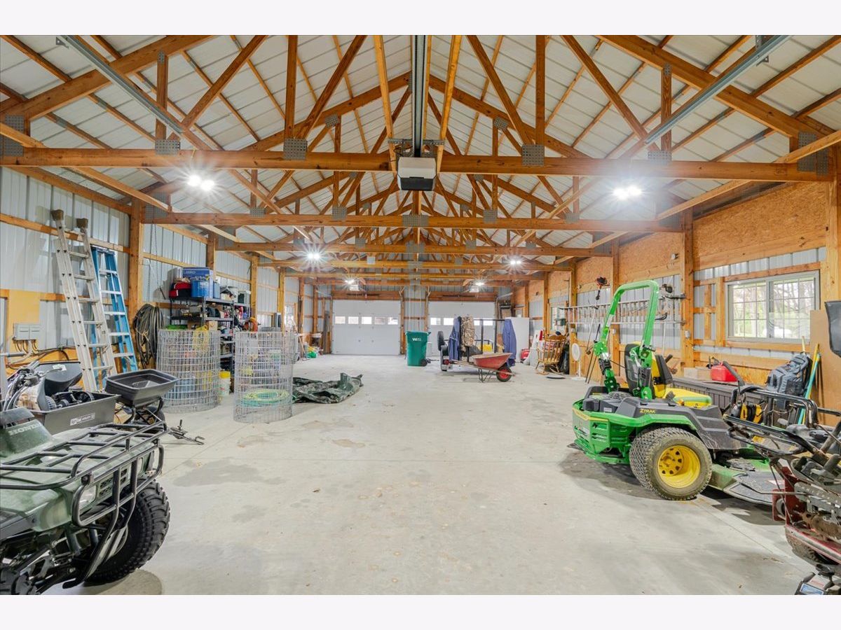 Enjoy the best of country living paired with everyday convenience! Nestled on 6.91 partially wooded acres, this retreat offers nearly 3,500 finished square feet of space inside and plenty of room to roam outdoors. The open-concept layout includes a well-appointed kitchen with a large raised island, pull-out prep station, gorgeous granite countertops, and custom cherry cabinetry. A striking three-sided fireplace adds warmth and charm to the main living area, while a second fireplace awaits in the expansive lower level. Off the kitchen, custom doors lead to a newly added, climate-controlled sunroom overlooking the inground pool, with an electric awning for extra comfort. The main floor hosts three bedrooms, including a generous primary suite with double vanities, a soaking tub, separate shower, and a custom walk-in closet. The lower level is designed for flexibility, featuring a second kitchen, a full bath, and an additional bedroom-perfect for guests or extended stays. A whole-house generator, heated basement floors, and a playhouse/cabin add even more comfort and charm. Outside, a 60' x 30' (approx.) building offers three doors, concrete flooring, and a covered patio along the entire west side. The roof was replaced in 2022, HVAC updated in 2023, and newly planted trees enhance the front landscape. This property truly is a one-of-a-kind retreat!