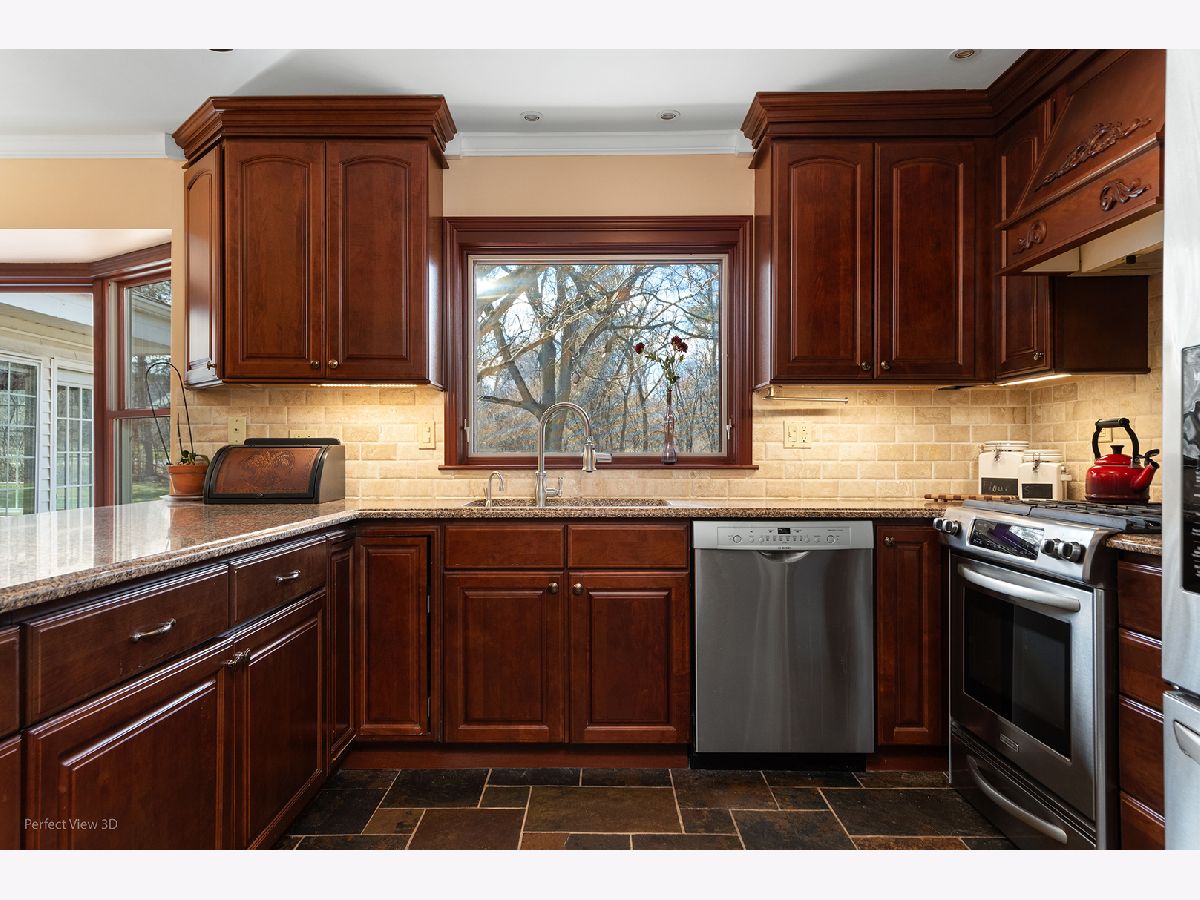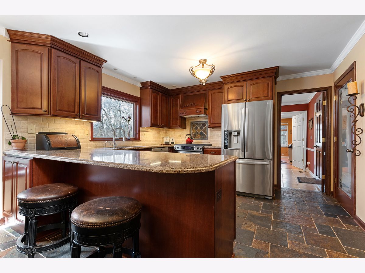 Quality, craftsmanship and thoughtful updates define this custom Wayne residence set on over an acre in a quiet, picturesque setting. Long-time ownership shows in the care and investment throughout the home and property. The renovated kitchen features custom wood cabinetry, stone flooring, high-end appliances including double KitchenAid ovens, Bosch dishwasher, and upgraded lighting-designed for both everyday living and entertaining. Adjacent laundry and boot room offer convenience with newer LG washer/dryer and utility sink. Multiple living spaces include a refinished great room with rich wood flooring and a stunning Tudor-style four-season/summer room addition with heating and A/C-ideal for year-round enjoyment. Additional main level office/study provides flexible work or guest space. Upstairs, the primary suite has been updated, with remodeled baths and refreshed bedrooms featuring wood flooring and custom details. Jack-and-Jill bath serves secondary bedrooms. Major mechanicals and infrastructure have been addressed: high-end dual HVAC systems, updated well pumps, water system improvements, septic maintenance, and basement water-prevention system. Windows (Pella), roof updates, and garage doors have all been replaced. Exterior improvements include new driveway, mature trees, outdoor gas line for grilling, shed, whole-house generator, and advanced security system with cameras, smart locks, and fiber-optic internet. Located in the highly desirable Wayne community-known for its natural beauty, estate-style properties, equestrian culture, and easy access to St. Charles, Geneva, shopping, dining, and major roadways.