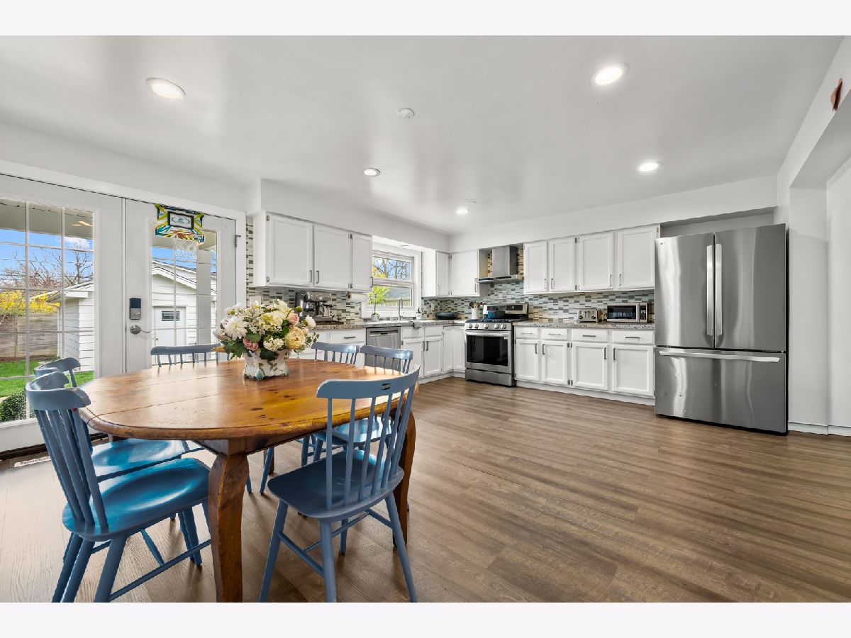 Set near the end of a cul-de-sac beside South Park, this move-in ready home pairs a quiet setting with immediate access to one of the area's best outdoor amenities, including tennis, pickleball, basketball, and bocce ball courts, ball fields, a walking path, play areas, and the bike path. The home features a classic brick exterior and a welcoming front stoop. Major updates include newer kitchen, baths, windows and roof (2020), providing peace of mind for years to come. Inside, the living room is warm and inviting, anchored by a wood-burning fireplace. The kitchen has been thoughtfully updated with white cabinetry, granite countertops, stainless steel appliances, and a generous dining area, with direct access to the backyard and patio for indoor-outdoor living. Two bedrooms, an updated full bathroom and a flexible den or nursery complete the first floor. The finished basement expands the living space significantly, offering a family room or potential third bedroom, a renovated full bath with a soaking tub, laundry area, and stair access to the exterior. Throughout the home, you'll find LED lighting and durable vinyl flooring for a clean, modern feel. Outside, the large fenced backyard includes an oversized shed and paver patio. With 1,893 square feet of total living space (including the finished basement), this home presents an excellent opportunity for buyers seeking a manageable one-story layout or a compelling condo alternative.