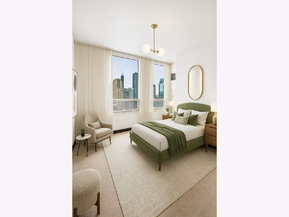 Welcome to your urban oasis in the heart of River North! This bright and airy 2 bed, 2 bath southwest facing corner condo delivers everything downtown living should be-space, style, and sweeping skyline views. Massive windows flood the home with natural light while showcasing unobstructed city views. Step inside to a generous living and dining area with hardwood floors throughout-perfect for relaxing or entertaining. The galley kitchen offers ample cabinet and counter space and stainless steel appliances-- everything the at-home chef needs! The spacious primary suite features more stunning windows and a private ensuite bath-your personal retreat above the city. The second bedroom is ideal for guests or a dedicated home office, and yes-there's in-unit laundry for everyday convenience. Enjoy full-service amenities that blend condo comfort with boutique hotel living: a rooftop deck and pool with panoramic views, 24-hour door staff, fitness center, and more. Unbeatable location-just steps to public transit, Chicago's best dining, shopping along the Magnificent Mile, and endless nightlife. Includes one parking space, with additional spaces available for purchase from other owners in the building. Live the River North lifestyle you've been dreaming of-modern, vibrant, and connected.