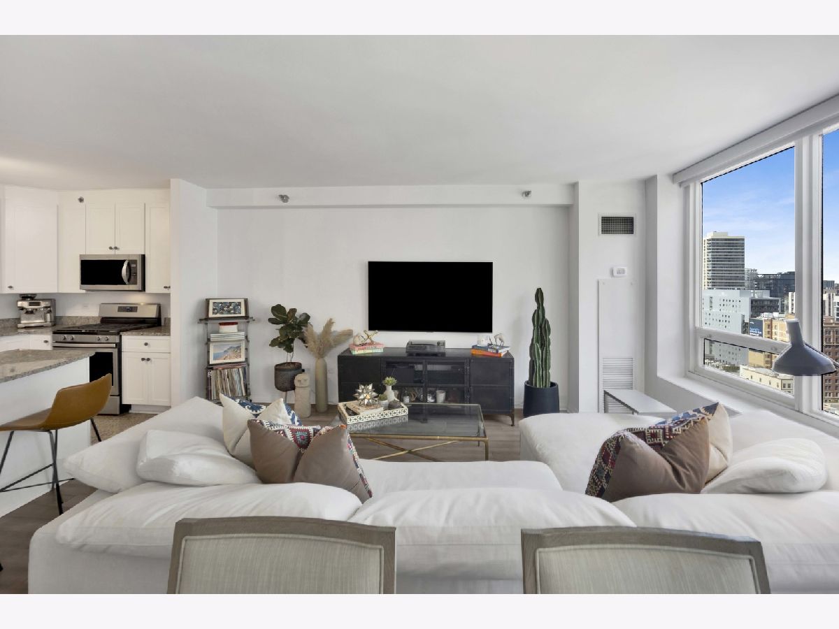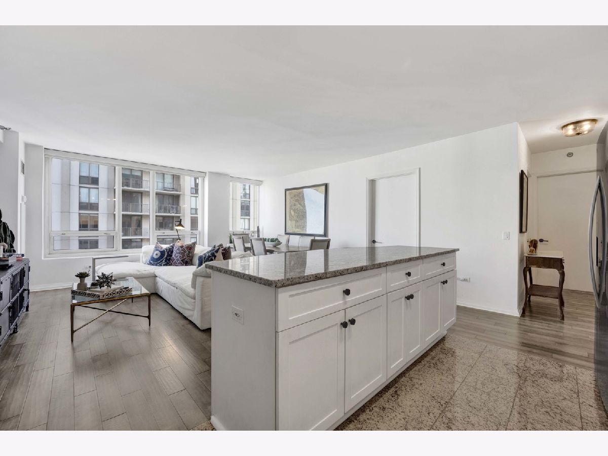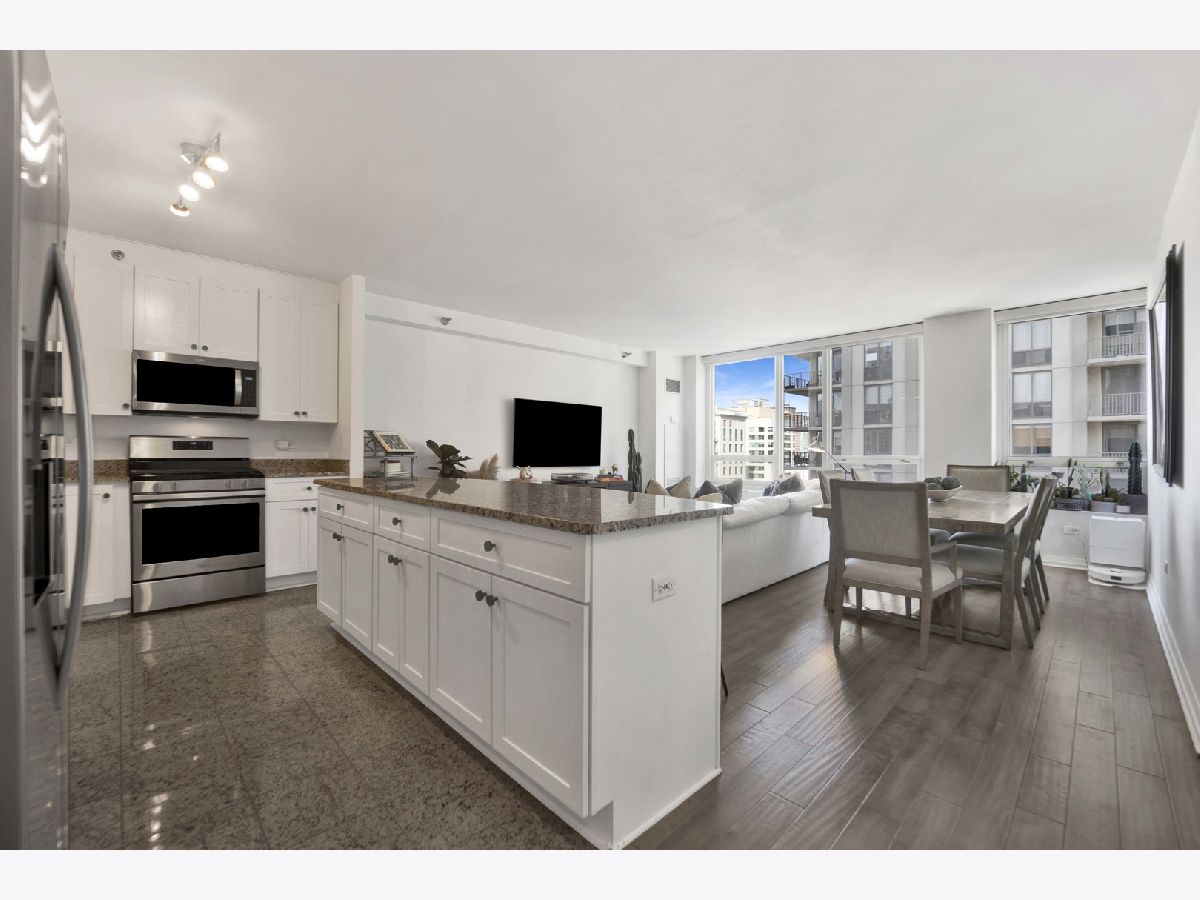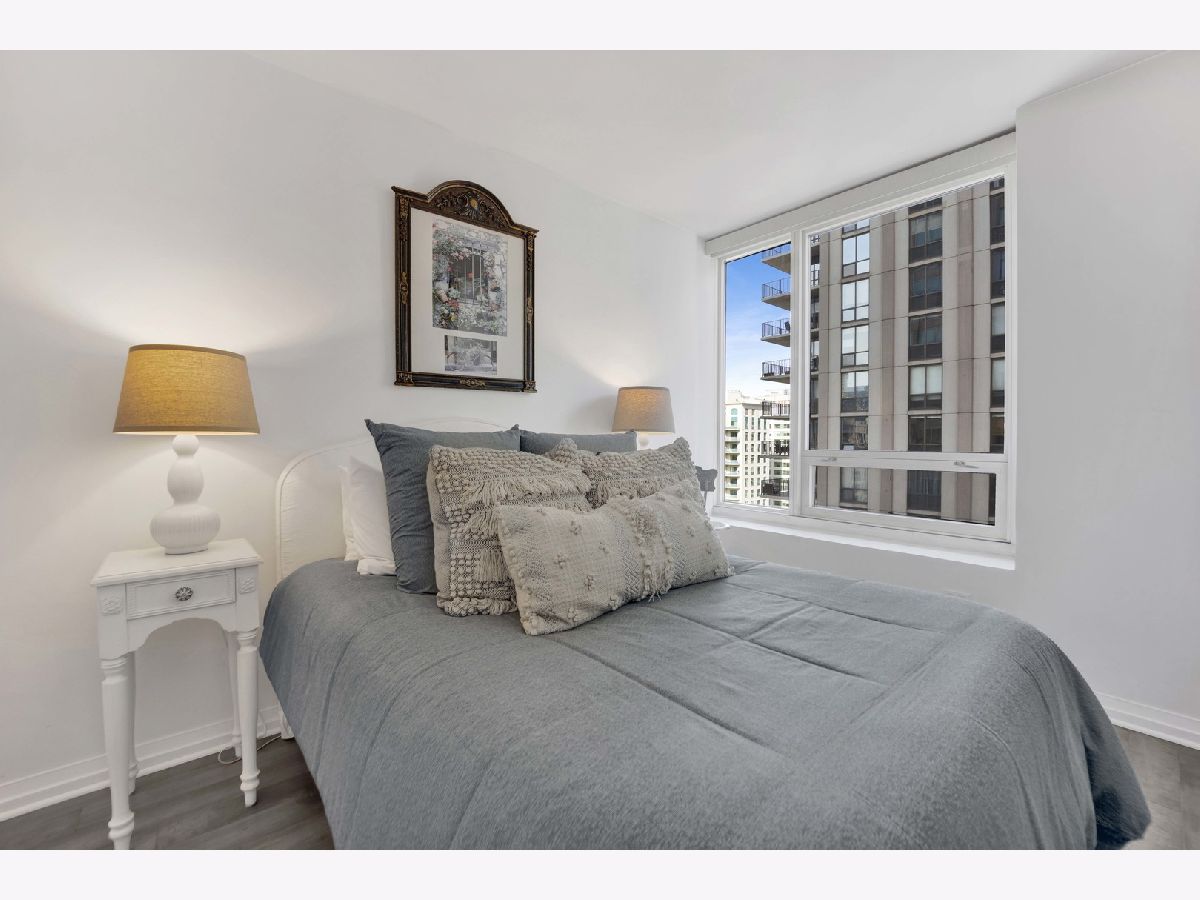 Welcome to this beautifully renovated 2-bedroom, 2-bath residence in one of River North's premier full-service high-rises. Designed for modern living, this spacious home features an open floor plan with exceptional flow and stylish, high-end finishes throughout. The sleek white kitchen is a chef's dream, featuring stainless steel appliances, custom lighting, and an oversized island that offers extra seating and prep space-perfect for entertaining. Updated flooring runs throughout the entire unit, complemented by Hunter Douglas automatic custom window treatments for added comfort, privacy, and style.The oversized primary suite is a true retreat, offering expansive his-and-hers professionally organized closets and a spa-inspired en-suite bath with dual vanity, soaking tub, and elegant marble tile. The spacious second bedroom is perfect for guests or a home office, and the updated guest bath features modern finishes.This home also includes in-unit washer/dryer, generous storage, and a storage locker. One parking spot available for an additional $25,000.Enjoy full access to premium building amenities: 24-hour door staff, package delivery to your door, fitness center, pool, sundeck, party room, conference room, and on-site dry cleaners.Located in the vibrant heart of River North, you're just steps from the Magnificent Mile, Nordstrom, Eataly, Whole Foods, Trader Joe's, and some of the city's best dining and shopping. With a Walk Score of 99 and easy access to the Loop, public transit, and expressways, this is true city living at its finest.