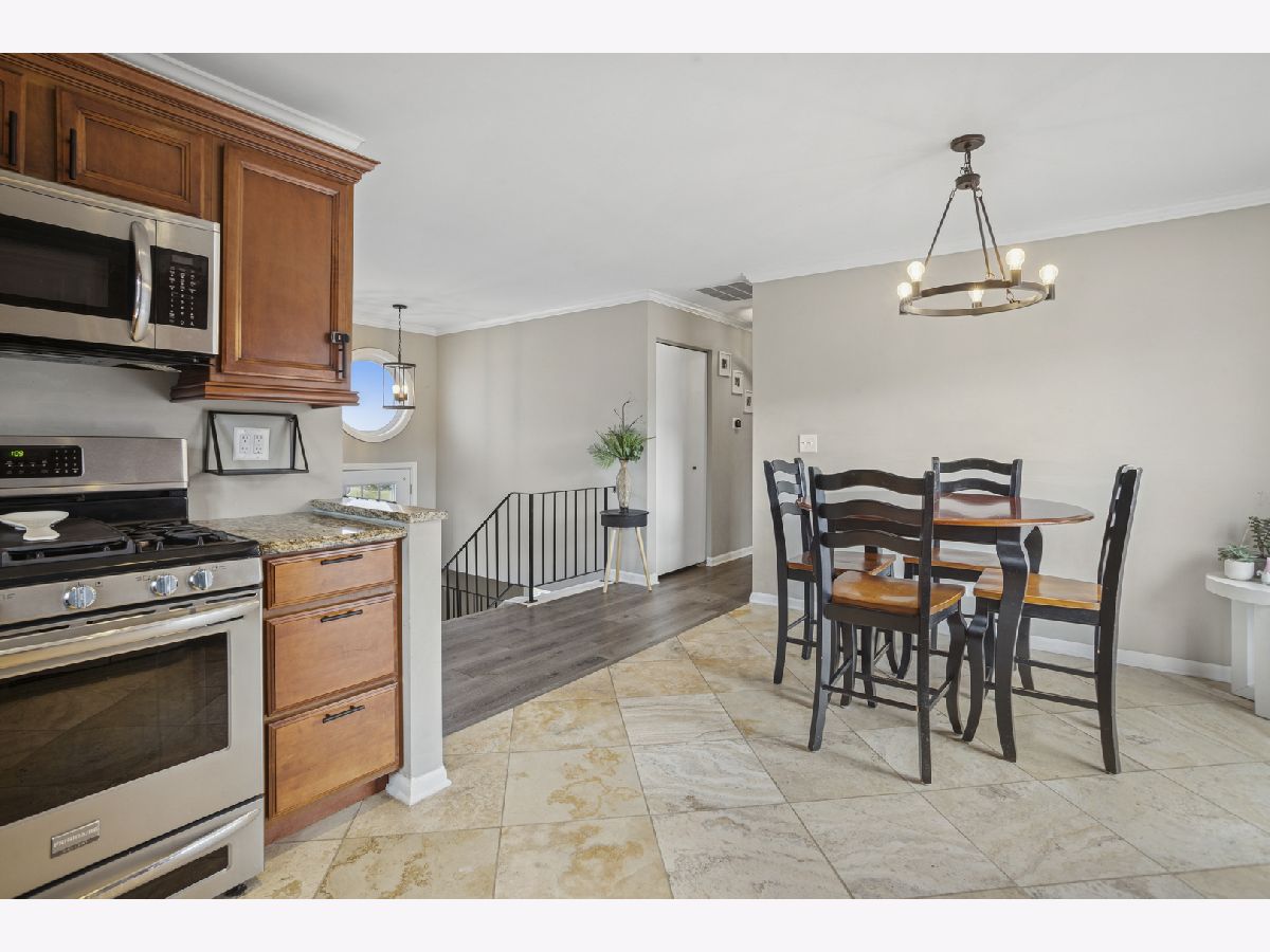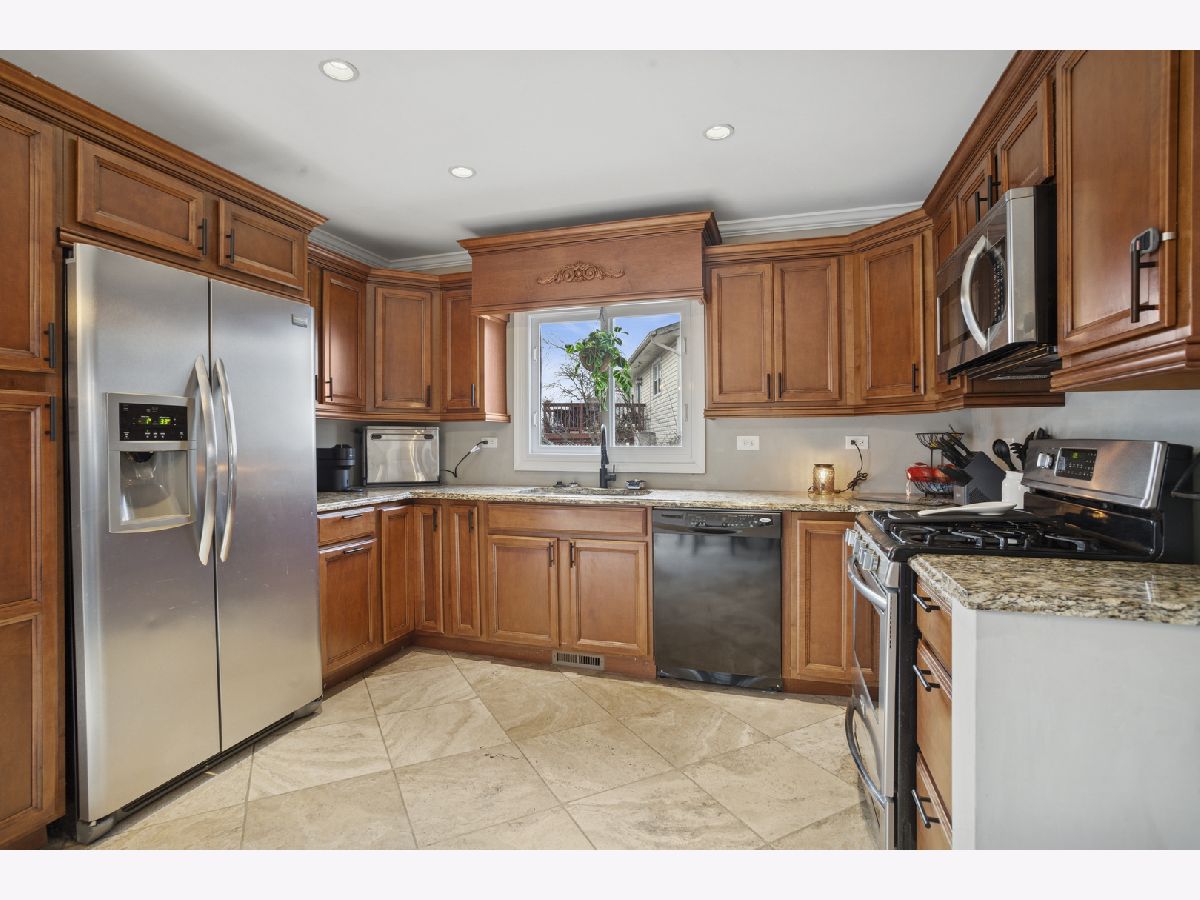 4-bedroom, 2 full bathroom raised ranch with a spacious layout. Upper level features laminate flooring and recessed lighting. Kitchen includes maple cabinetry, stainless steel appliances, granite countertops, and travertine tile flooring. Updated upper bathroom with Jacuzzi tub. Remodeled lower bathroom with a large shower. Finished lower level offers an oversized family room with recessed lighting and a 4th bedroom, plus a generous storage area. Newer maintenance-free Trex deck. Major updates include roof (13 yrs), siding (13 yrs), windows (10 yrs), and central air (5 yrs). Oversized 2.5-car detached garage with opener, long concrete driveway, and walking distance to grade school.