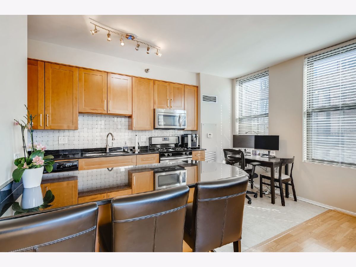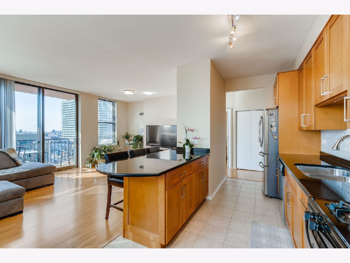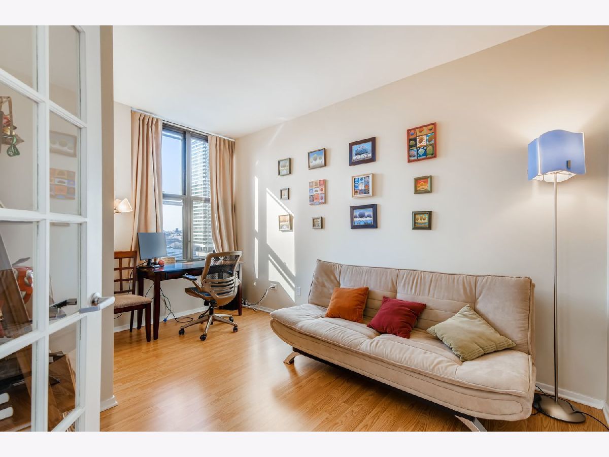 Rarely available and bathed in natural light, this stunning southwest corner home at Kinzie Station offers one of the building's most desirable layouts. French doors open to a versatile second bedroom-perfect for guests or a stylish home office. The open kitchen shines with 42" cabinetry, granite countertops, and rich hardwood floors. The spacious primary suite features an impressive 8'x6' walk-in california closet and double vanity, while the cozy fireplace, in-unit washer/dryer, custom window treatments, and oversized private balcony add comfort and charm. Enjoy full-service amenities including a fitness center, door staff, party room, bike room, storage, and cleaner. Deeded indoor garage parking and two storage units included. Unbeatable location near shopping, dining, the Riverwalk, and transportation. Assessments cover all utilities and cable. Recently fully rehabbed building-move in with confidence. You're just steps away from some of the finest restaurants and nightlife on Randolph Row and Fulton Market. Also nearby are children/dog parks, Mariano's, Jewel, Whole Foods and the East Bank Club. Transportation options abound, with buses, multiple train lines, the Metra, and the highway all conveniently accessible. Just 2 blocks away, the River Walk leads to the lake. You can enjoy bustling city life while still nestled in a private residential setting.