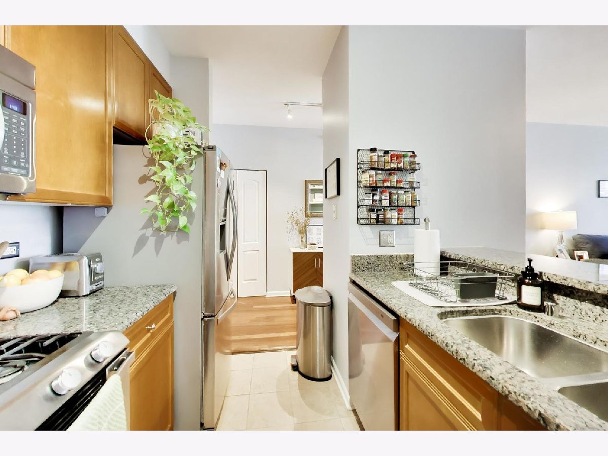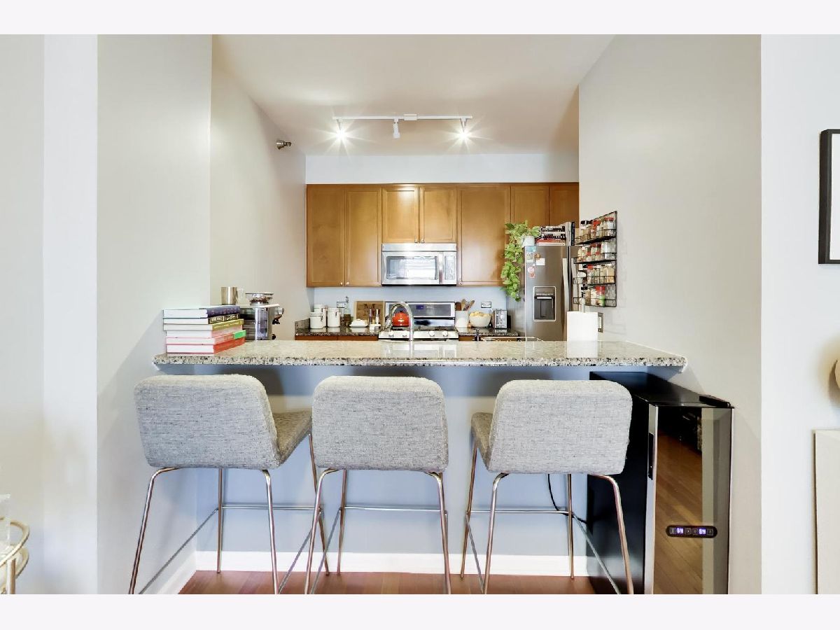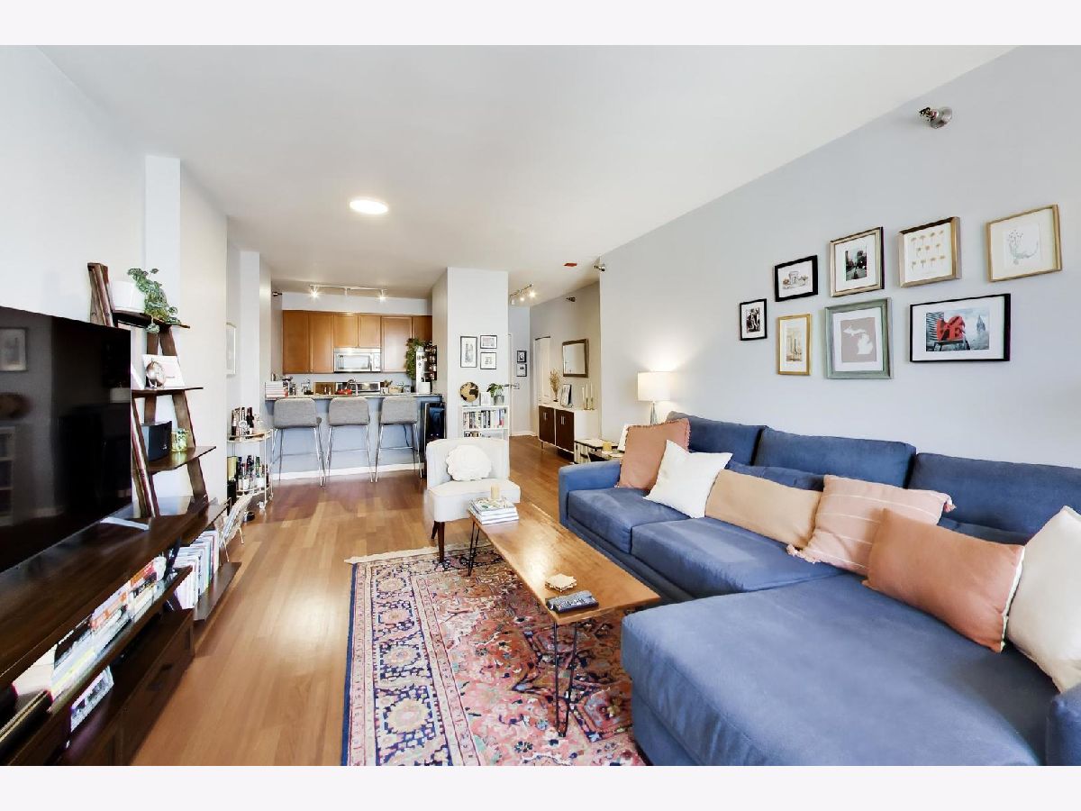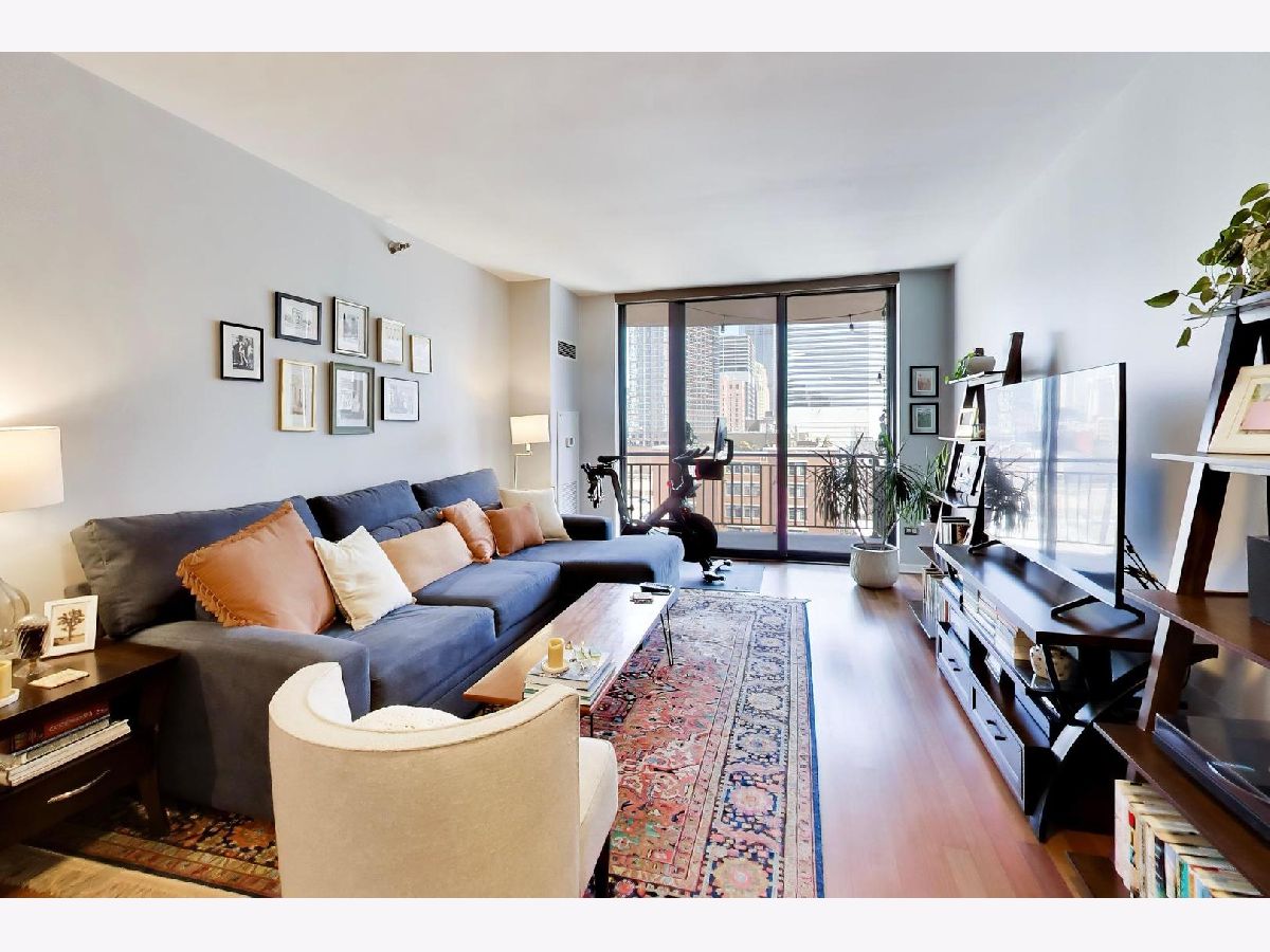 Bright & updated 1 Bedroom/1 Bath features a spacious living area that opens up to a large private balcony with east facing views. Bedroom offers 2 large organized closets. Bathroom has a linen closet and soaking tub. In-unit W/D. Full-Amenity Building. Assessment includes virtually everything except electricity: Parking, Heat/AC, Cable, High Speed Internet, Exercise Room, 24-HOUR door staff. Walk to everything on Randolph, Riverwalk, Parks, Whole Foods, Marianos, Starbucks, East Bank Club, SOHO House, METRA/CTA Blue, Green, Pink lines & Highways.