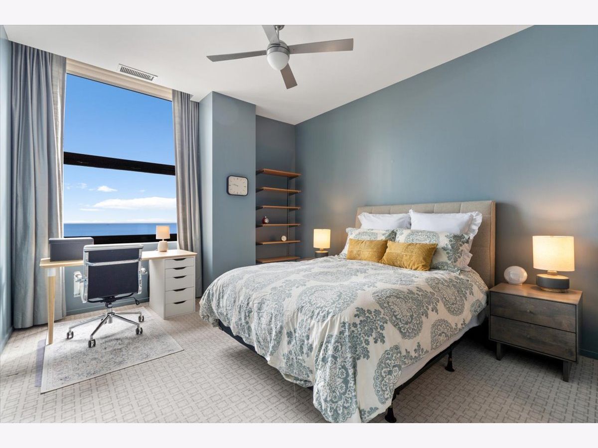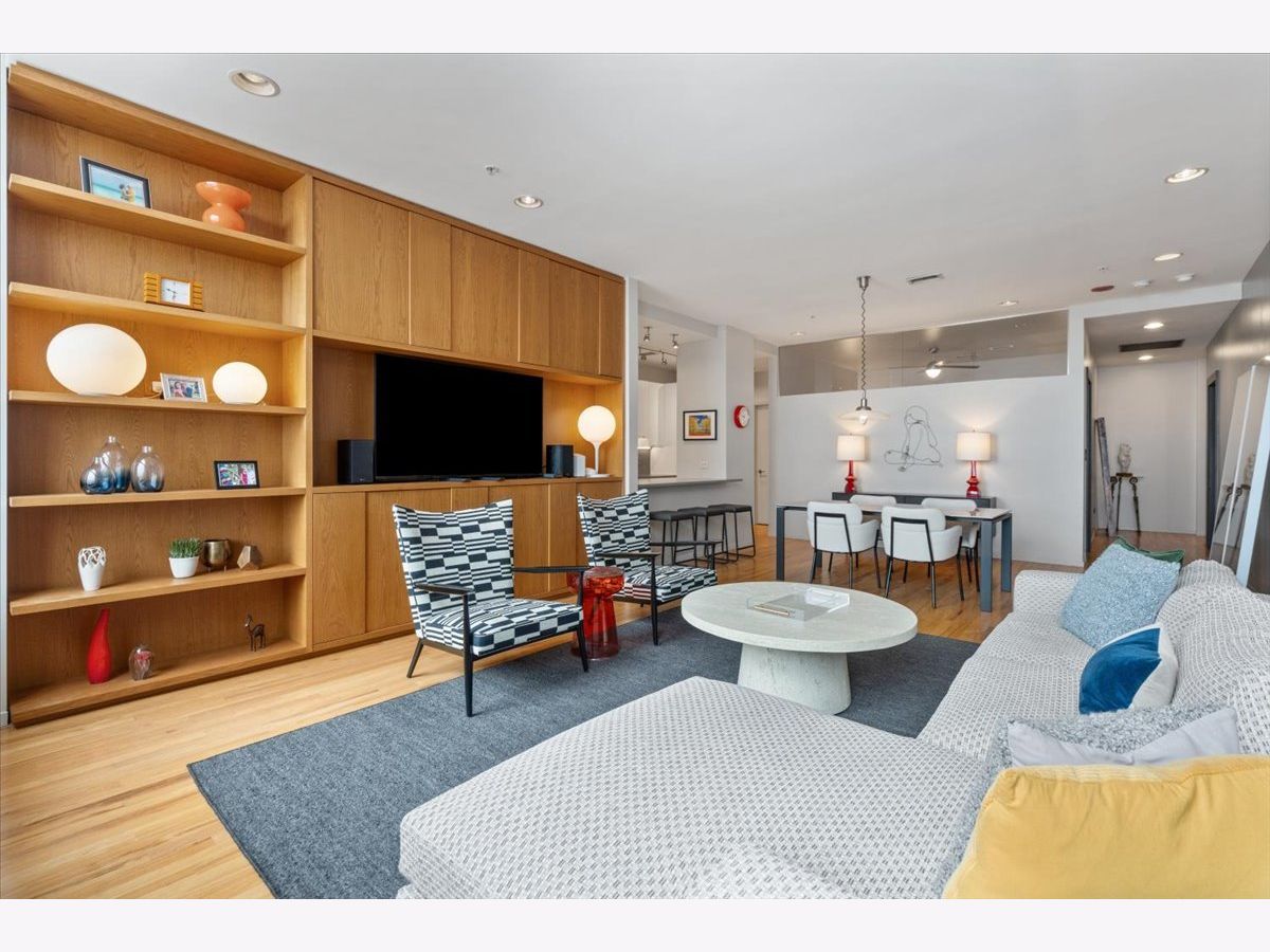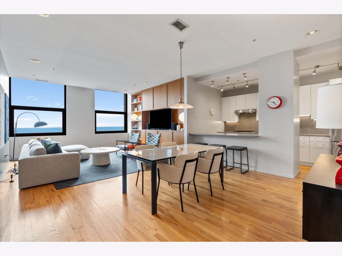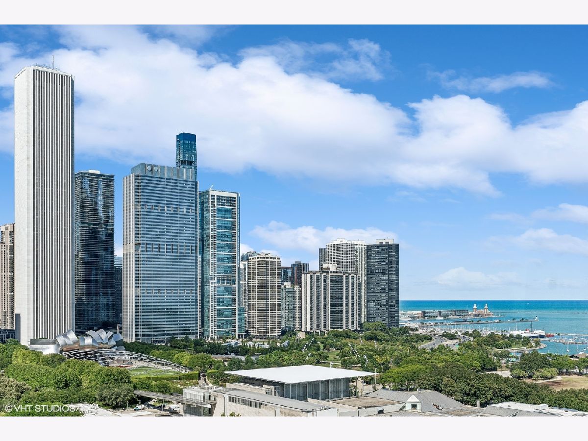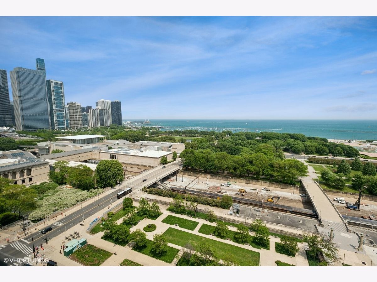 Experience refined city living in this exceptional 2-bedroom, 2-bath residence at 330 S Michigan Avenue. This home offers 1,450 square feet of thoughtfully designed interiors paired with truly unobstructed, postcard-worthy views of Lake Michigan, Buckingham Fountain, Millennium Park, Grant Park, Navy Pier, and the iconic Chicago skyline. The expansive, open-concept living and dining area is anchored by a striking custom walnut built-in, adding warmth, architectural interest, and abundant storage while framing the space beautifully. Designed for both entertaining and everyday living, the layout flows seamlessly into a sleek, modern kitchen featuring stone countertops, top-of-the-line stainless steel appliances, and an oversized breakfast bar perfect for casual dining or hosting guests. Hardwood flooring runs throughout the main living areas, enhancing the home's clean, contemporary aesthetic. The primary suite is a true retreat, complete with a spa-like en-suite bath offering a double vanity, expansive walk-in shower, an oversized walk-in closet, and additional storage-an exceptional find in the heart of the city. The second bedroom is generously sized and versatile, ideal for guests, a home office, or flex space, and is conveniently located directly across from the second full bathroom. Additional highlights include in-unit washer and dryer, a dedicated storage unit located on the 18th floor, and motorized shades throughout the home--complemented by a blackout shade in the primary bedroom for effortless comfort and privacy. Situated in Chicago's coveted Landmark District, this full-amenity building offers 24-hour door staff, on-site engineer, and a fitness room, all just steps from world-class museums, Symphony Center, public transportation, premier dining, shopping, and the lakefront. This is elevated urban living at its finest-where breathtaking views meet timeless sophistication.