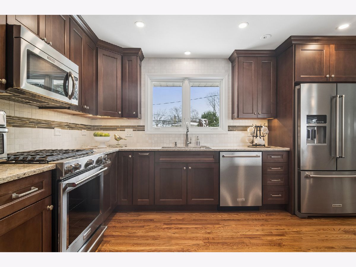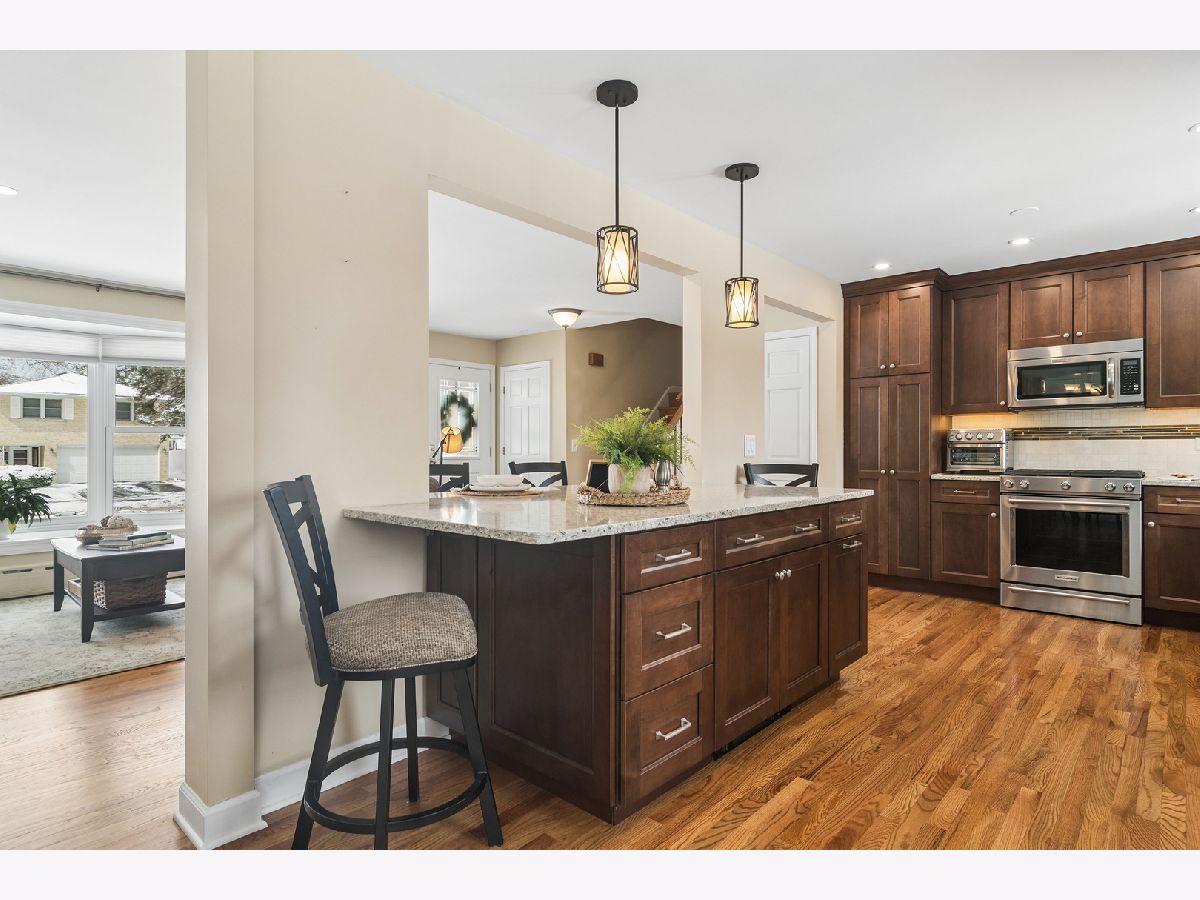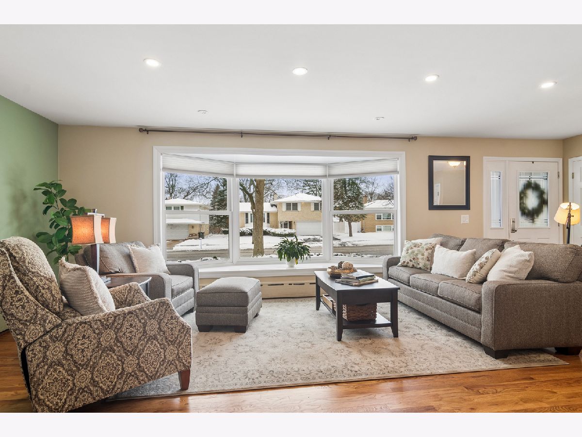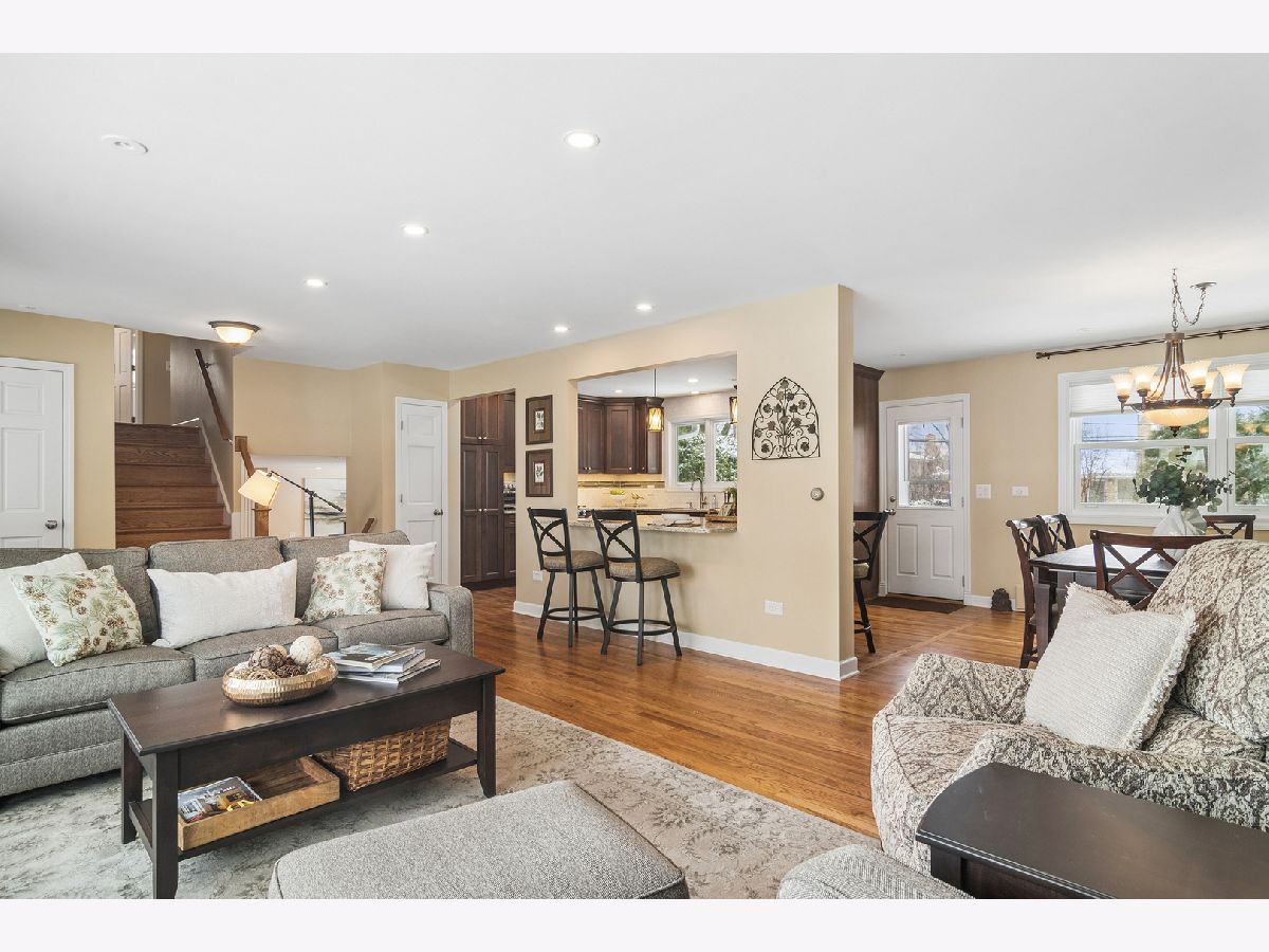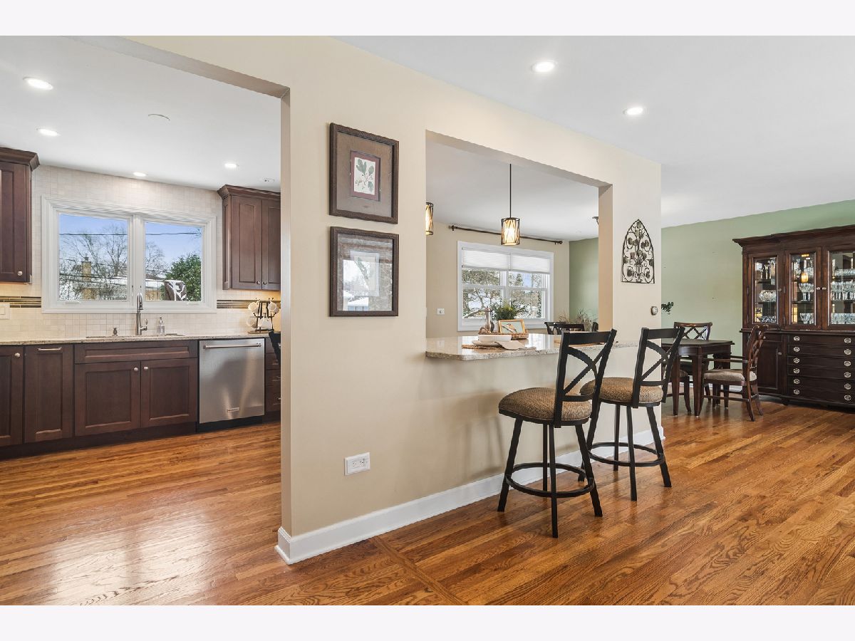 There is so much to love about this home, starting with the incredible location in the desirable Greenview Estates neighborhood. The main level was remodeled to open the flow and sight lines from the kitchen to the living and dining spaces. The kitchen is bright and beautiful. It has been remodeled and features rich wood cabinetry, stainless appliances, quartz countertops, recessed lighting, and hardwood floors. You'll want to entertain frequently to show it off...with ease of flow, space and functionality-the design includes valuable cabinet and counter space providing an opportunity for uncluttered living, multiple prep and serving areas, and interacting with guests perched on their stools at the conversation bar. A few steps down, you'll find a warm and welcoming family room, featuring a stone fireplace-the perfect backdrop to cozy nights or festive holiday celebrations. Large sliding doors provide wonderful views throughout the seasons and make it easy to extend your living outdoors onto the paver patio. The built-ins are adaptable for working at home, a kid's study or hobby station, and can easily transform into a party hub for all your drinks and snacks on game day or movie night. On this level, you'll find a convenient half bathroom and good size laundry room with additional cabinetry for storage. Upstairs you'll find 3 bedrooms including a primary bedroom suite with good sized, fully remodeled ensuite bathroom and walk-in closet. All the bedrooms feature hardwood flooring and ceiling fans. The partially finished basement has a main area, storage room, and separate room for home office, guests, exercise, or hobbies. There are truly so many flexible spaces that it makes it easy to find room for everyone, whether working from home or creating multiple play or tv zones. 2 blocks to Prospect High School and convenient to both downtown Arlington Heights and Mount Prospect plus all surrounding amenities-you have everything at your doorstep, making this the perfect opportunity to be part of the Arlington Heights community.