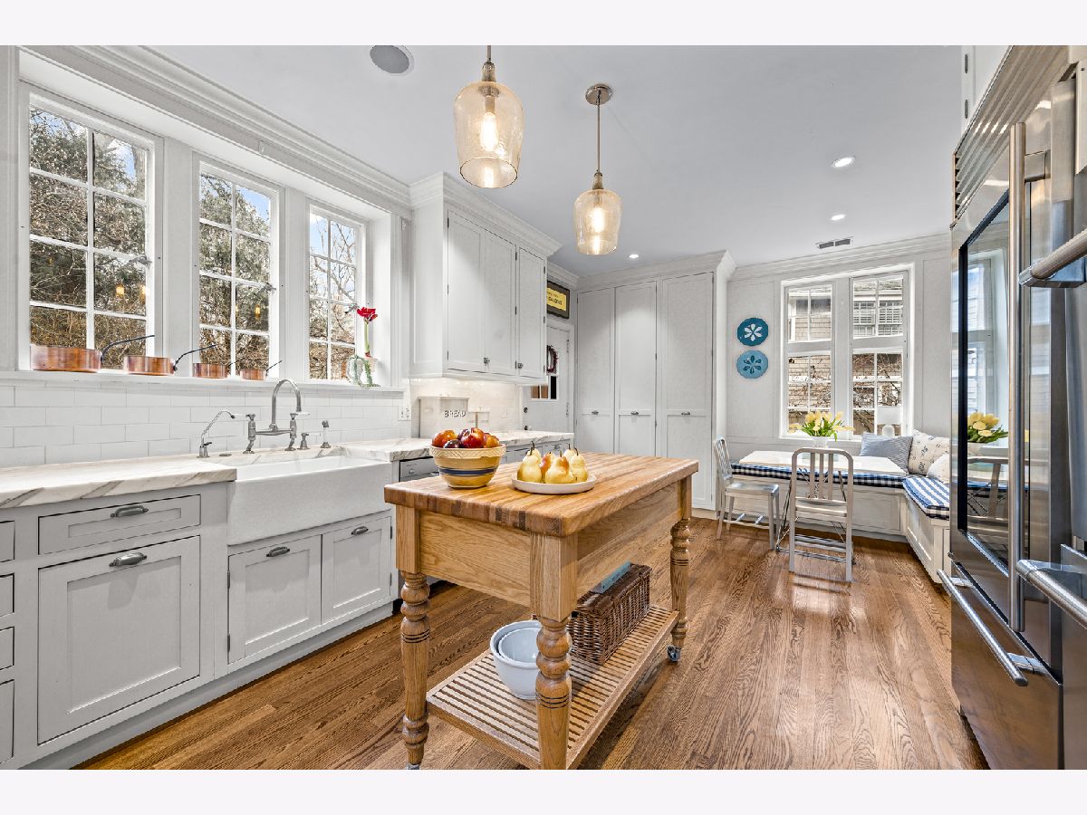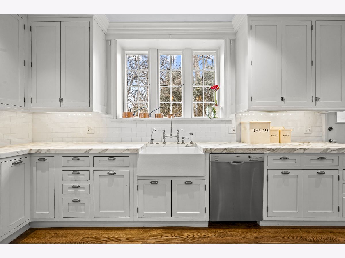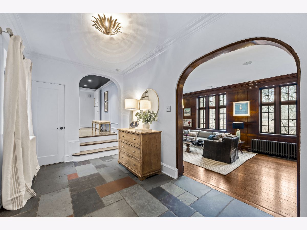 Set on a quiet, tree-lined street in east Lake Bluff, this landmark home is recognized and admired for its classic Tudor charm. Built in 1929, the brick-and-slate residence offers nearly 6,000 square feet of living space across three finished levels on a beautifully wooded 3/4-acre lot bordering a scenic ravine. The exterior conveys architectural presence and permanence. Inside, the home feels warm and personal, with well-proportioned rooms and a thoughtful layout that balances formal spaces with comfortable everyday living. The walnut-paneled great room anchors the main level, centered around a fireplace with an Indian limestone surround. Nearby, the formal dining room provides excellent scale and is ideal for holiday gatherings. The kitchen blends classic style with modern function, featuring marble countertops, stainless steel appliances, an eat-in area, and a butler's pantry. A family room with built-ins offers comfortable everyday space and leads to a first-floor office or sunroom is well suited for remote work, reading, or quiet mornings and overlooks the backyard and ravine. Upstairs, the spacious primary suite includes a newer bath and a large custom-designed closet room by Lynch Construction. Four additional bedrooms and three additional bathrooms complete the second level, including a Jack-and-Jill arrangement, a private en suite, and a hall bath, providing flexibility for family, guests, and long-term needs. The finished third floor adds valuable living space with a second family room, media room, guest bedroom, and full bath, providing an ideal retreat for teens, visitors, or extended stays. Outdoor living centers around a stone patio and firepit with wooded ravine views. The front and rear yards offer space to play and gather, while mature trees frame the property and provide privacy. Additional features include hardwood floors in most rooms, leaded glass windows, a two-car attached garage, and a lower level with a full bath, laundry, storage, and stair access to the side courtyard. Thoughtful updates throughout respect the home's original character. Located in one of Lake Bluff's most desirable neighborhoods, this home combines timeless Tudor architecture, generous living space, and a private yet convenient setting-an exceptional long-term opportunity in a highly sought-after location.
