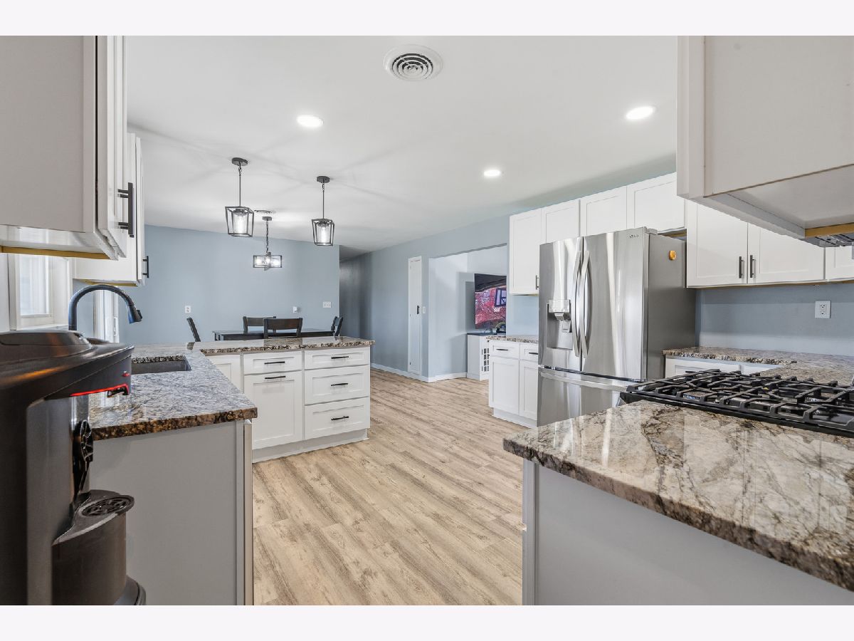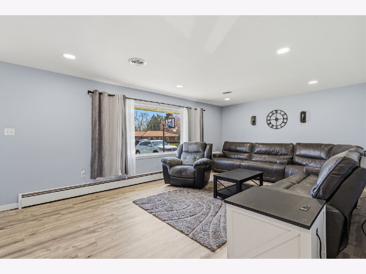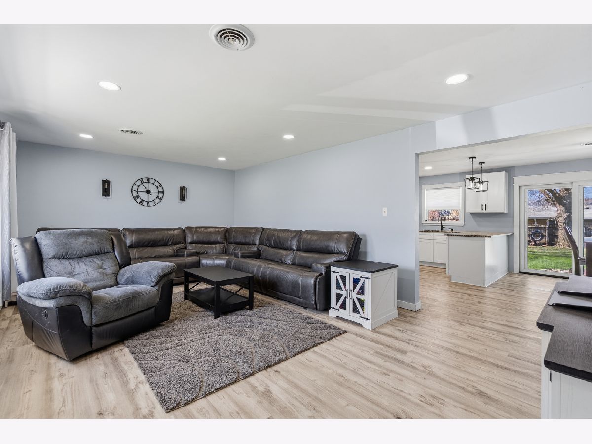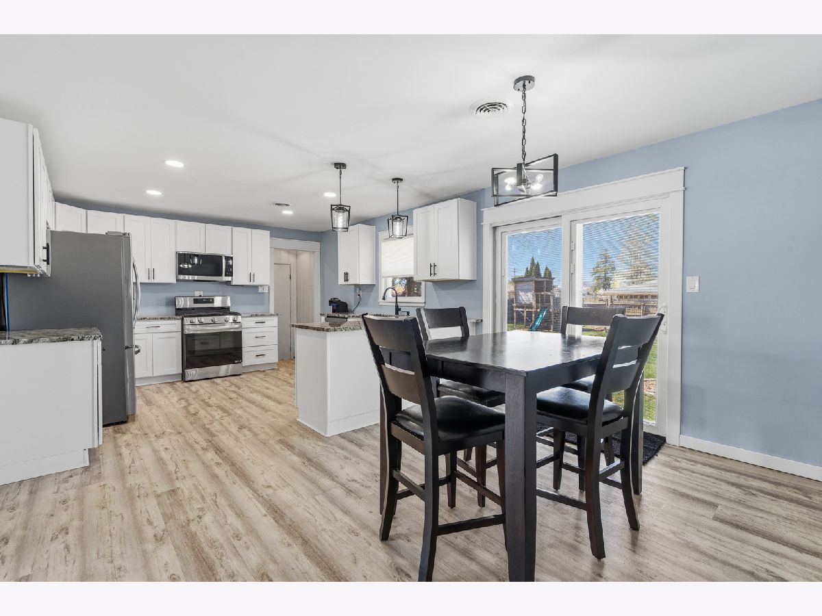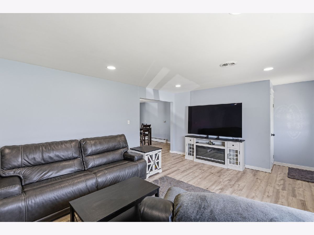 Welcome to this stunning, sprawling brick ranch that has been beautifully remodeled throughout and offers the perfect blend of style, comfort, and space. This amazing home features a spacious living room with luxury vinyl plank flooring and flows into a gorgeous one-year-old kitchen showcasing recessed lighting, 42-inch white cabinets, granite counters, stainless steel appliances, and a dining area with a new sliding glass door with built-in blinds that opens to the privacy-fenced yard with patio, fire pit, and 16' x 10' shed. The main level offers three spacious bedrooms, all with original gleaming hardwood floors, along with extensive decorative millwork throughout, while the lovely remodeled bath boasts a double gray vanity with quartz counters and a detailed subway tile design. The finished basement is perfect for entertaining with a custom bar, recreation room, game room with pool table that will stay, wall-mounted TV by the bar that will stay, media room with built-in bookcases, and a fourth bedroom. Additional highlights include an attached two-car garage with service door, newer windows less than two years old, and a roof approximately nine years old. Ideally located in unincorporated Joliet with highly desirable Plainfield schools, this move-in ready home offers space, updates, and a fantastic location.