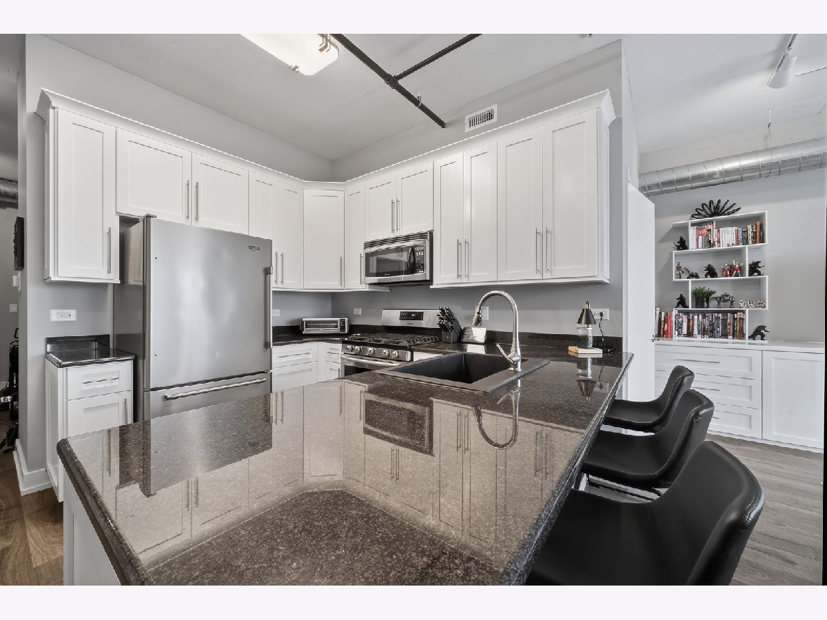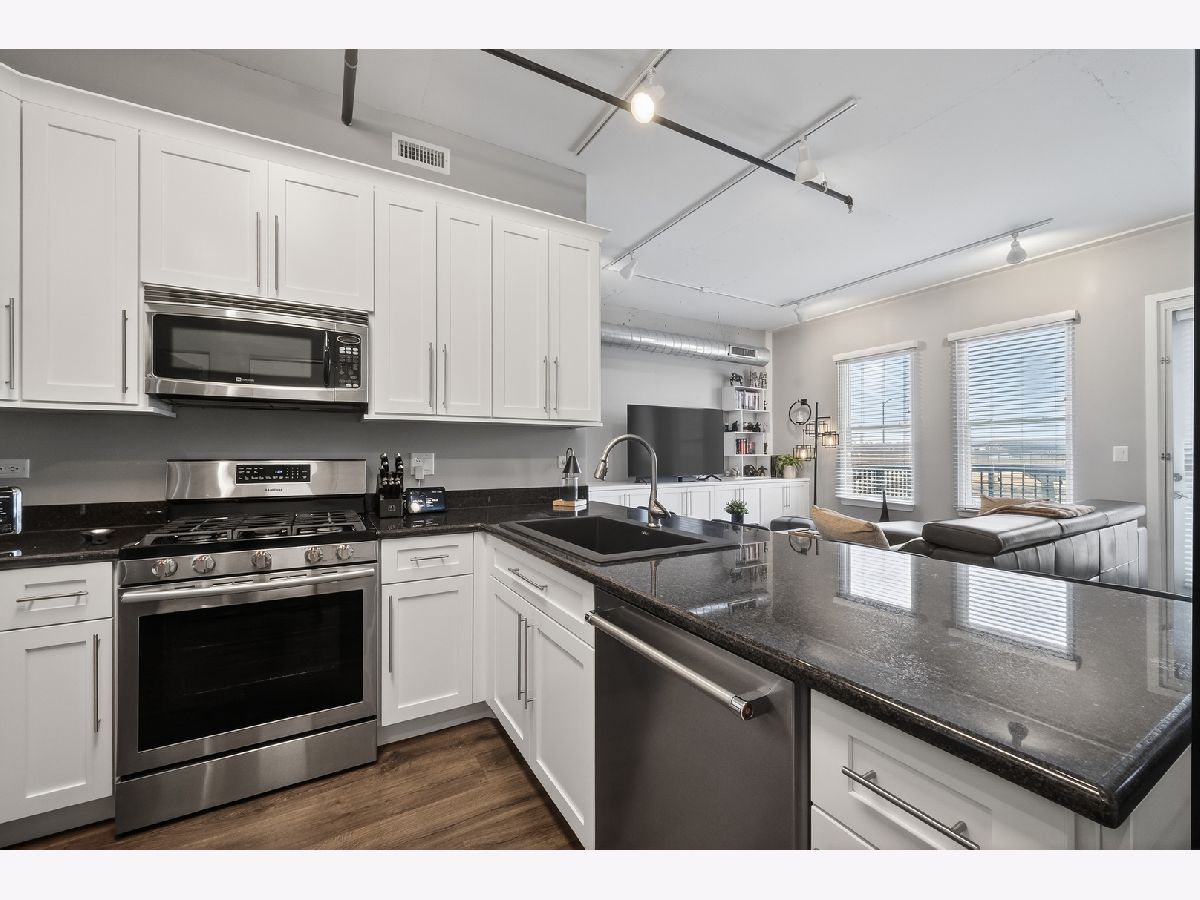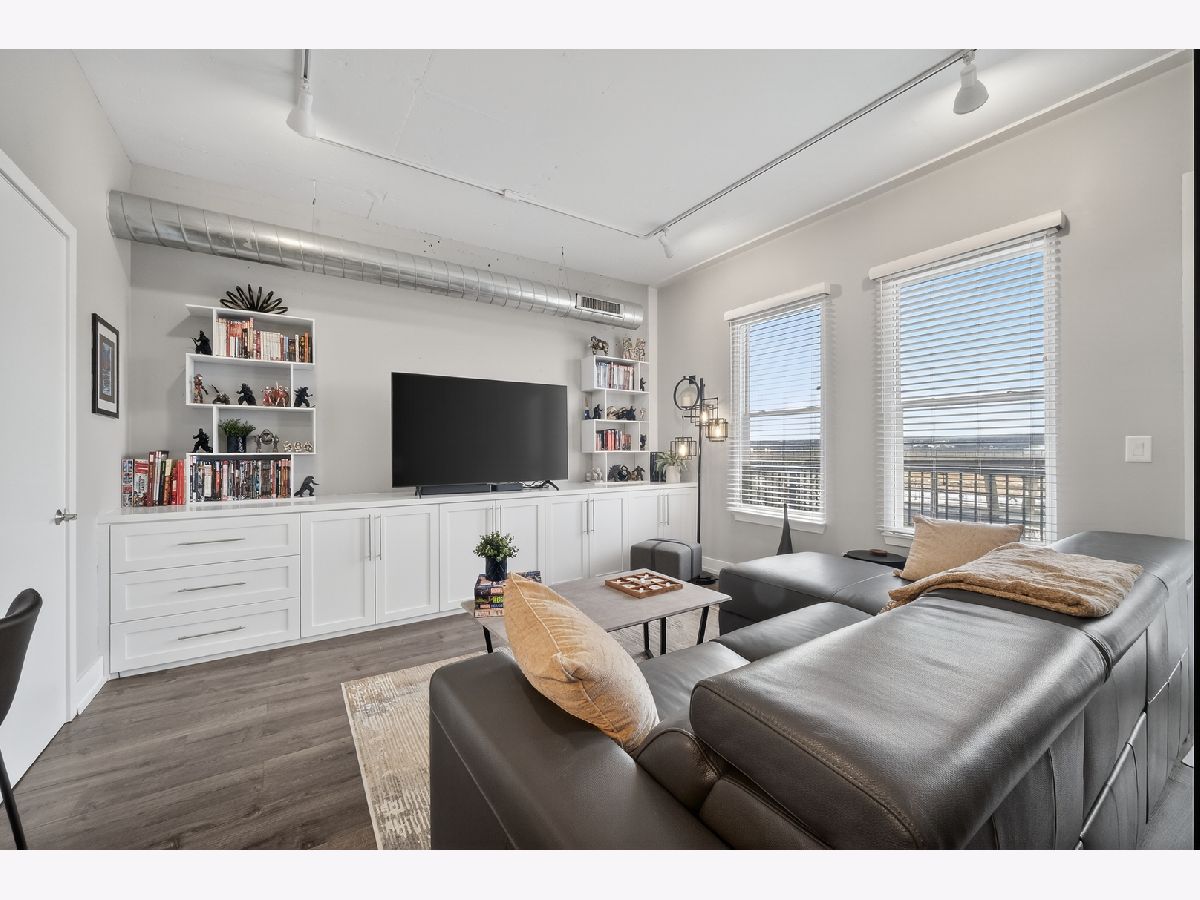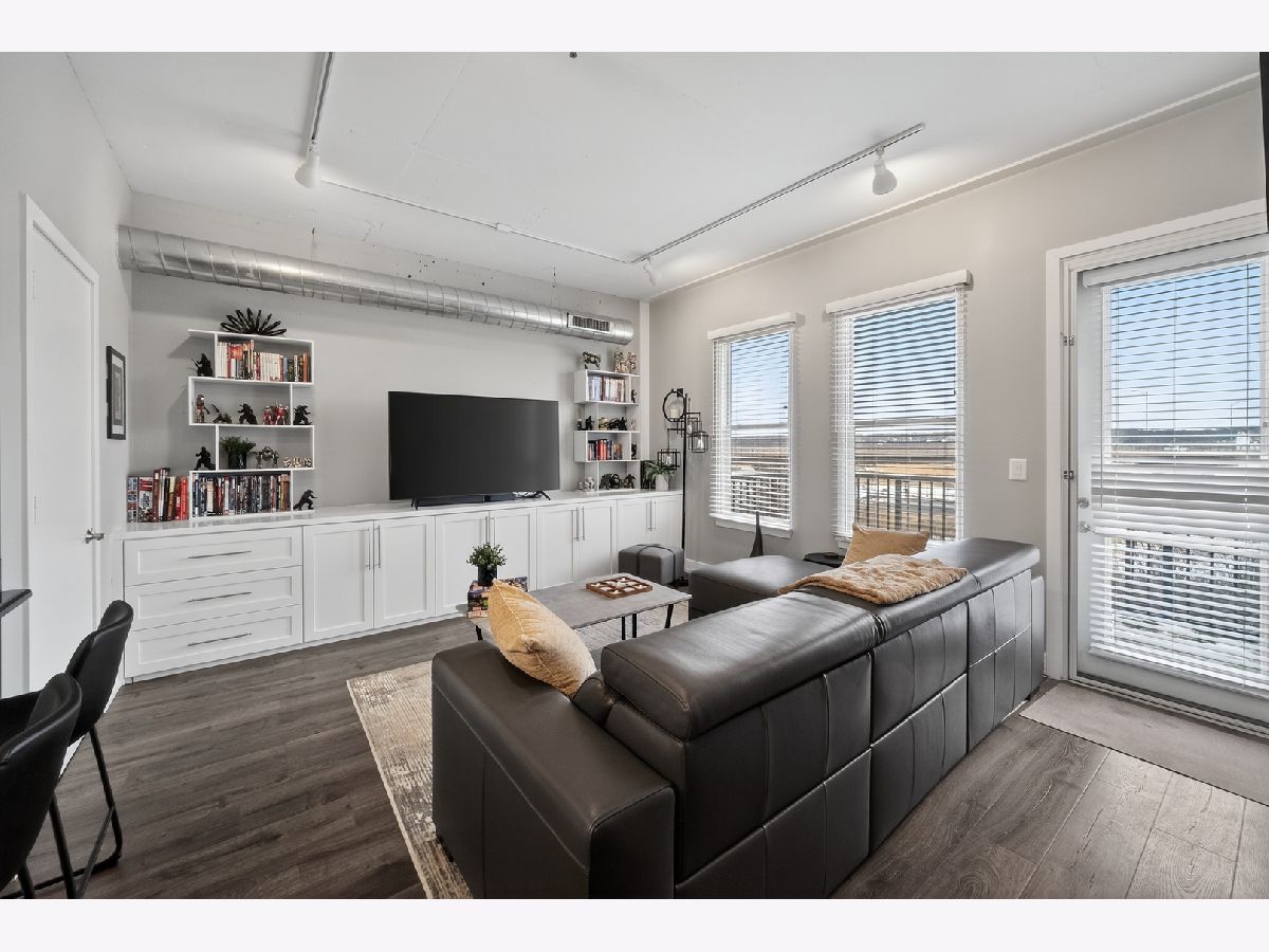 An exceptional downtown Lemont condo featuring a loft-style layout, quality finishes, and a meticulously maintained interior with an appealing industrial vibe. The open living space is highlighted by exposed concrete elements, beautiful wood-look laminate flooring, custom lighting, and built-in storage cabinets that provide both style and functionality. The kitchen showcases crisp white cabinetry, granite countertops, stainless steel appliances, and ample storage, perfect for everyday living and entertaining. The living area opens seamlessly to a private balcony, offering a comfortable space to relax or unwind. The bedroom is thoughtfully separated from the main living area, creating privacy and comfort. The updated bathroom features modern finishes and an oversized walk-in shower, offering a clean, contemporary look. Additional highlights include upgraded soundproof windows, in-unit laundry, and abundant closet space throughout. Ideally located just steps from downtown Lemont's shops and dining, within walking distance to the Metra, and minutes from major expressways. A truly move-in-ready opportunity in one of Lemont's most desirable buildings.