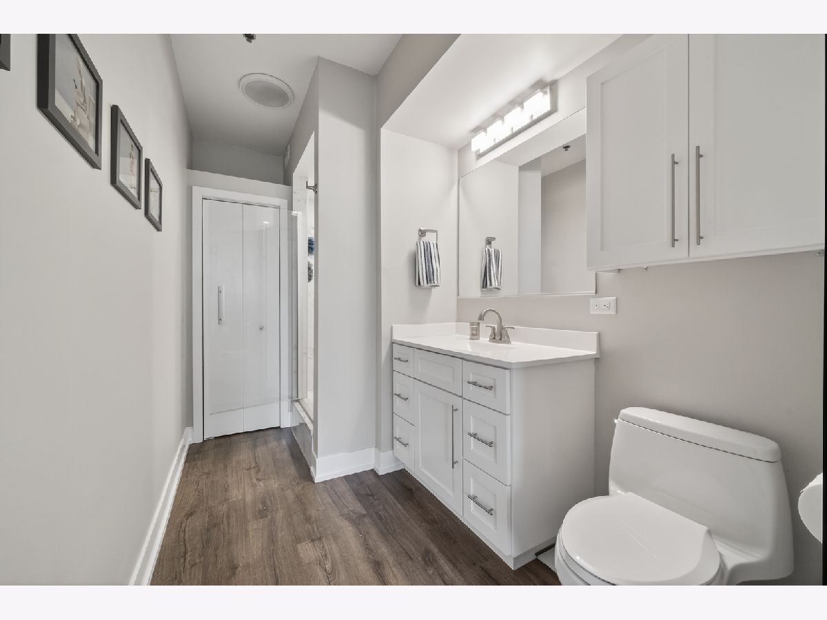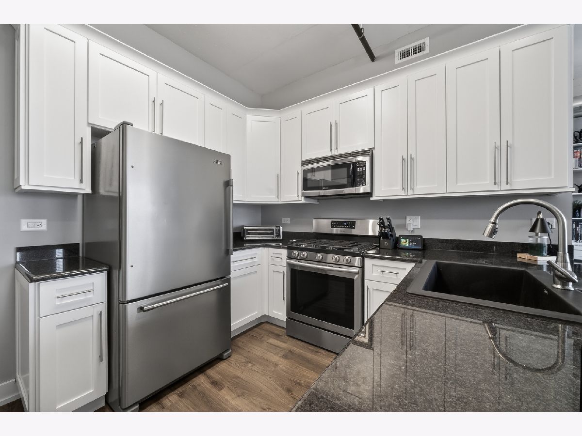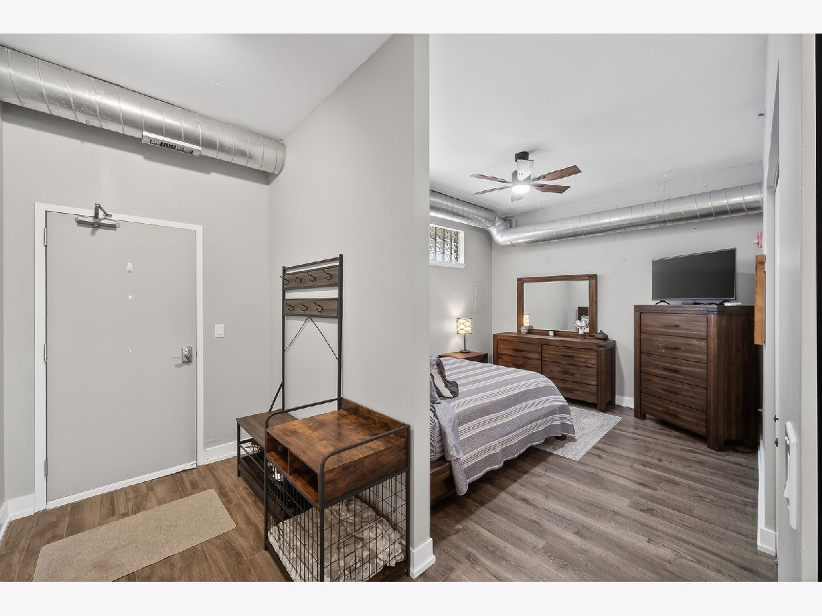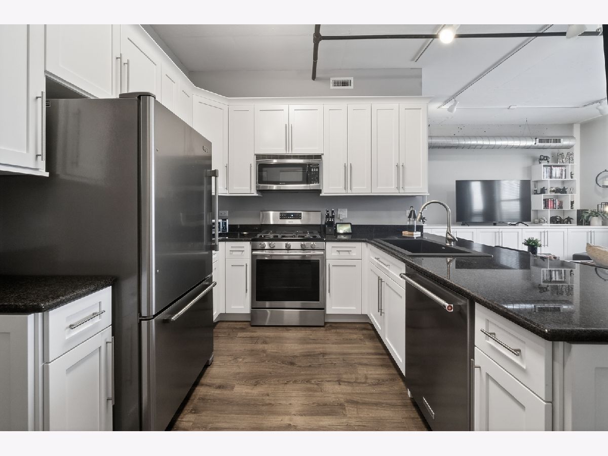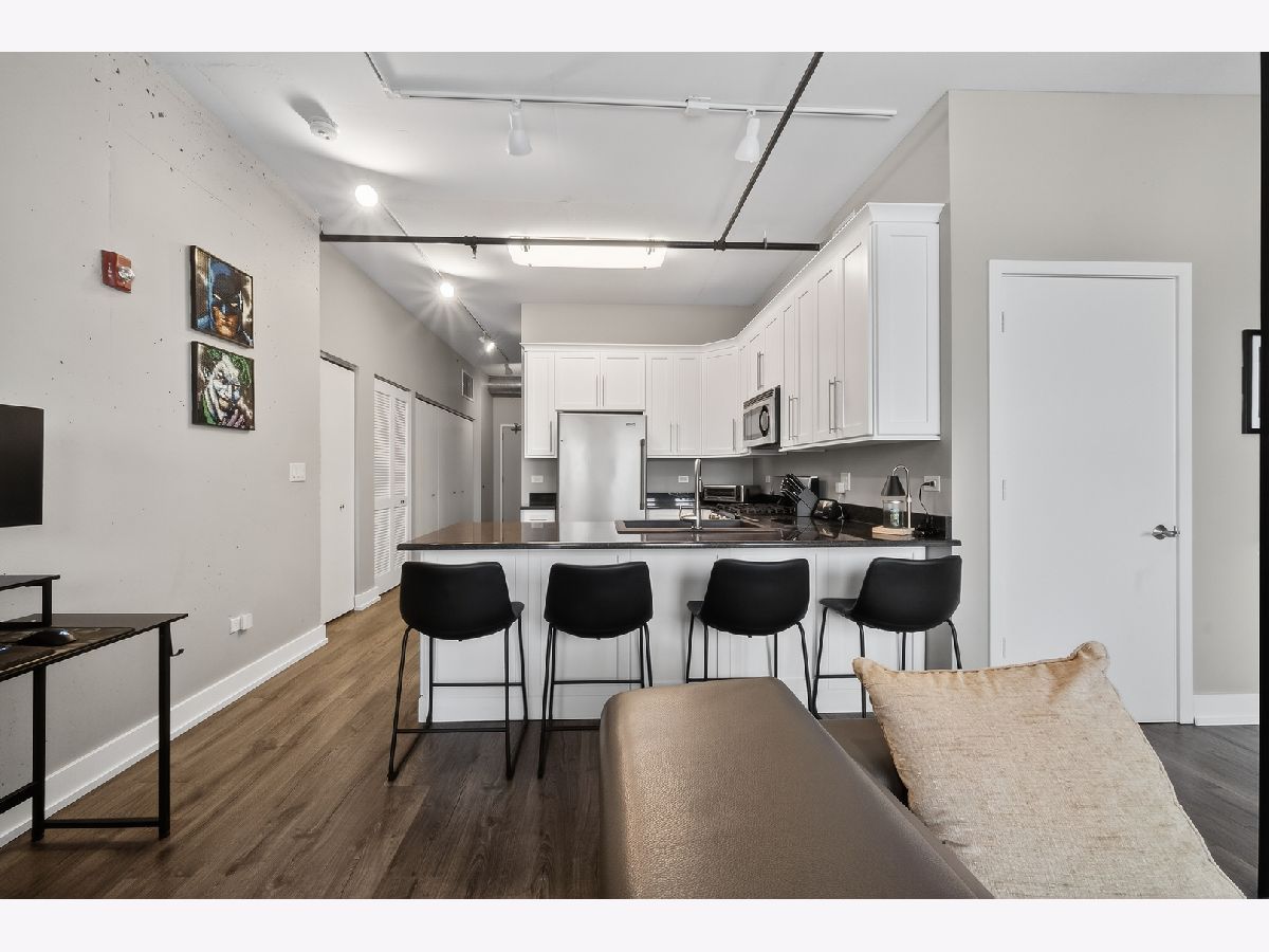 An exceptional downtown Lemont condo featuring a loft-style layout, quality finishes, and a meticulously maintained interior with an appealing industrial vibe. The open living space is highlighted by exposed concrete elements, beautiful wood-look laminate flooring, custom lighting, and built-in storage cabinets that provide both style and functionality. The kitchen showcases crisp white cabinetry, granite countertops, stainless steel appliances, and ample storage, perfect for everyday living and entertaining. The living area opens seamlessly to a private balcony, offering a comfortable space to relax or unwind. The bedroom is thoughtfully separated from the main living area, creating privacy and comfort. The updated bathroom features modern finishes and an oversized walk-in shower, offering a clean, contemporary look. Additional highlights include upgraded soundproof windows, in-unit laundry, and abundant closet space throughout. Ideally located just steps from downtown Lemont's shops and dining, within walking distance to the Metra, and minutes from major expressways. A truly move-in-ready opportunity in one of Lemont's most desirable buildings.
