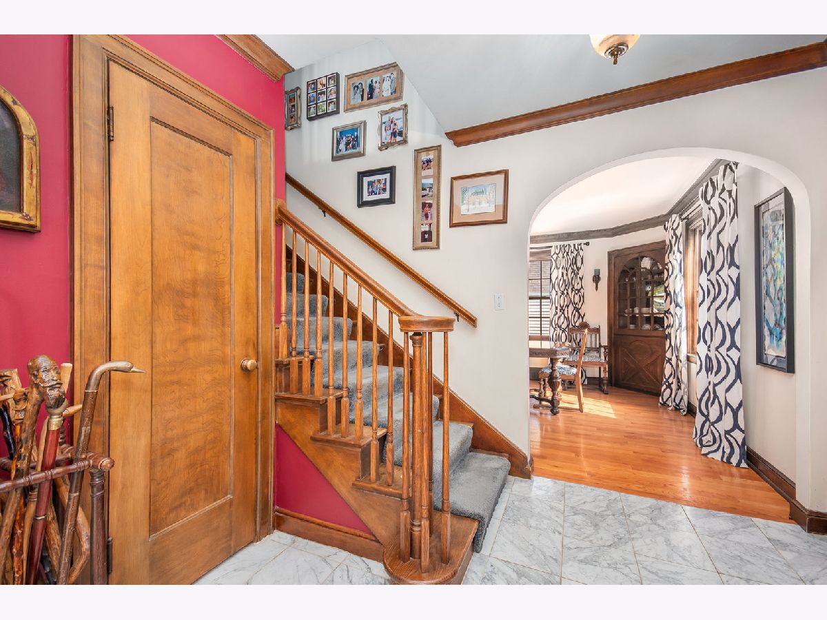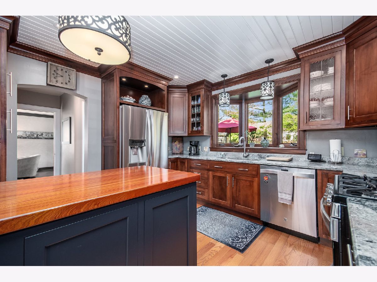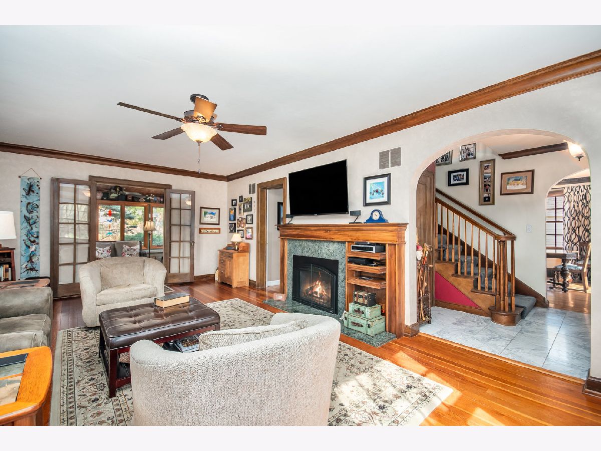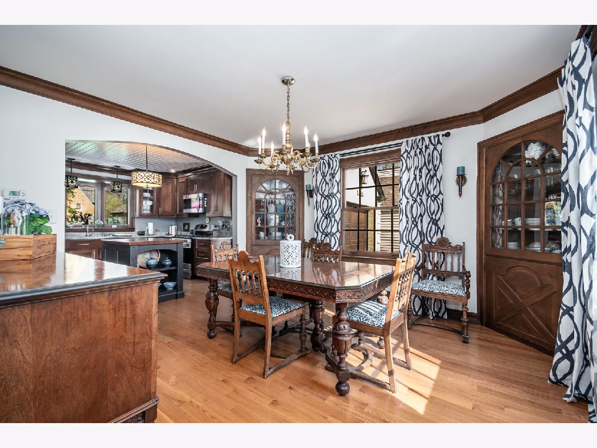 Rare, all brick French Style Georgian home; absolutely stunning! Experience timeless French Eclectic design in this beautifully cared-for residence nestled in one of Elgin's most scenic west side neighborhoods. From the moment you arrive, the professionally landscaped grounds and charming breezeway/mudroom-linking the garage to the home-set a welcoming tone. The thoughtfully renovated kitchen is a standout feature, showcasing Amish-crafted custom solid wood cabinetry with generous storage space (pantry with pull-out shelving) blended with granite countertops with undermount sink, Kenmore Elite stainless steel appliances, and striking sapele mahogany island top. The formal dining room exudes classic elegance with crown molding and original built-ins, and includes an antique three-leaf dining table and buffet that will remain with the property. Large inviting living room features a gas fireplace framed by built-ins and flows seamlessly into a three-season enclosed sun porch which steps down to a patio-ideal for entertaining or relaxing while overlooking the beautifully landscaped backyard. Second floor with three spacious bedrooms each with hardwood floors, abundant natural light, and ample storage. One bedroom includes French doors that provide access to terrace overlooking your rear oasis. The home includes a main-floor powder room and a second-floor full bath with heated floors, an oversized soaking tub, speaker system built into the walls, and a large walk-in shower. Beautiful large rear yard is a private retreat featuring 150-year-old heirloom peonies, a stamped concrete patio with outdoor speakers, and a handcrafted shed with vintage windows and French doors. The finished basement with family room with fireplace, laundry room, workshop area, and additional storage. Notable updates include a new soaking tub (2021), exterior trim paint and leaf gutter guards (2020), cedar fence with metal gates (2018), stair and landing carpet (2017), complete kitchen remodel (2014), updated gas fireplace and mantel (2012), and 2008 improvements including a finished basement den, sump pump, furnace, air conditioner, and humidifier. This home reflects exceptional pride of ownership, blending historic character with meaningful modern enhancements. Featured on the 2021 Elgin House Walk Tour, it offers a rare opportunity to own a truly distinctive property. This is truly a one of a kind masterpiece!