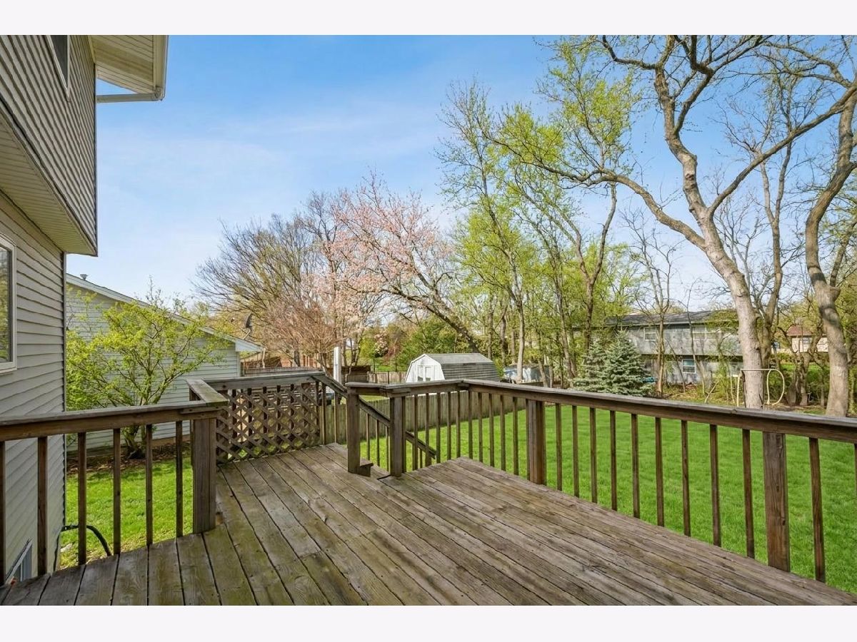 Well-maintained, one-owner 4-bedroom, 2.1-bath two-story home offering comfort, space, and tasteful updates. Freshly painted interiors and newer wood laminate flooring create a bright, move-in-ready feel. The spacious living room is enhanced by a gas fireplace, adding warmth and elegance. A separate dining room with a graceful arched window provides an inviting setting for entertaining and special occasions. The main level features convenient first-floor laundry and an eat-in kitchen with oak cabinetry and sliding glass doors that open to the deck, creating effortless indoor-outdoor living. Outdoors, enjoy a professionally landscaped, tree-lined backyard offering privacy and a serene setting for relaxation or gatherings. Upstairs, the expansive primary suite offers a private retreat with a walk-in closet and a spa-like bath featuring a soaker tub. The full basement includes rough-in plumbing for an additional bathroom, presenting excellent potential for future finished living space. Additional highlights include an attached two-car garage and pride of ownership throughout this well-cared-for home.