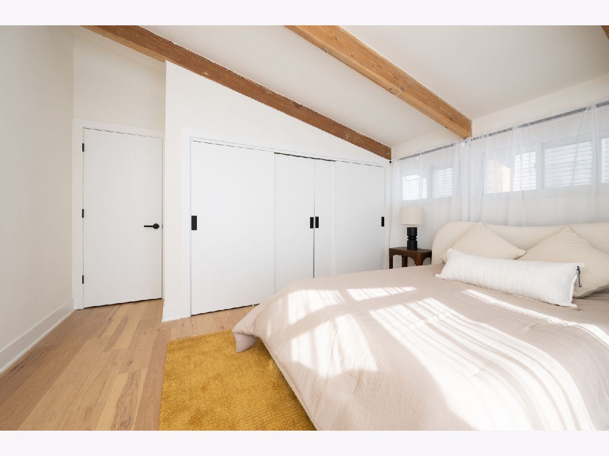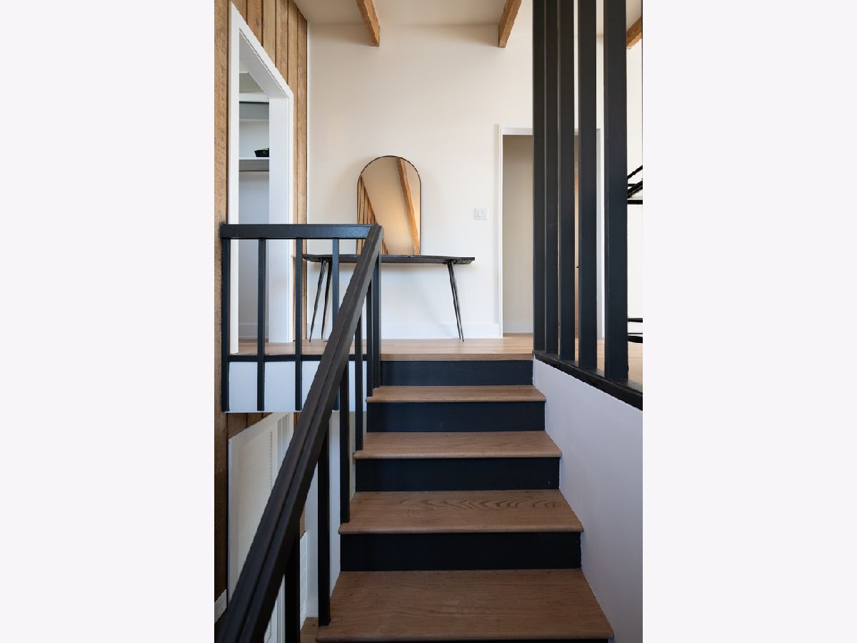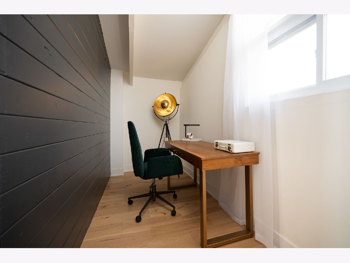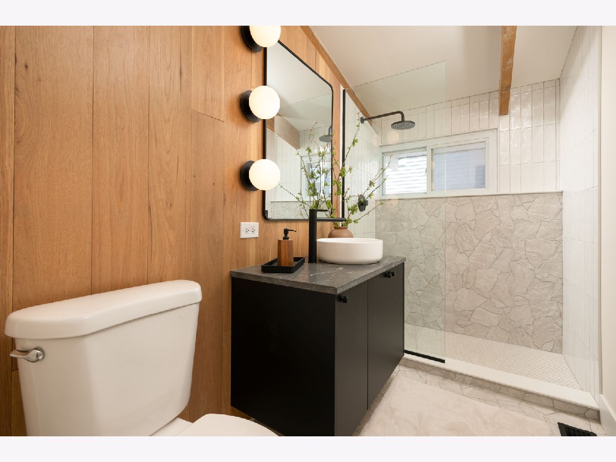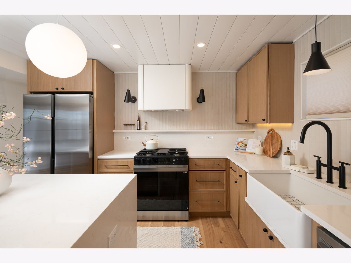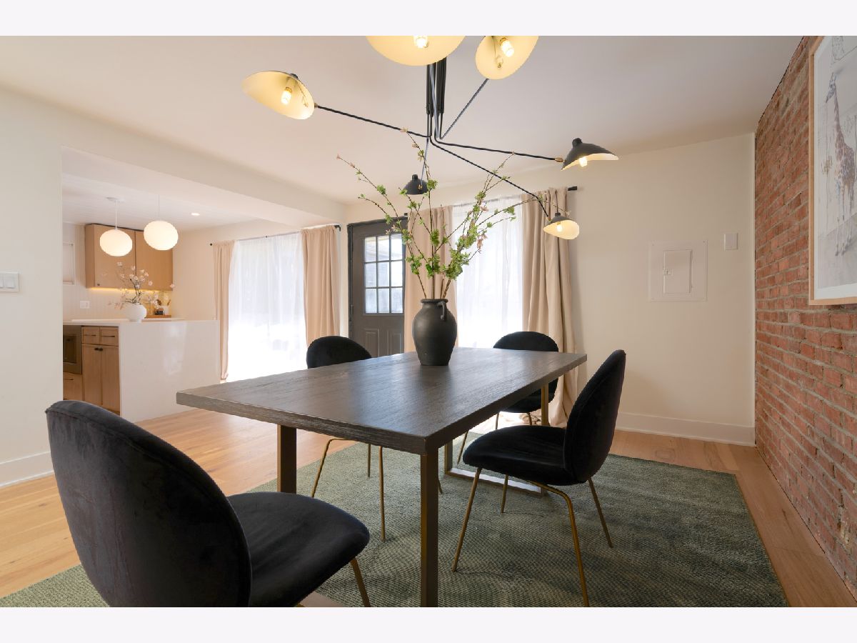 Mid-Century modern reimagined four-bedroom, two-bath raised ranch over 1,800 square feet of thoughtfully designed living space, blending iconic architectural character with contemporary finishes. The main level welcomes you into a dramatic living room highlighted with original wood ceiling beams and expansive floor-to-ceiling windows that flood the space with natural light and open to a private balcony. White oak engineered hardwood flooring runs throughout, complemented by timeless light fixtures and tile selections that honor the home's mid-century aesthetic. The primary bedroom echoes vaulted ceilings and designer lighting, while the upper-level bath showcases a natural and harmonious blend of wood and stone. An additional bedroom and a dedicated office complete the upper level. A statement mid-century-inspired staircase leads to the lower level, where style and functionality continue. The modern kitchen features white oak cabinetry, white quartz countertops, an apron-front sink, center island, shiplap ceiling, custom hood, and designer backsplash. Distinctive lighting adds personality and flows seamlessly into the formal dining area, where a full wall of windows creates a bright indoor-outdoor ambiance. The lower level also includes two additional bedrooms, a spacious laundry room, and a light and airy full bath with contemporary tilework, a vessel vanity sink, and shiplap accent detailing. Set on an oversized lot, the expansive yard offers ample space to create additional outdoor features to suit your vision.