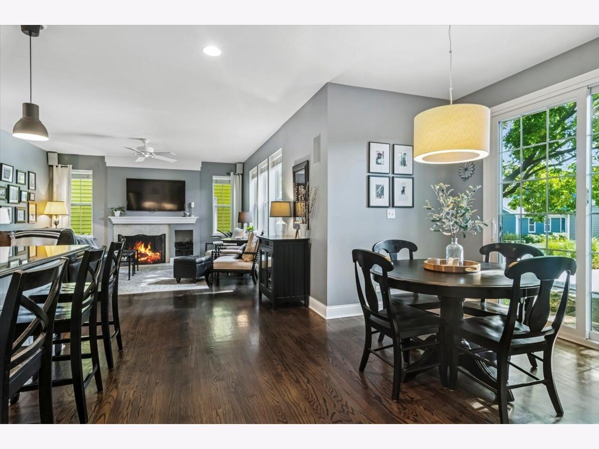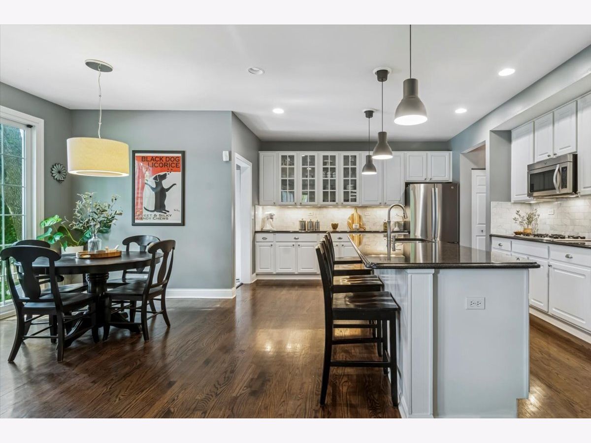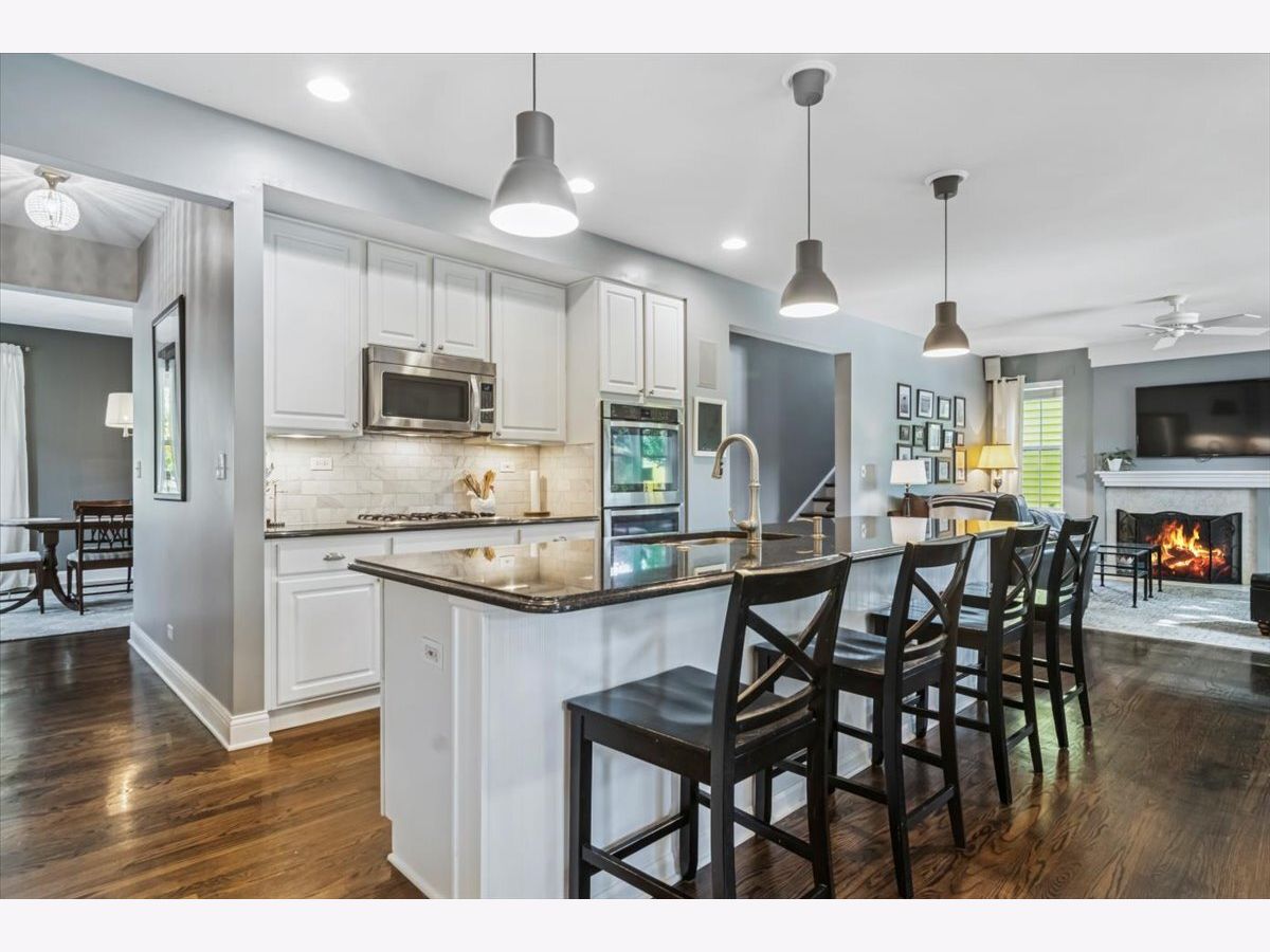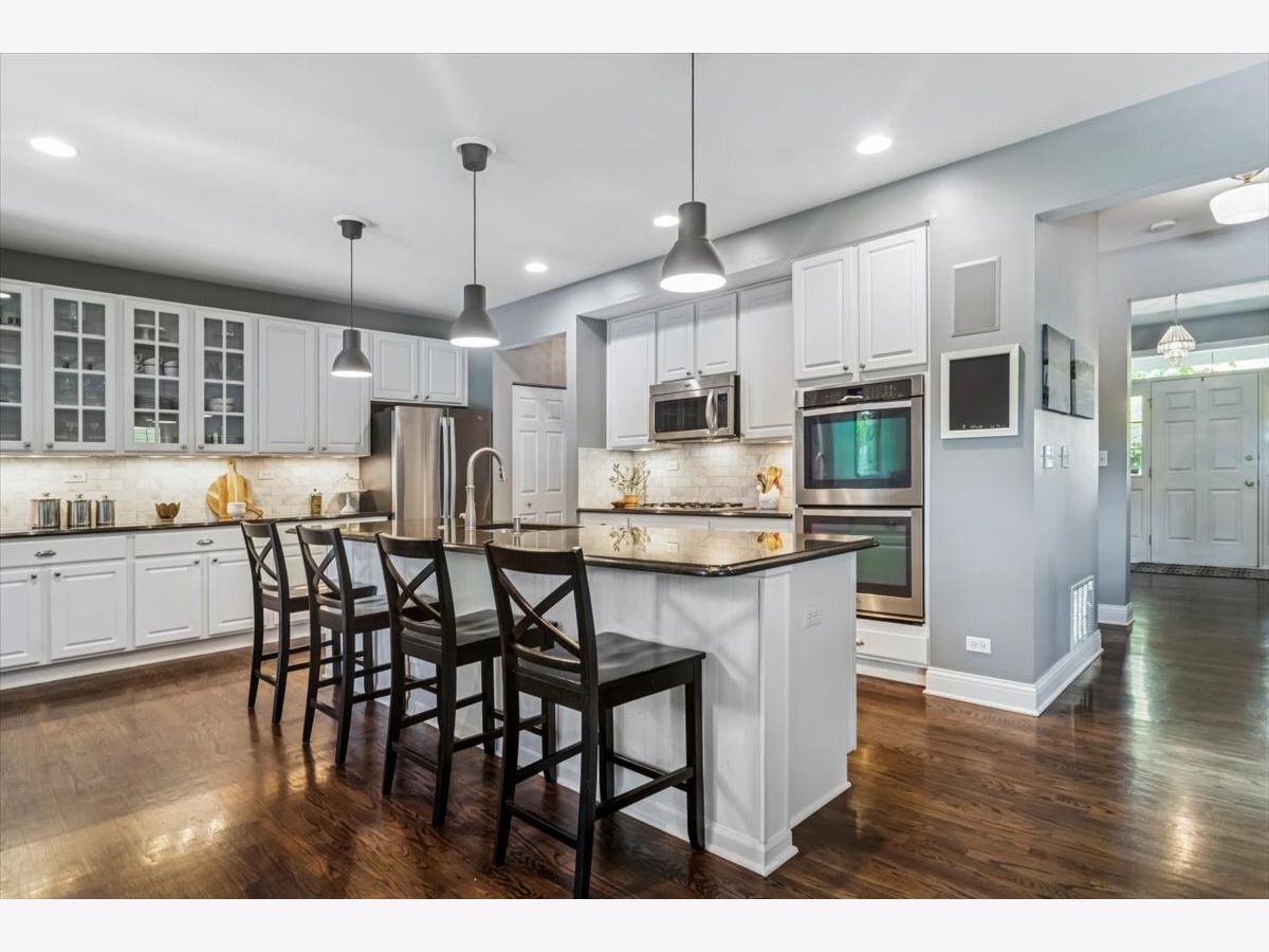 Located in highly desirable Centennial Crossing with award-winning Vernon Hills High School, this home offers curb appeal on a quiet, tree-lined street. Enjoy a spacious front porch, landscaped yard with mature trees, garden beds, and a 3-car garage with epoxy floor, storage, and upgraded lighting. Inside, you'll find hardwood floors throughout the first and second levels, a bright office with French doors, a large dining room with butler's pantry, and a stunning kitchen featuring granite counters, marble backsplash, stainless steel appliances, double oven, Bosch dishwasher, and a 10.5' island. The open-concept family room includes a marble-surround fireplace and surround sound. The finished basement boasts a 5th bedroom, full bath, full wet bar with microwave and dishwasher, custom cabinetry, media area, cedar-lined closet, and ample storage. Upstairs, the primary suite includes a walk-in closet with built-ins and a spa-like bath with soaking tub, shower, and dual sinks. Additional bedrooms are spacious, with excellent closet space. Updates include: newer windows, 2017 HVAC with 3-zone system, 2016 roof/gutters, 2024 sump pump, and fresh paint. Conveniently located near parks, Vernon Hills Sports Complex, Metra station, shopping, dining, Melody Farms, Hawthorn Mall, and I-94. Sellers prefer a December closing while their new home is being completed. However, they are open to a rent-back arrangement if buyers would like to close earlier.