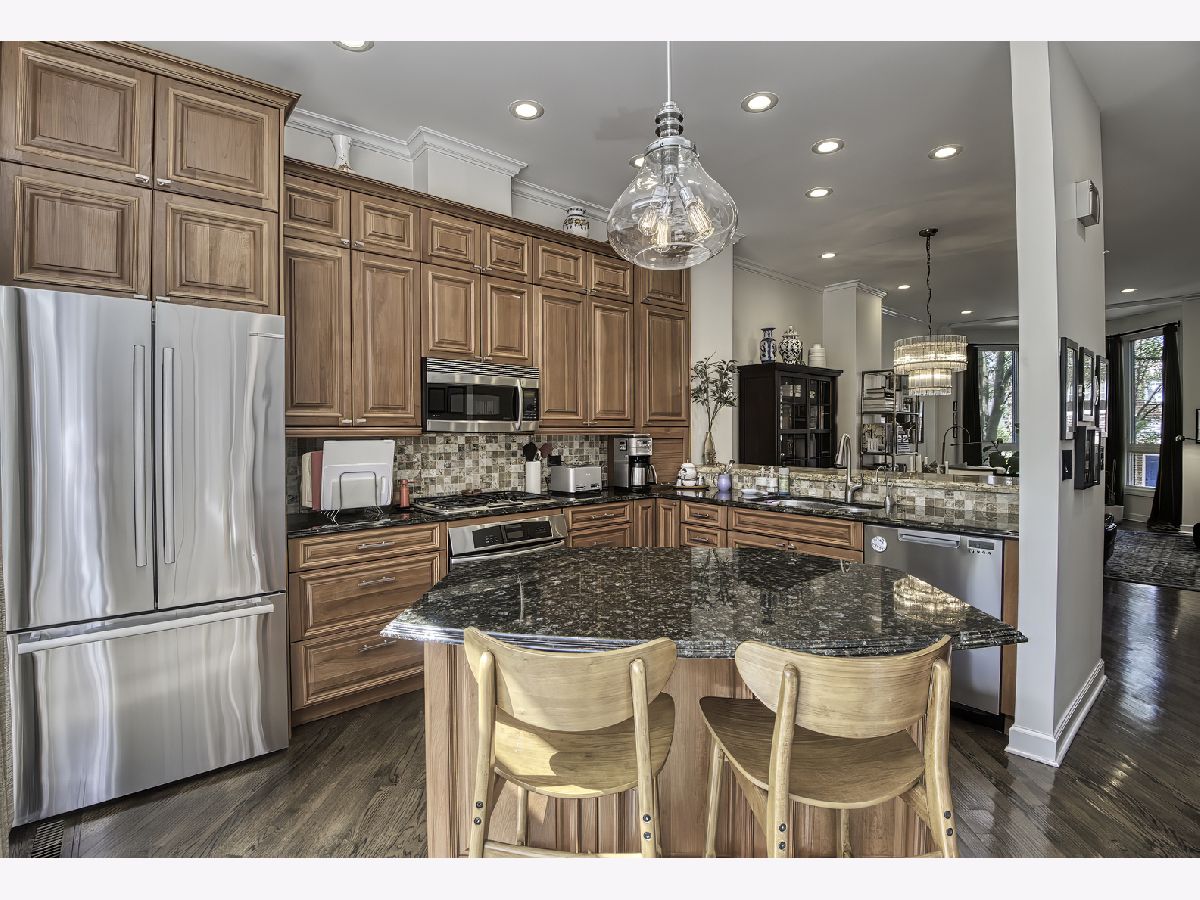 In a quiet, tucked-away pocket of Old Town, this sunlit townhome combines a neighborhood feel with the convenience of city living. This home offers 3 bedrooms, 3.5 baths, and an attached two-car garage with epoxy floor, along with a flexible layout designed to fit your needs. The main level features a homey and inviting living and dining area with high ceilings, a fireplace and a beautifully updated kitchen with cherry cabinetry, granite countertops, stainless steel appliances (including a brand new Thermador oven!) and a balcony for grilling or morning coffee. Upstairs, the primary suite includes a walk-in closet and recently renovated bath with heated floors and a luxury double shower. The sunny second bedroom also has an en suite bathroom. The top level is an entertainer's dream with a wet bar, doors to a rooftop deck with skyline views, and space that can serve as a family room, office, or even a fourth bedroom. Four outdoor spaces-rooftop deck, kitchen balcony, front patio, and courtyard-provide room to enjoy the outdoors in every season. With custom closet organizers, generous storage, guest parking, and a location steps from Wells Street dining, shopping, and everyday conveniences, this home has so much to offer! NEWER FURNACE, AC AND WATER HEATER!