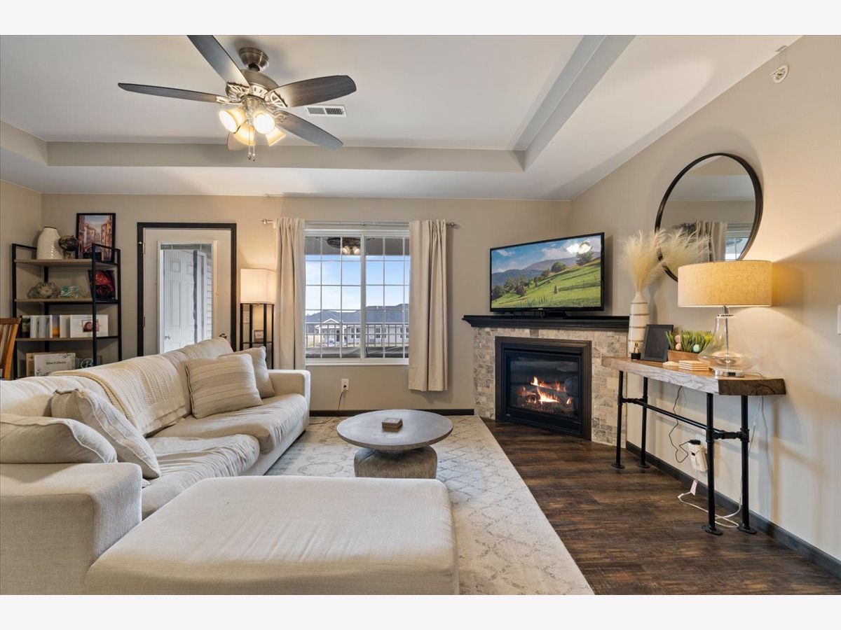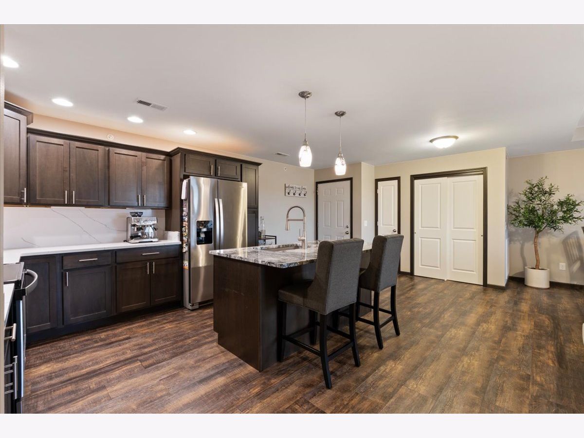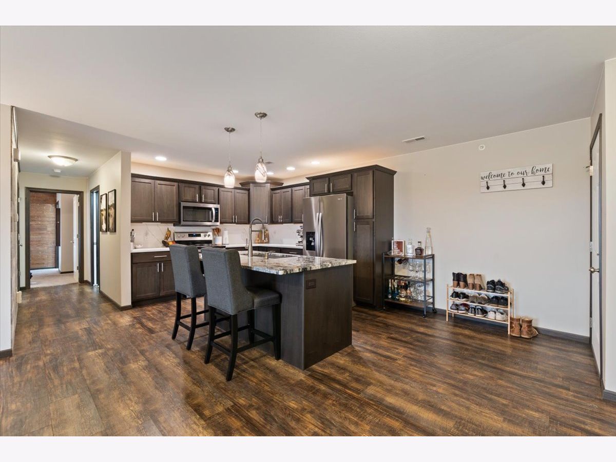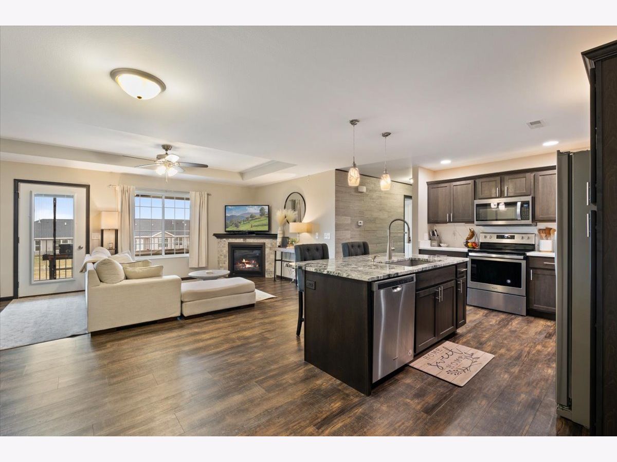 Welcome home to this beautifully maintained 2-bedroom, 2-bathroom second-floor condo in the desirable Eldridge community! Built in 2016, this newer construction offers modern finishes, stylish touches, and comfortable, low-maintenance living. Step inside to find a bright and inviting living space filled with natural light and enhanced by tasteful, well-chosen decor that adds a warm and sophisticated feel throughout. The open-concept layout flows seamlessly into the kitchen, where you'll love the stainless-steel appliances, a spacious kitchen island with a built-in sink on a granite countertop along with quartz on the other countertops. And ample cabinetry-perfect for both everyday living and entertaining. 2025 water filtration system for clean water! The primary suite offers a private full bathroom and generous closet space, creating a relaxing retreat. A second bedroom and full bath provide flexibility for guests, a home office, or additional living space. Enjoy the convenience of a 1-stall garage and a large private deck with two storage closets. All within close proximity to parks, shopping, and dining. Located in the highly sought-after North Scott School District, this condo truly checks all the boxes. Don't miss your chance to own this move-in ready home with style and comfort-schedule you're showing today! Seller reserves - storage shelfs in garage, portable fan in garage, deep freezer in garage, mirror in primary bedroom on wall, and all curtains) Seller will leave - Curtain rods, table in garage, water filtration system, both bedroom TVs and mounts.