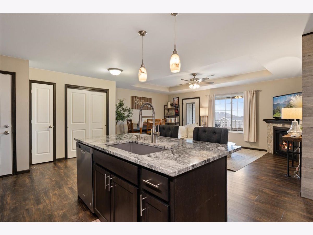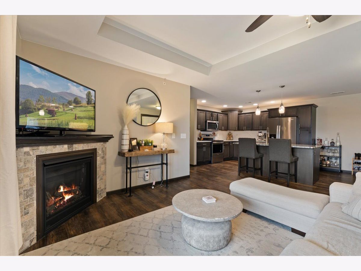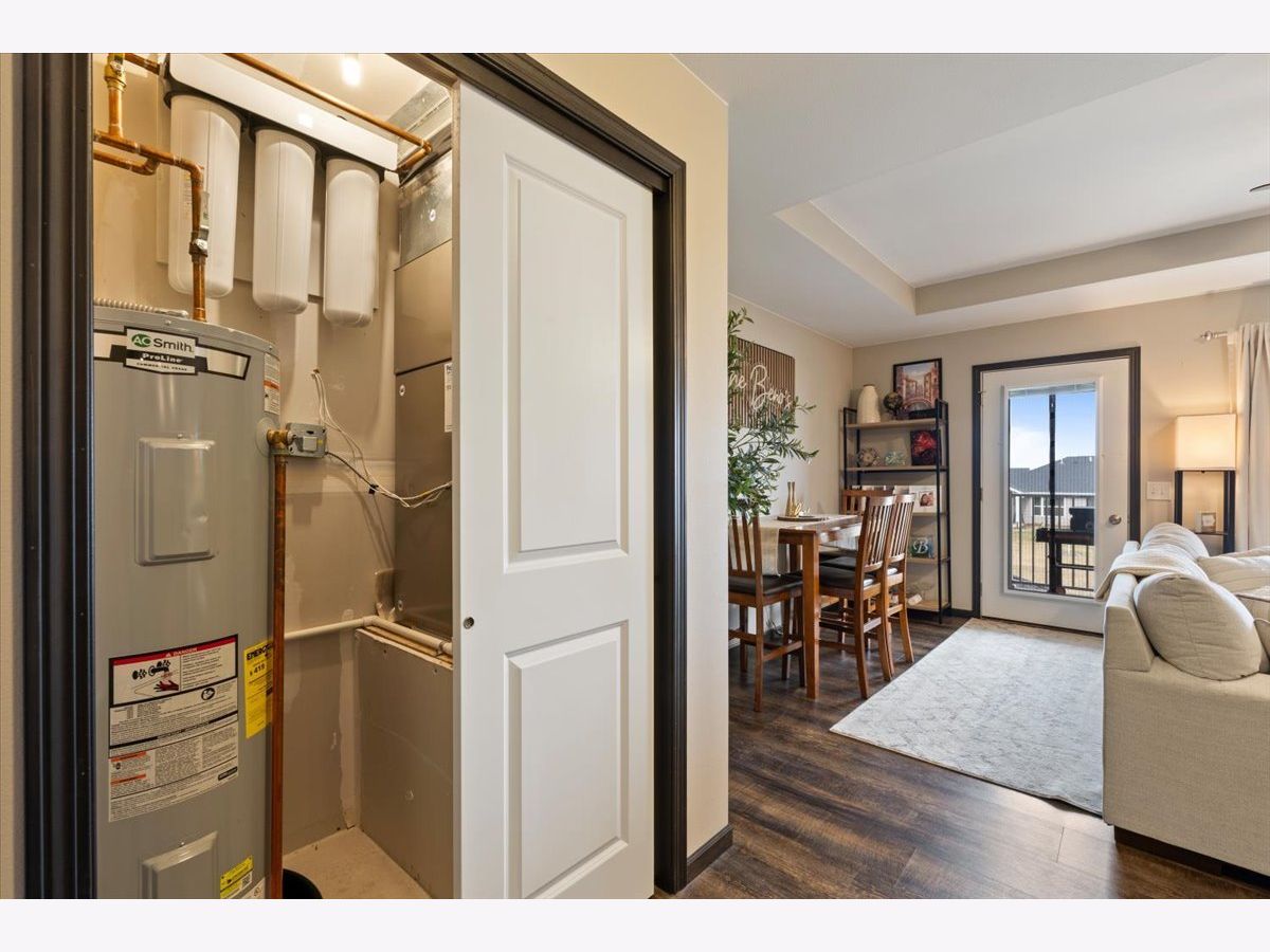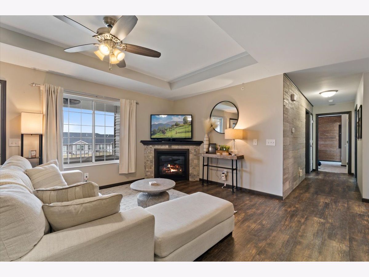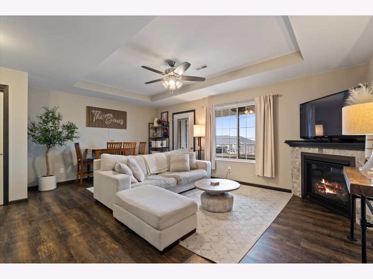 Welcome home to this beautifully maintained 2-bedroom, 2-bathroom second-floor condo in the desirable Eldridge community! Built in 2016, this newer construction offers modern finishes, stylish touches, and comfortable, low-maintenance living. Step inside to find a bright and inviting living space filled with natural light and enhanced by tasteful, well-chosen decor that adds a warm and sophisticated feel throughout. The open-concept layout flows seamlessly into the kitchen, where you'll love the stainless-steel appliances, a spacious kitchen island with a built-in sink on a granite countertop along with quartz on the other countertops. And ample cabinetry-perfect for both everyday living and entertaining. 2025 water filtration system for clean water! The primary suite offers a private full bathroom and generous closet space, creating a relaxing retreat. A second bedroom and full bath provide flexibility for guests, a home office, or additional living space. Enjoy the convenience of a 1-stall garage and a large private deck with two storage closets. All within close proximity to parks, shopping, and dining. Located in the highly sought-after North Scott School District, this condo truly checks all the boxes. Don't miss your chance to own this move-in ready home with style and comfort-schedule you're showing today! Seller reserves - storage shelfs in garage, portable fan in garage, deep freezer in garage, mirror in primary bedroom on wall, and all curtains) Seller will leave - Curtain rods, table in garage, water filtration system, both bedroom TVs and mounts.