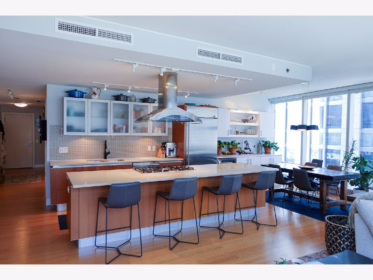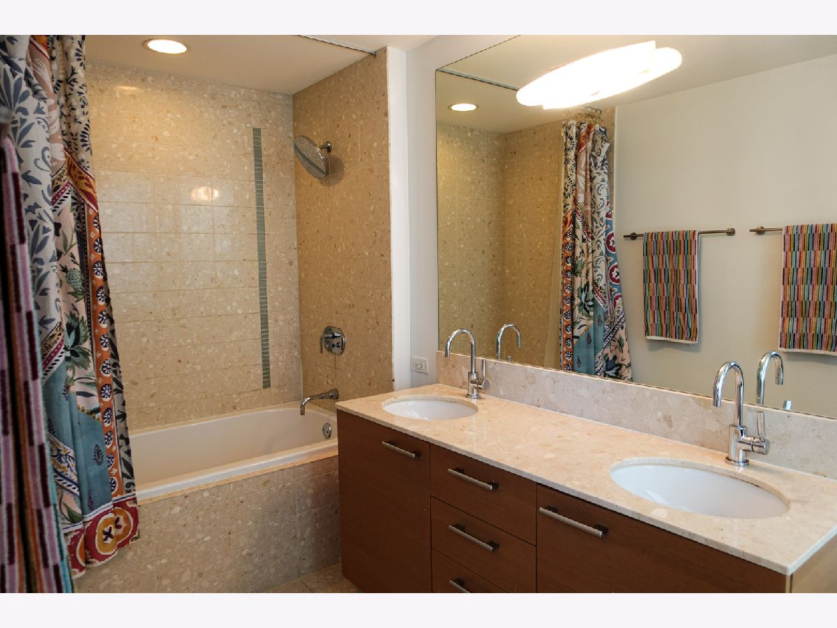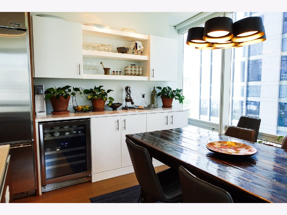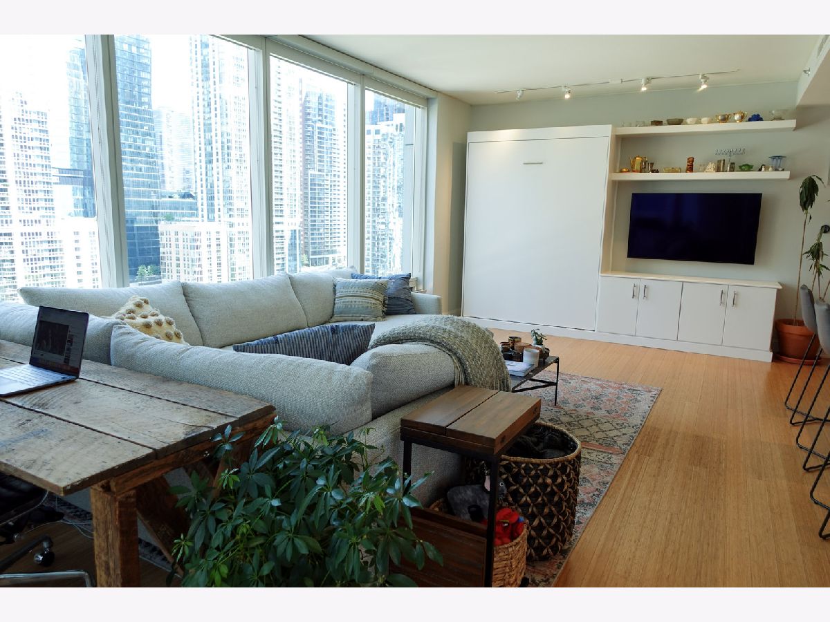 Now offered at an improved price, this sophisticated 1-bedroom, 1.5-bath home at 340 on the Park delivers luxury, flexibility, and exceptional custom storage in the heart of Lakeshore East. The residence features floor-to-ceiling windows, bamboo flooring, and an open layout with beautiful city views. Designed for both comfort and function, the kitchen is outfitted with GE Monogram appliances, Snaidero cabinetry, quartz countertops, and a dry bar with wine fridge. A standout custom built-in entertainment center includes a queen Murphy bed plus 10 extra cabinets, creating rare versatility for guests, storage, or work-from-home living. The generous floor plan offers room for living, dining, and office space. The primary suite includes a custom walk-in closet, in-unit laundry, and a spacious bath with dual vanity and soaking tub. A separate half bath adds everyday convenience. Residents enjoy premier amenities including 24-hour door staff, a fitness center, locker rooms, sauna, steam room, lap pool, jacuzzi, Wintergarden, sundeck with grills, private dining room, caterer's kitchen, pet relief area, and on-site dry cleaning. Heated garage parking and storage included. Special assessment paid. Broker owned.
