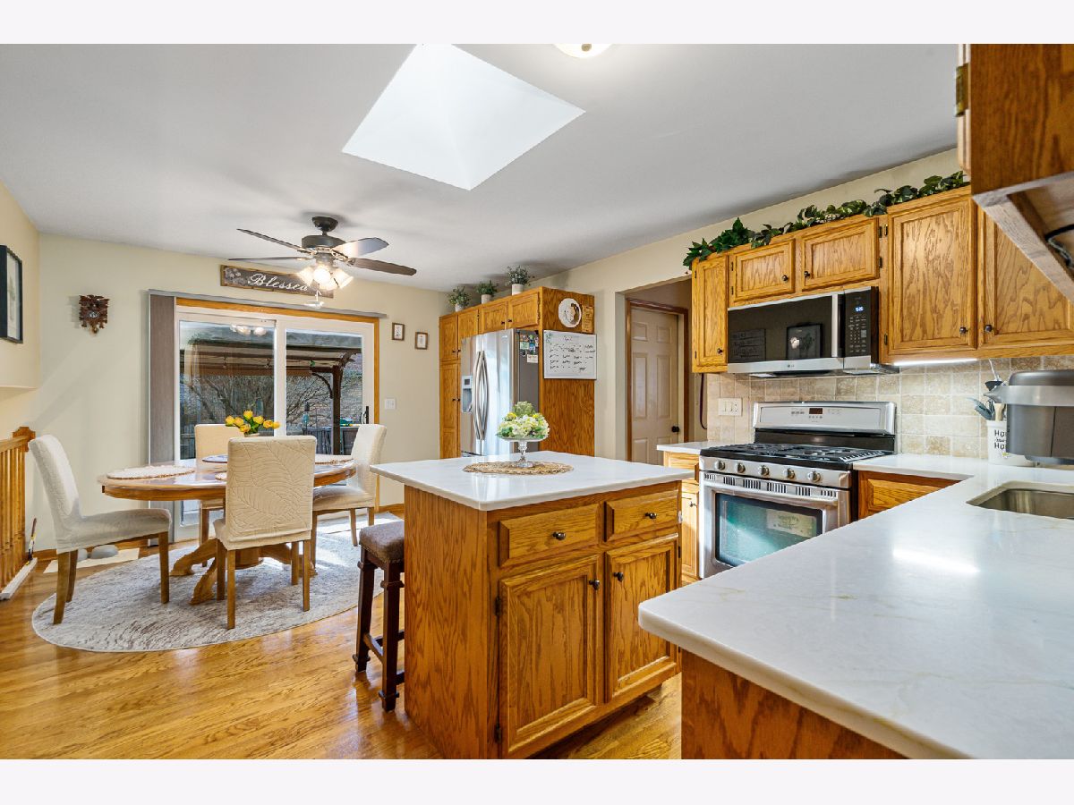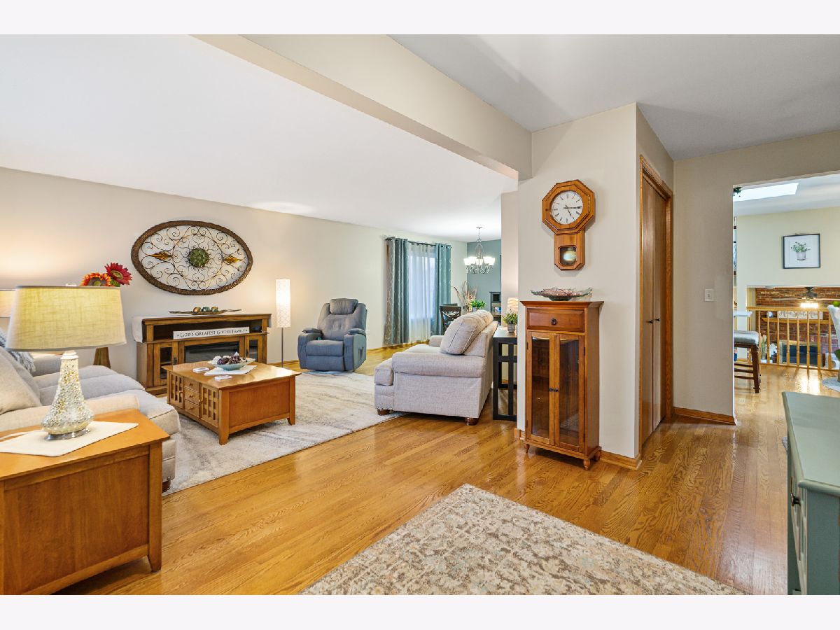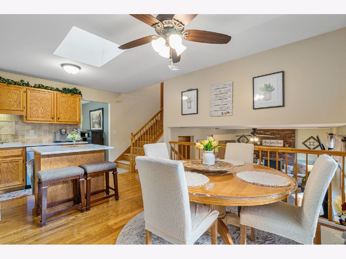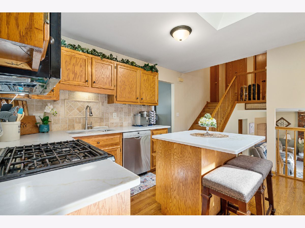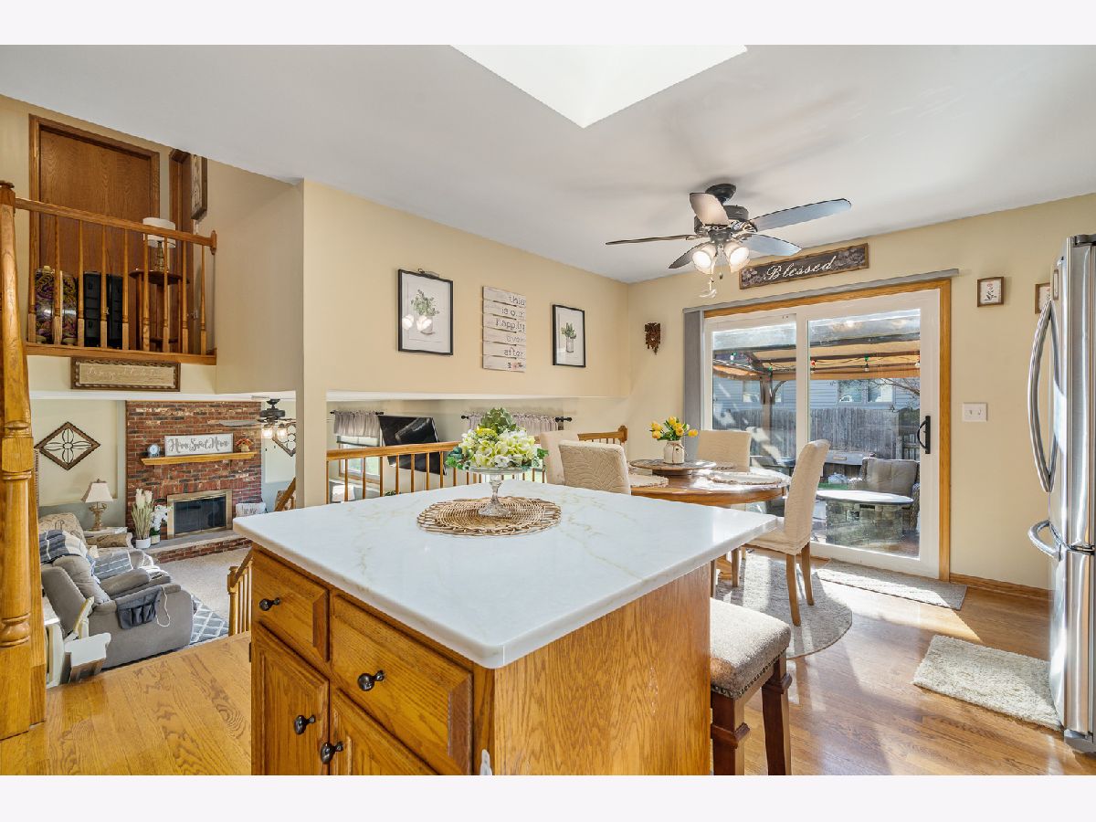 MULTIPLE OFFERS RECEIVED. HIGHEST & BEST REQUESTED BY 10AM MONDAY MARCH 30. Introducing an absolutely stunning and impeccably maintained quad-level residence that blends timeless elegance with modern updates in a highly sought-after location! From the moment you step inside, you are welcomed by a sun-drenched living room and formal dining room showcasing gleaming hardwood floors installed in 2021, creating a warm and sophisticated ambiance perfect for entertaining. The beautifully appointed kitchen is a true showpiece, featuring luxurious quartz countertops, stainless steel appliances, tumbled stone backsplash, rich oak cabinetry, a spacious island with breakfast bar seating, and a pantry closet for effortless organization. The adjoining breakfast area opens to a concrete patio adorned with a covered pergola, overlooking a large fenced yard with extensive professional landscaping and a storage shed - a private outdoor retreat ideal for gatherings or peaceful evenings at home. The lower-level family room offers a cozy fireplace and flexible living space, perfect for relaxing or hosting guests, while the thoughtfully designed layout provides potential for related living with space for a fourth bedroom featuring double closets and a beautifully updated full bath complete with granite vanity and subway-tiled tub surround. Upstairs, the spacious master bedroom shares an updated bath boasting a double granite vanity and a sleek walk-in shower, along with the convenience of a second-floor laundry room. The finished sub-basement expands your living space even further with a generous recreation room, abundant storage, and an additional washer and dryer hookup. Major updates include new windows (2021), air conditioning (2019), roof (2023), and hot water heater (2021). Acorn Stairlift can stay with the home or be removed prior to closing. Completing this exceptional home is an extra-deep two-car attached garage with pull-down attic access. Ideally located with easy access to I-355 and I-80, as well as nearby train stations, shopping, and dining, this extraordinary home truly offers luxury, comfort, and convenience in one remarkable package.