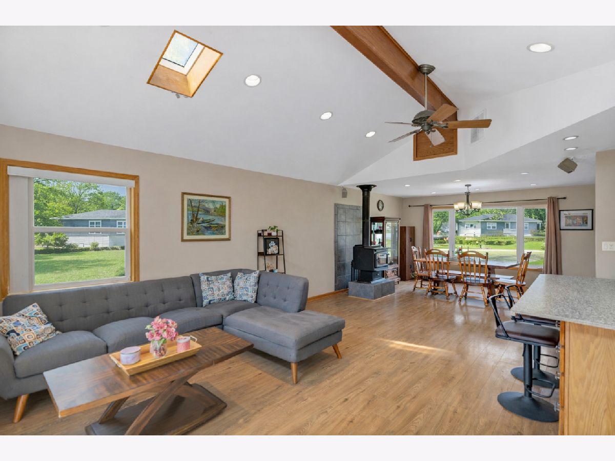 ***MULTIPLE OFFERS RECEVIED- Highest and Best Due by 4PM SUN 3/29*** Don't miss this ranch home set on over a half-acre lot on a quiet cul-de-sac in desirable Island Lake Highlands. This open-concept floor plan features a great room with vaulted ceilings, wood beam accents, a skylight, and sliding glass doors to the outdoor space, flowing seamlessly into the dining area highlighted by a cozy wood stove. The updated kitchen includes stainless steel appliances, a tile backsplash, and a large peninsula with breakfast bar seating, ideal for everyday living and entertaining. The generously sized primary bedroom offers direct access to the full bath, while the second bedroom provides flexibility for a home office or guest space. A convenient main-level laundry room adds to the functionality of the home. Outside, the picturesque setting is designed for entertaining with a large deck, pool, and fenced yard, all surrounded by mature landscape and open space. New: roof in 2021 and appliances and water heater within the last 5 years. Ideally located just steps from Island Lake, Forest Park, and Brier and South Shore beaches, this home offers space, setting, and location in one complete package.