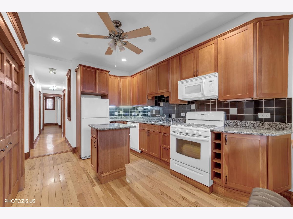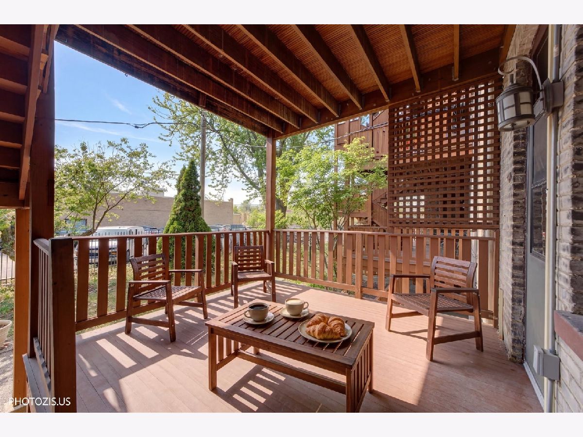 Classic first-floor vintage Oak Park condo - an exceptional two-bedroom unit blending original detail with tasteful updates. Gorgeous original moldings, high coved ceilings, hardwood floors, Gallery Hallway, and a wood-burning fireplace create timeless character. Updated kitchen features an island, pantry wall, new refrigerator, granite countertops, and raised-base cabinetry. Remodeled tile bath with walk-in shower. Relax on the extra-large deck overlooking a professionally landscaped backyard. This unit comes with a Craft/Storage room in the basement. Assessments include free laundry and parking (directly out the back). Close to the train, grocery store, and restaurants. Strong, well-managed association. Great unit - easy to show!